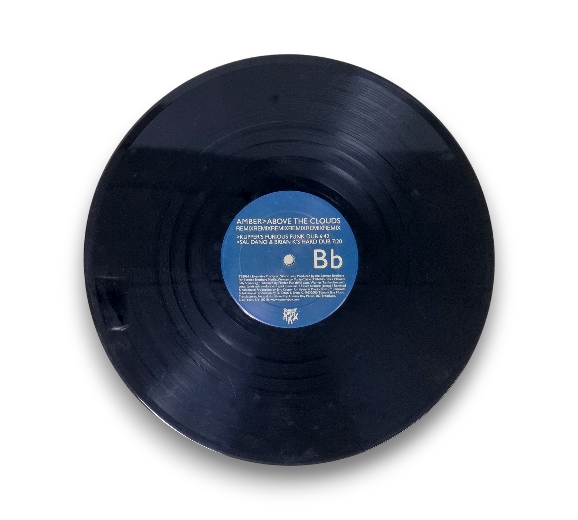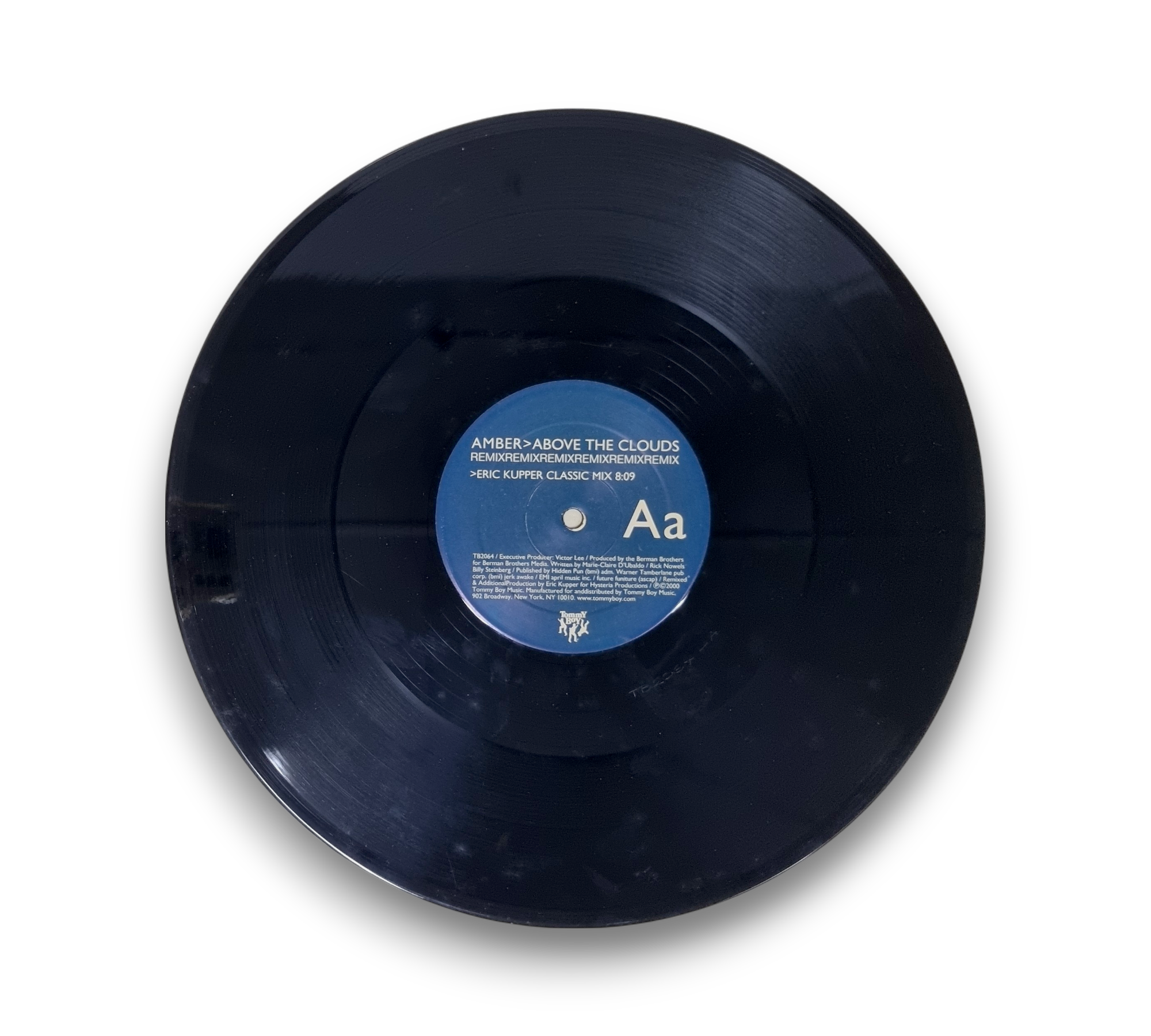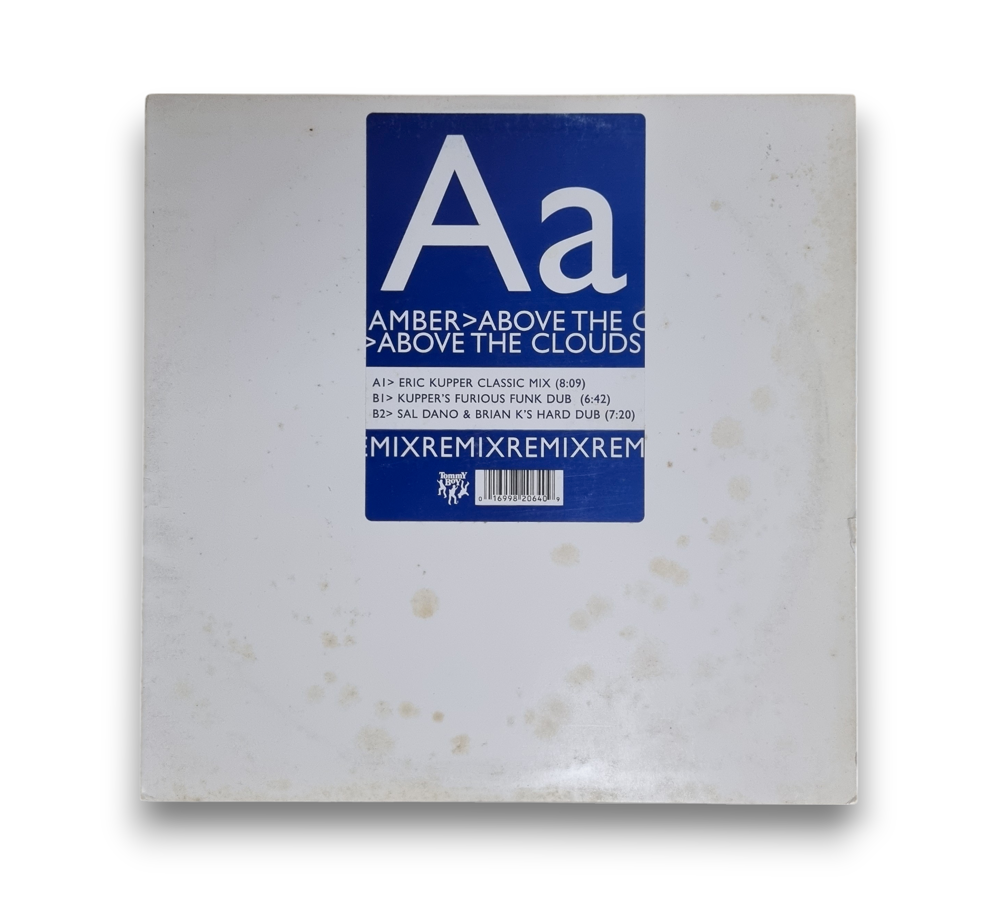 Issued in a generic white sleeve, this record features the track "Above the Clouds" by Amber. The A-side includes the "Eric Kupper Classic Mix" and the B-side features "Kupper's Furious Funk Dub" and "Sal Dano & Brian K's Hard Dub." Please refer to the accompanying photos for a closer look at the condition and details of the packaging.
