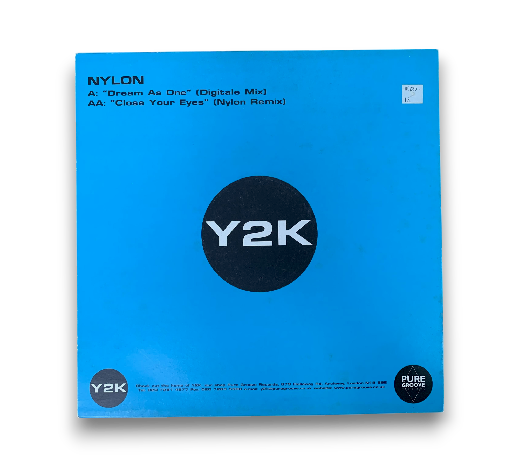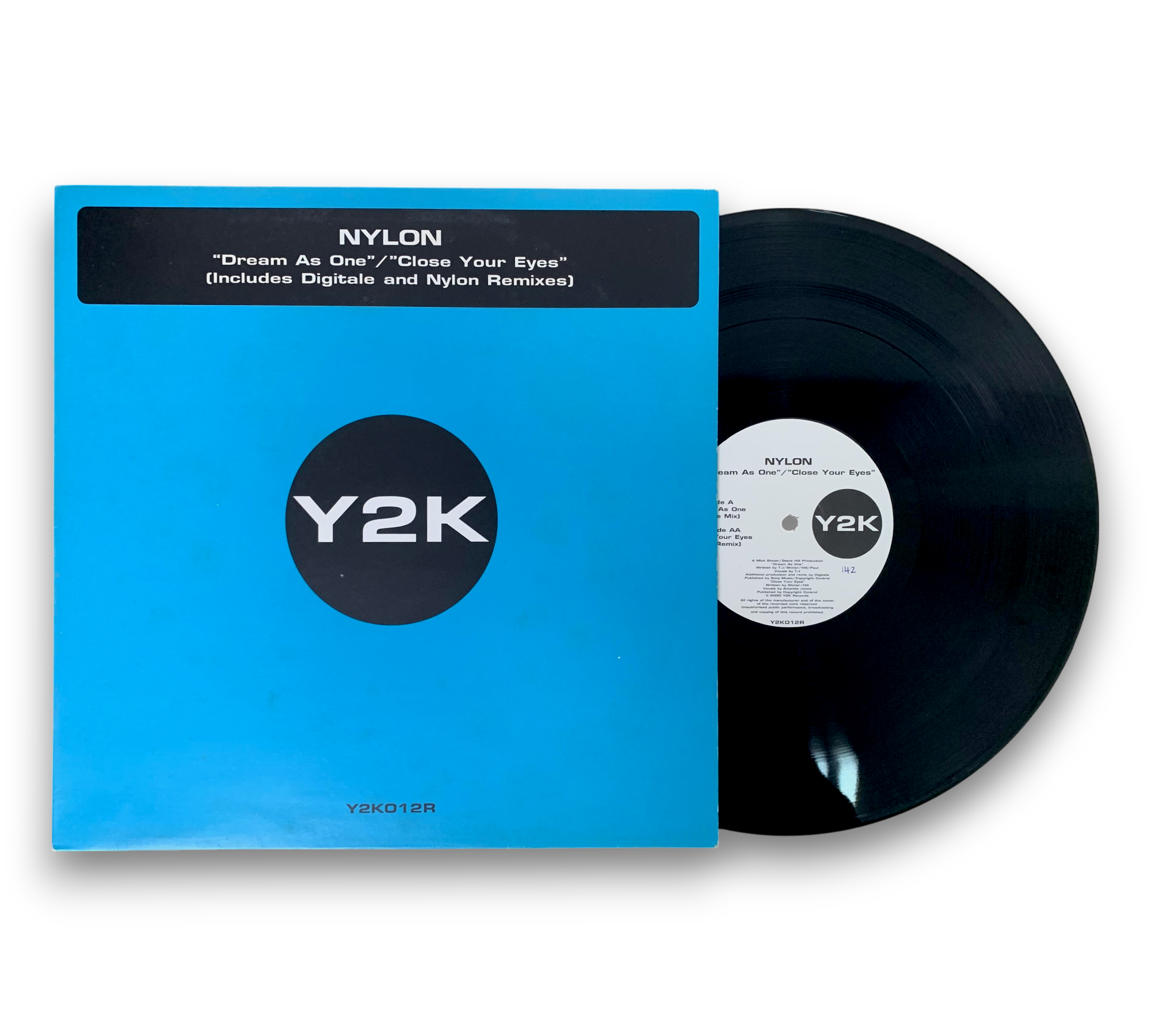 Nylon's single features the tracks "Dream As One" (Digitale Mix) and "Close Your Eyes" (Nylon Remix), showcasing a blend of electronic sounds. Released in 2000 under Y2K Records, this record is a notable addition to any collection. The packaging is visually striking with a vibrant blue cover, and the vinyl itself is in good condition. For further details regarding the condition and any included inserts, please refer to the accompanying photos.