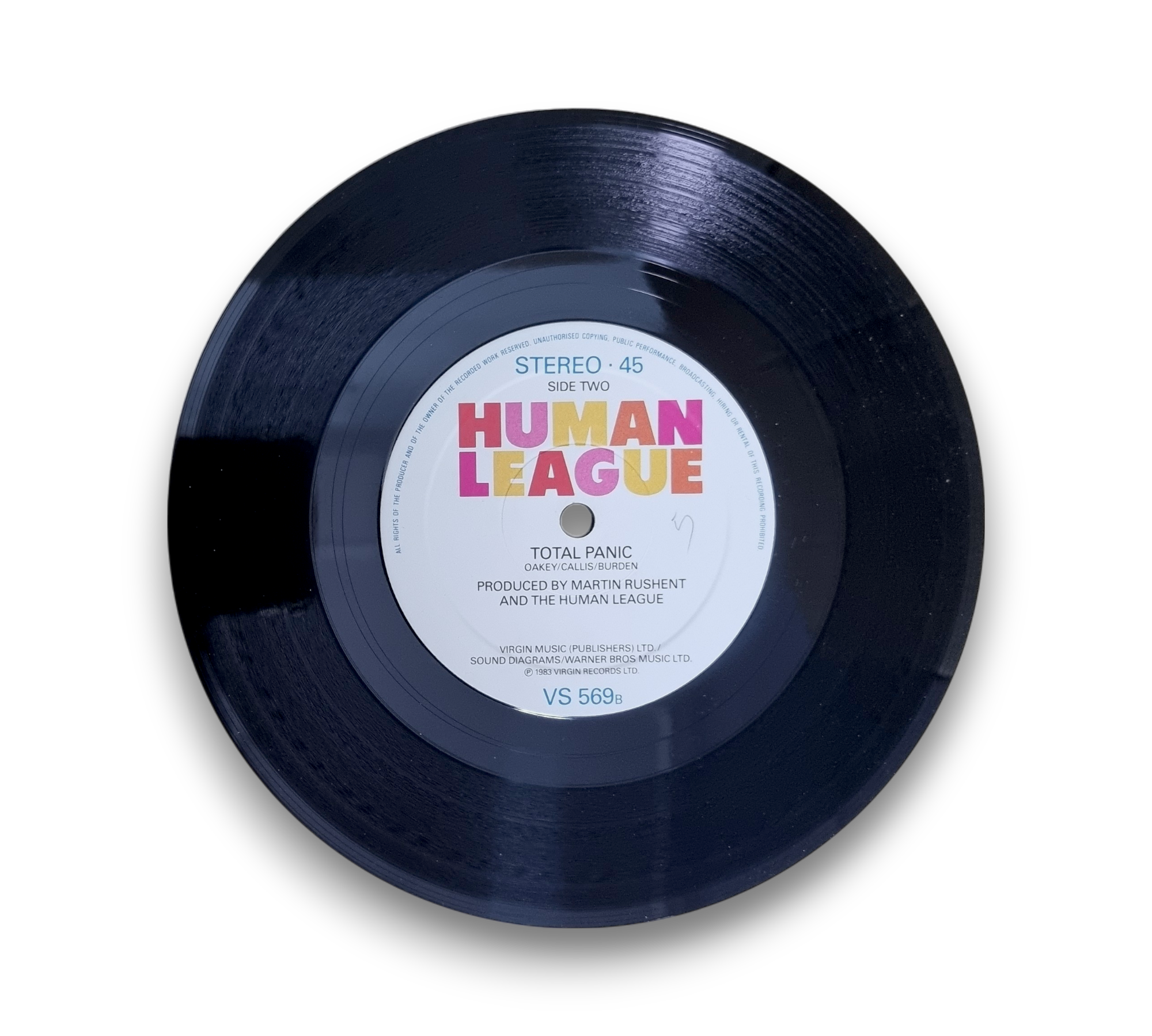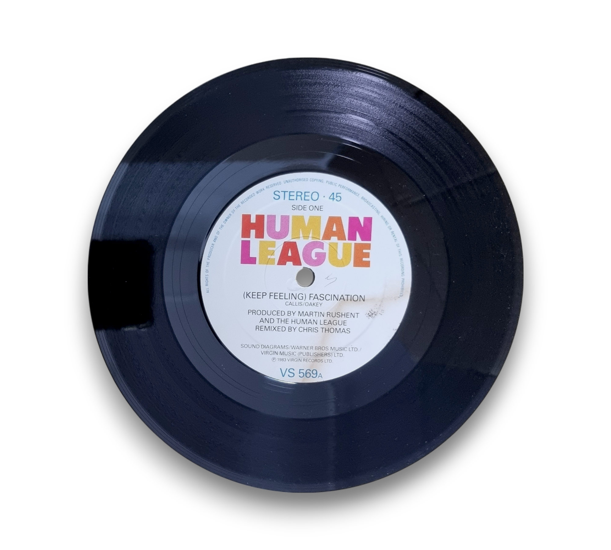 ℗ 1983 Virgin Records Ltd. © 1983 Virgin Records Ltd. This record features the catalog number VS569 on the back of the picture sleeve. The A-side includes the track "(Keep Feeling) Fascination," while the B-side features "Total Panic." Please refer to the accompanying photos for further details regarding the condition and packaging of this listing.