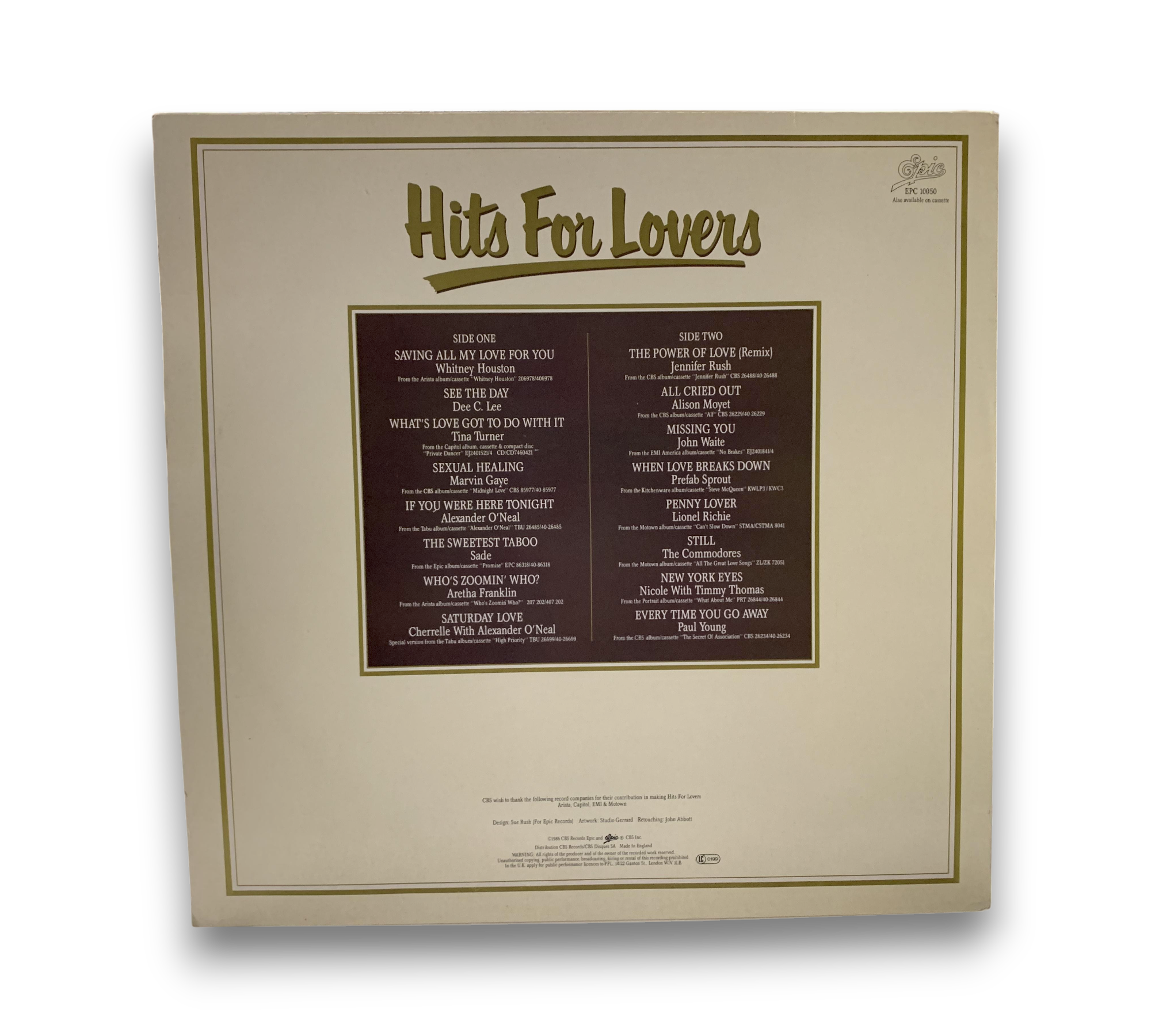 Made in England, this release features a collection of 16 of today's great love songs, including hits like "Saving All My Love for You" by Whitney Houston and "Sexual Healing" by Marvin Gaye. The durations of the tracks are not listed on this release, but timings can be obtained via stopwatch. This version is pressed by [l553982]. For further details regarding the packaging and inserts, please refer to the accompanying photos.