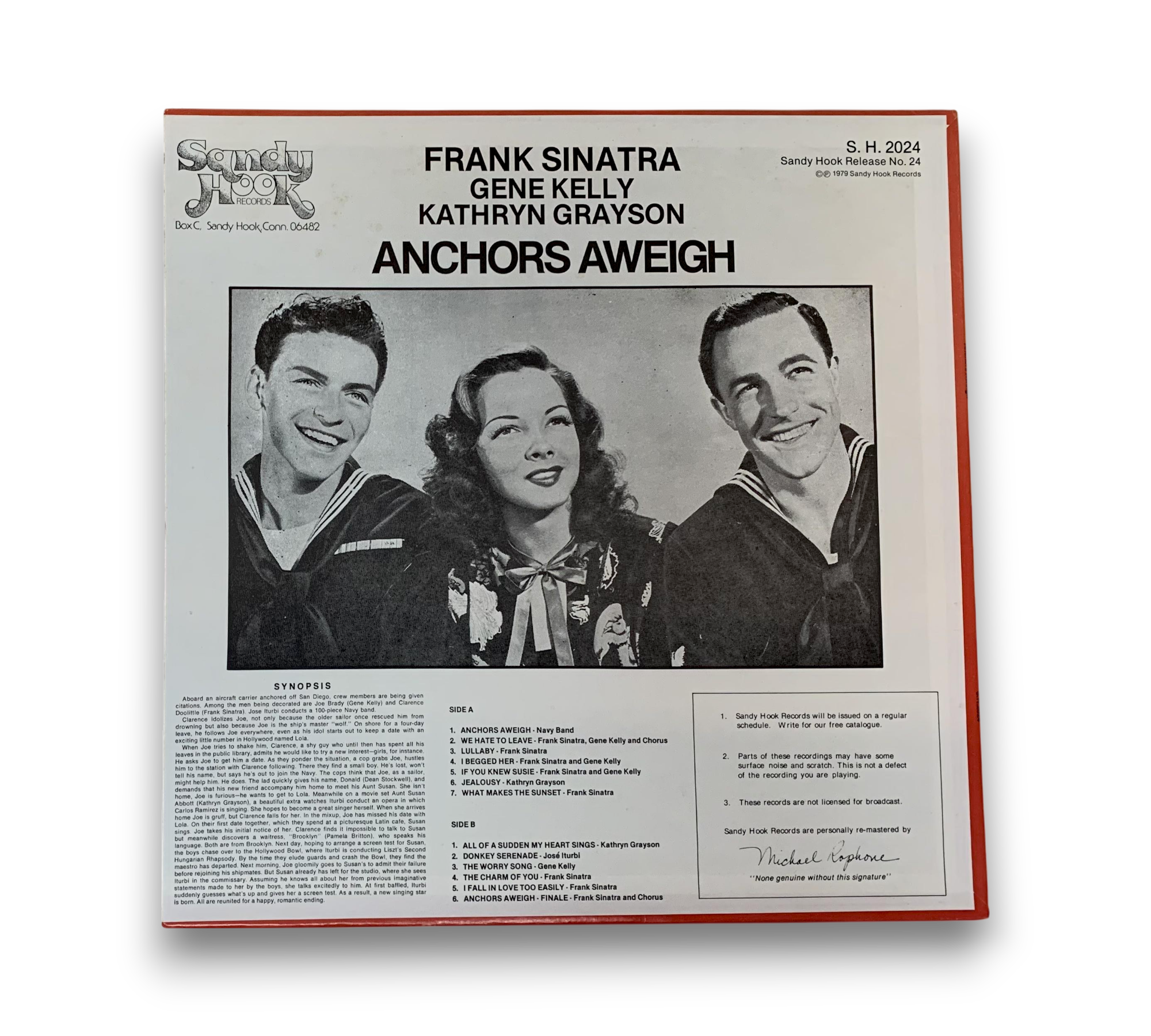 Experience the timeless charm of "Anchors Aweigh," featuring the legendary talents of Frank Sinatra, Gene Kelly, and Kathryn Grayson. Released in 1979, this vinyl record captures the essence of jazz and classical music with memorable tracks like "Lullaby," "What Makes The Sunset," and the enchanting "I Fall In Love Too Easily." A must-have for fans of classic cinema and music, this album is a delightful addition to any collection.