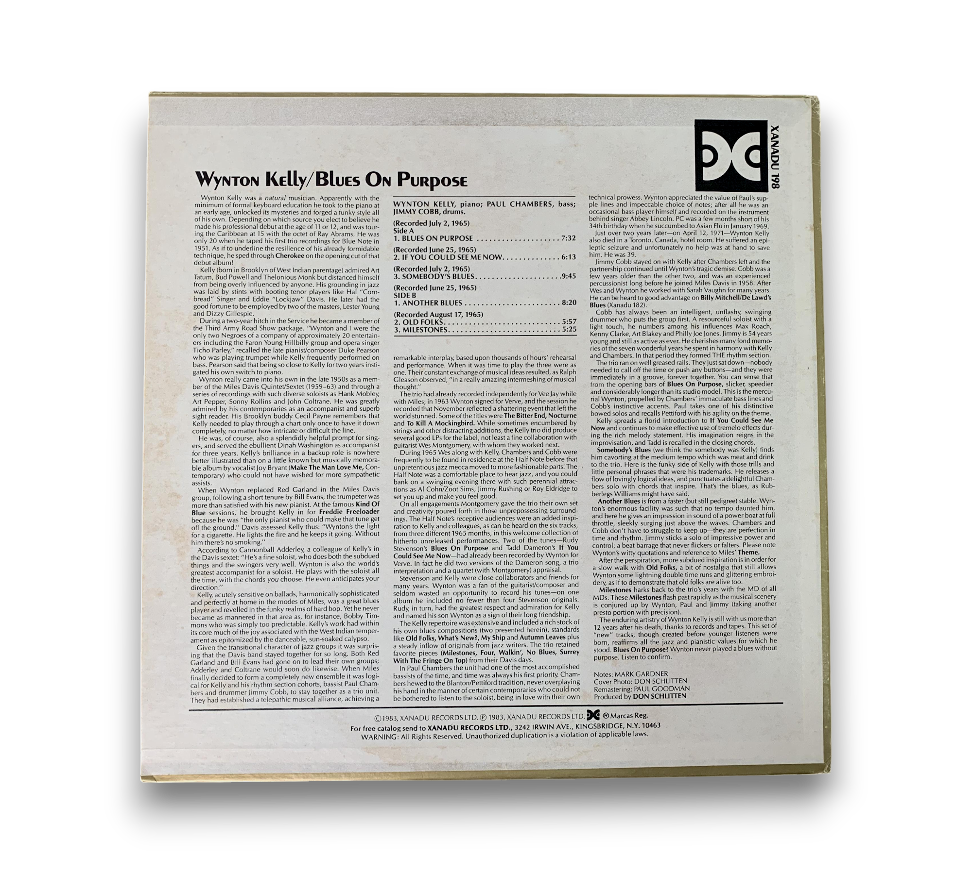 Recorded at the Half Note in New York City on June 2, July 25, and August 17, 1965, "Blues On Purpose" features the talents of Wynton Kelly, Paul Chambers, and Jimmy Cobb. This album showcases a collection of tracks that highlight the exceptional musicianship of the artists involved. Please refer to the accompanying photos for details regarding the condition and any included items, as no additional items are confirmed with this listing.