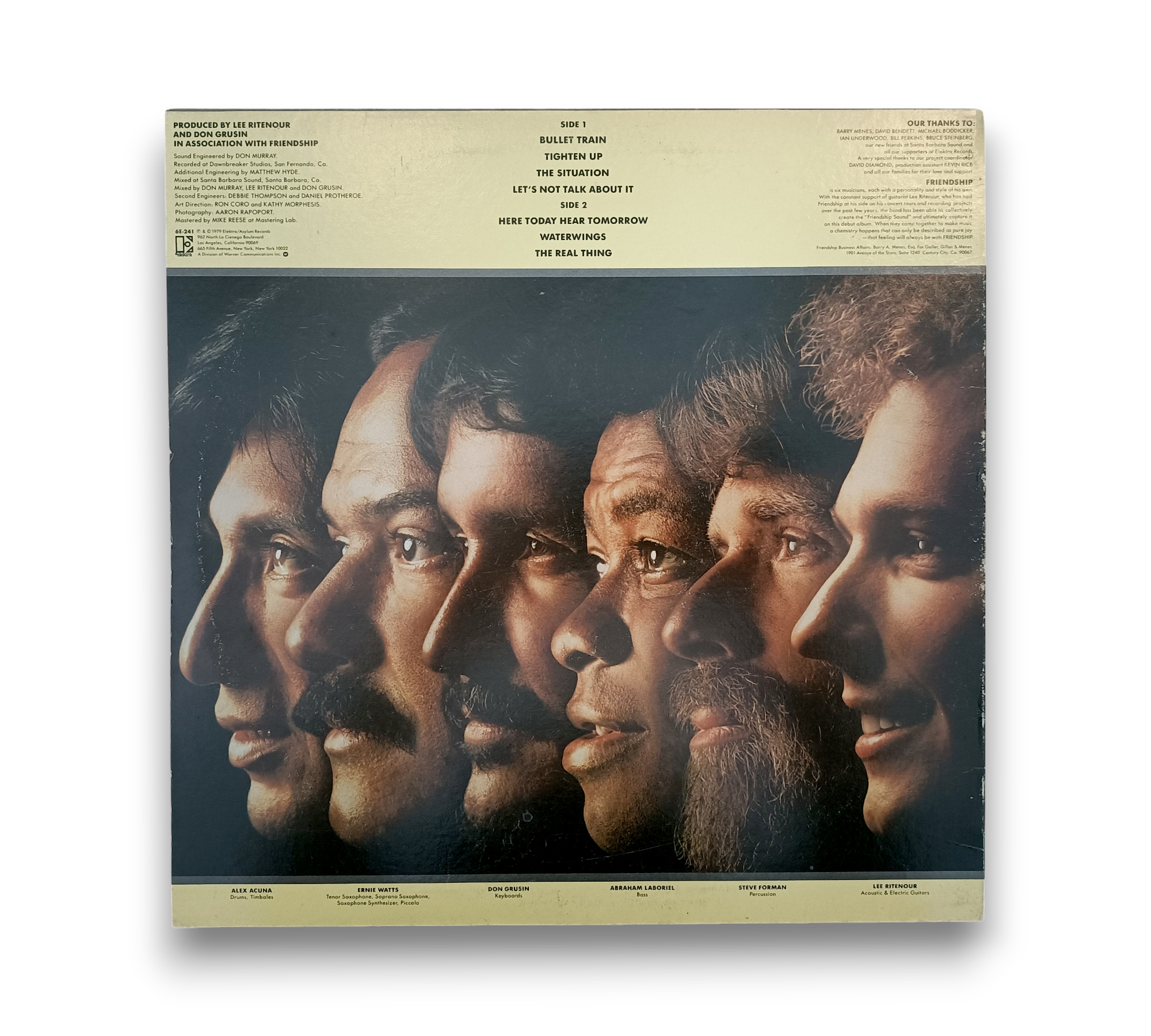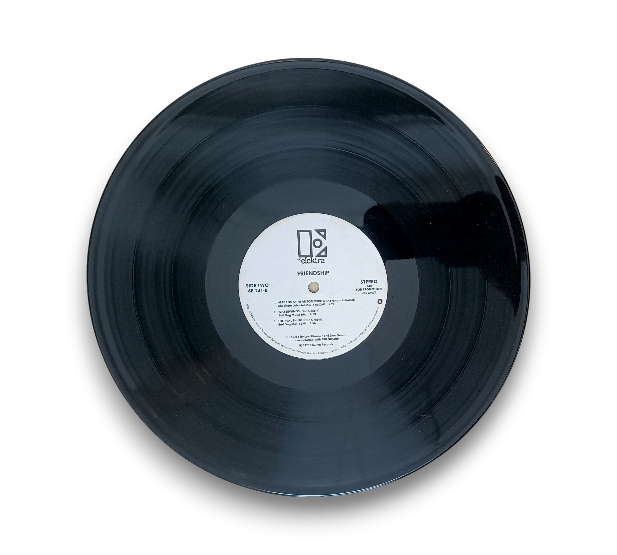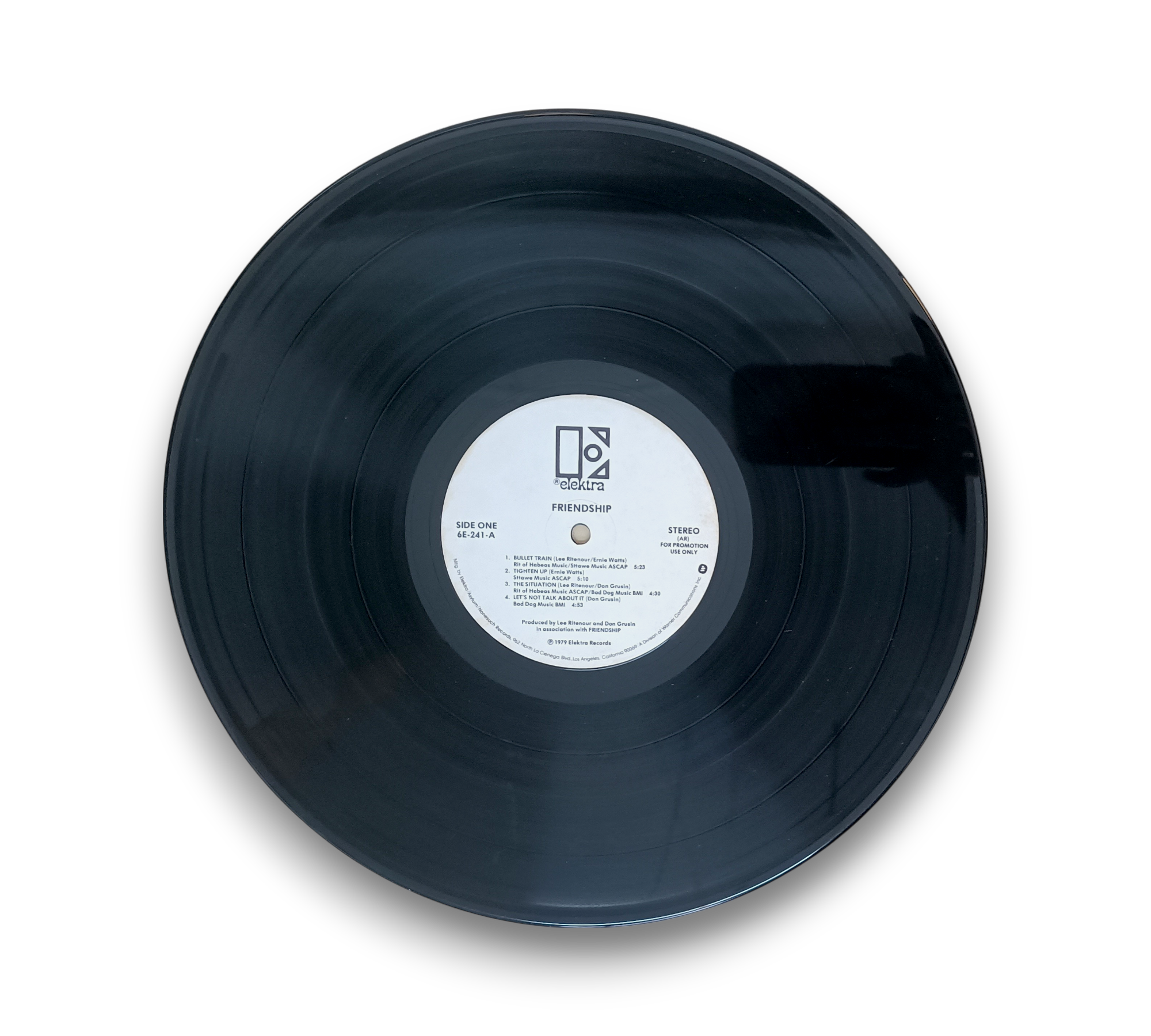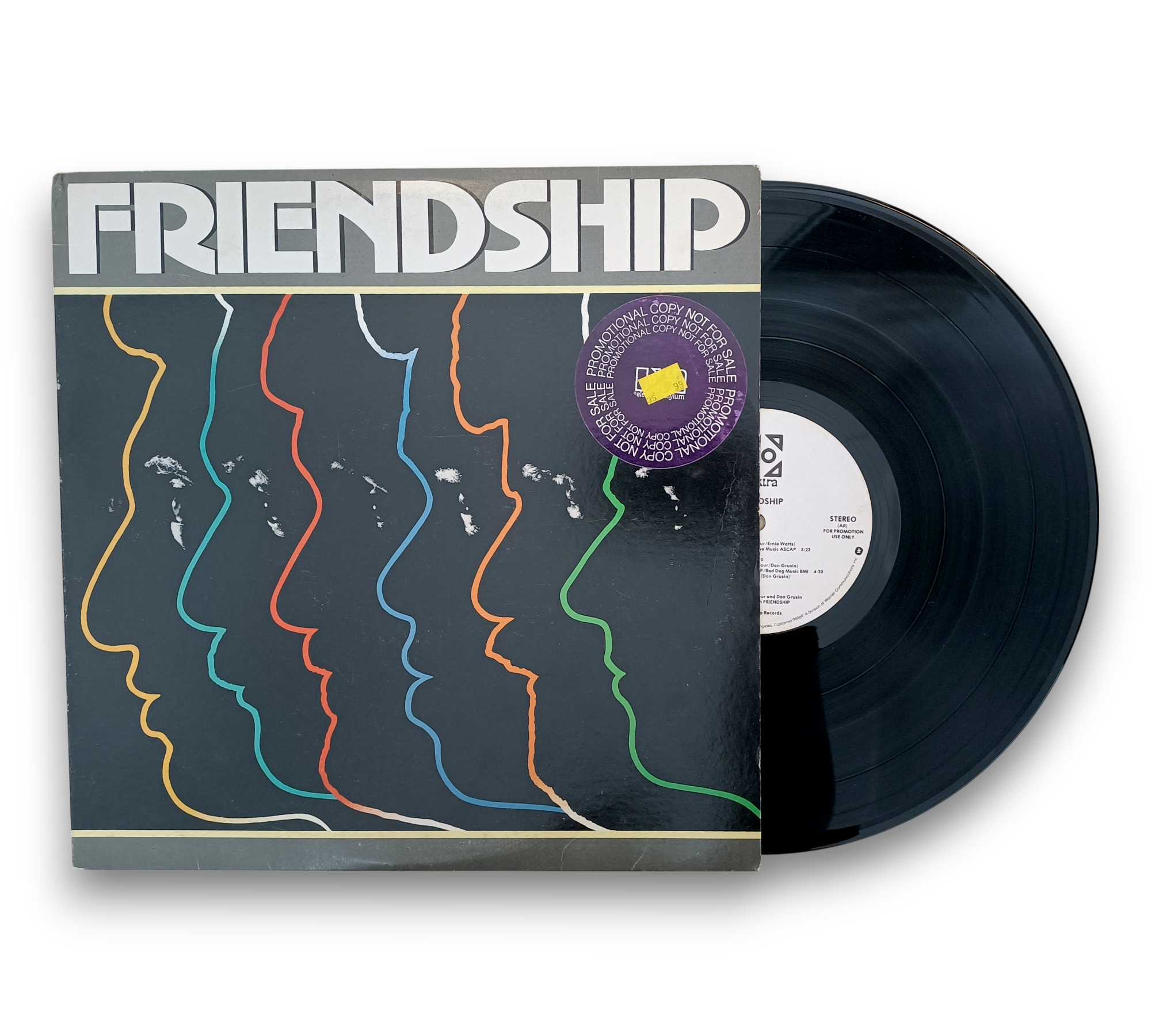 This is a promotional copy of the album "Friendship," featuring a non-standard white label. The runouts are stamped with the TML-M and SRC logos, indicating its unique production. The accompanying images provide a visual reference for the record's condition and packaging. Please refer to the photos for a closer look at the details and overall presentation of this item.