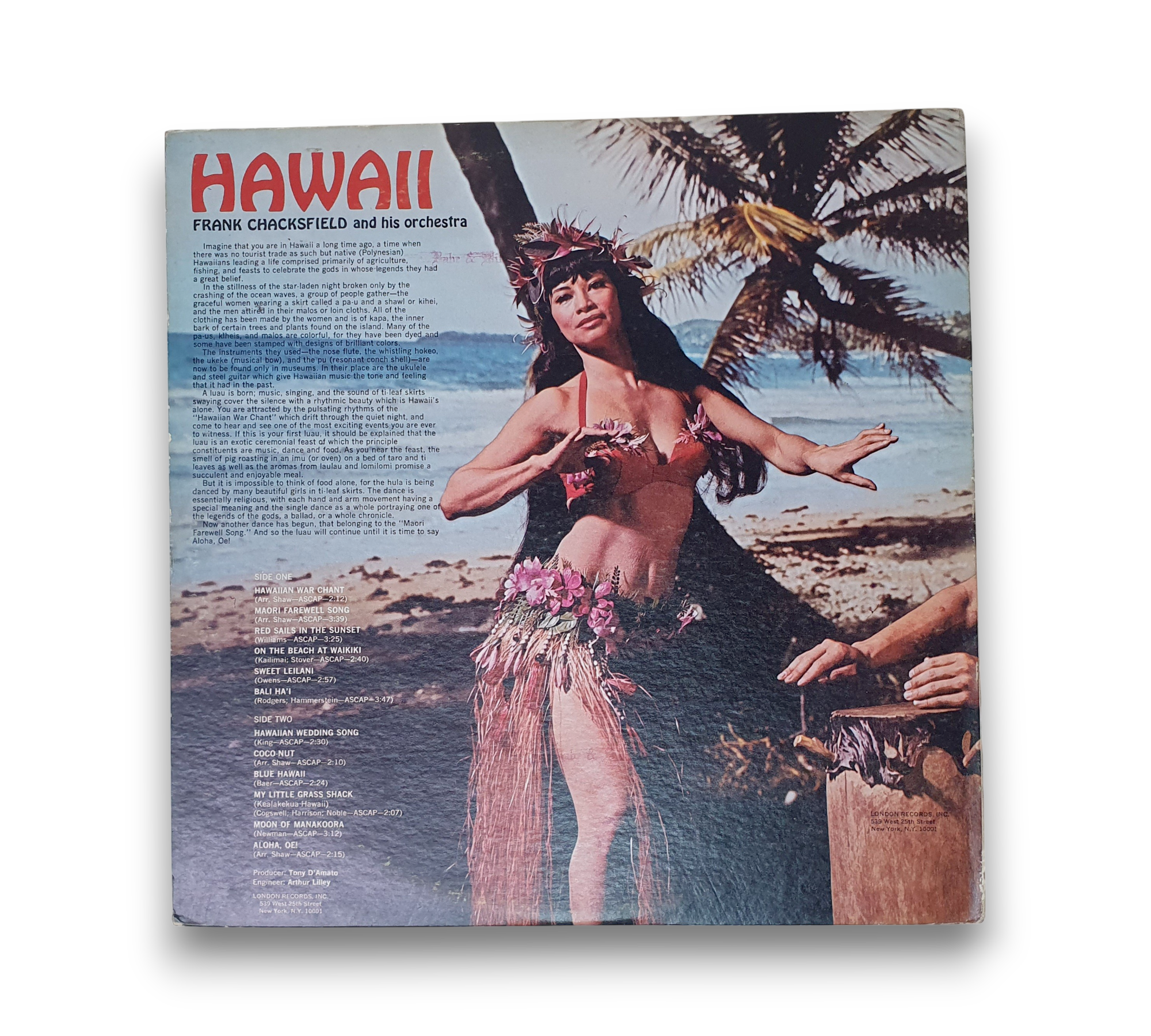 Transport yourself to the serene shores of the islands with Frank Chacksfield & His Orchestra's enchanting 1967 album, "Hawaii." This easy listening vinyl features a delightful collection of tracks, including "Hawaiian War Chant," "Now Is The Hour," and "Aloha, Oe!" Each song beautifully captures the essence of Hawaiian culture and melodies, making it a perfect addition to any jazz or world music collection. Experience the soothing sounds of the tropics with this UK release, a timeless gem for vinyl enthusiasts.