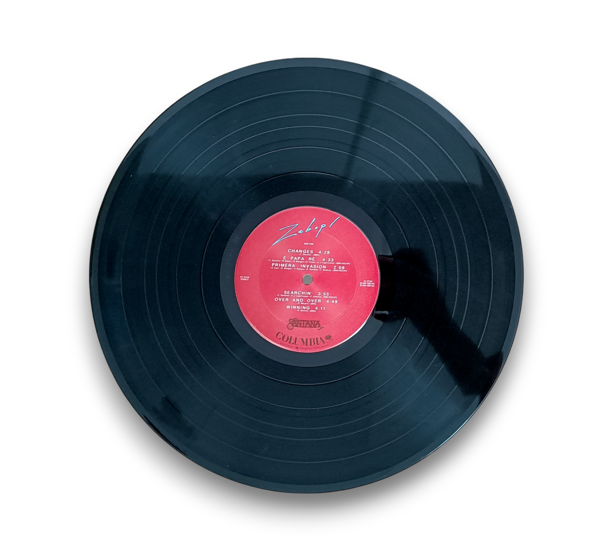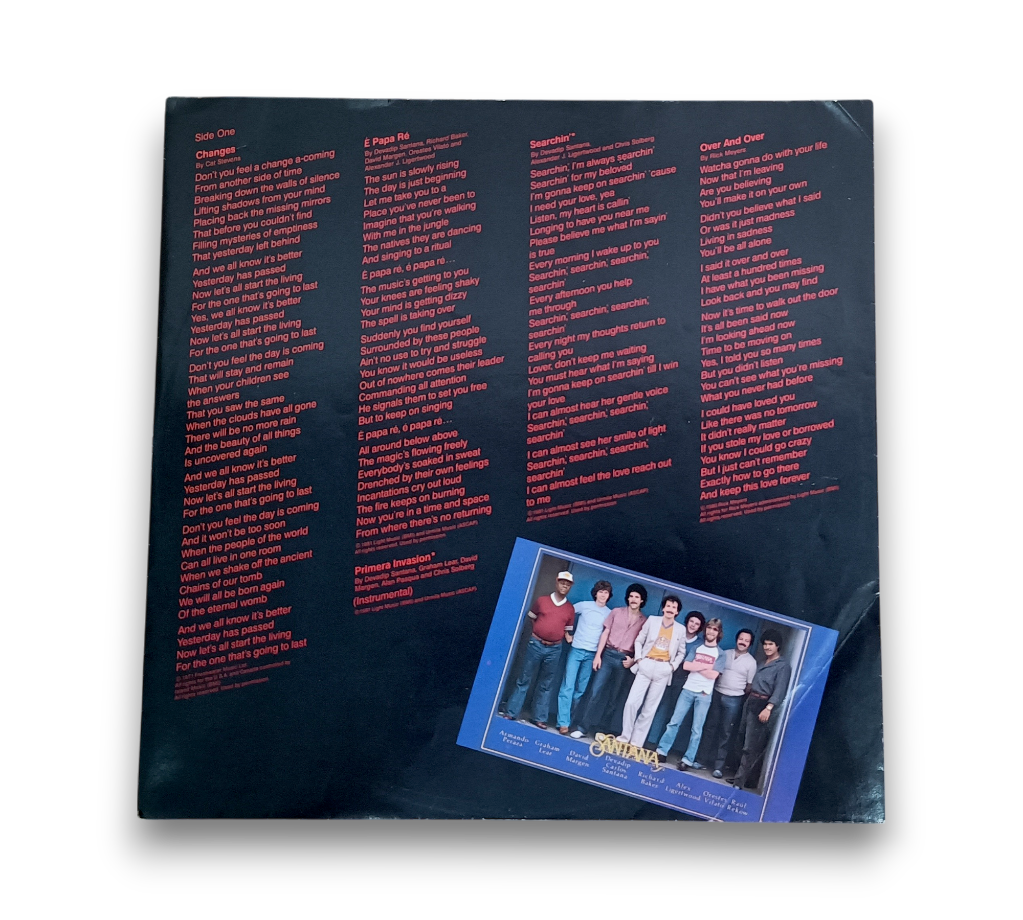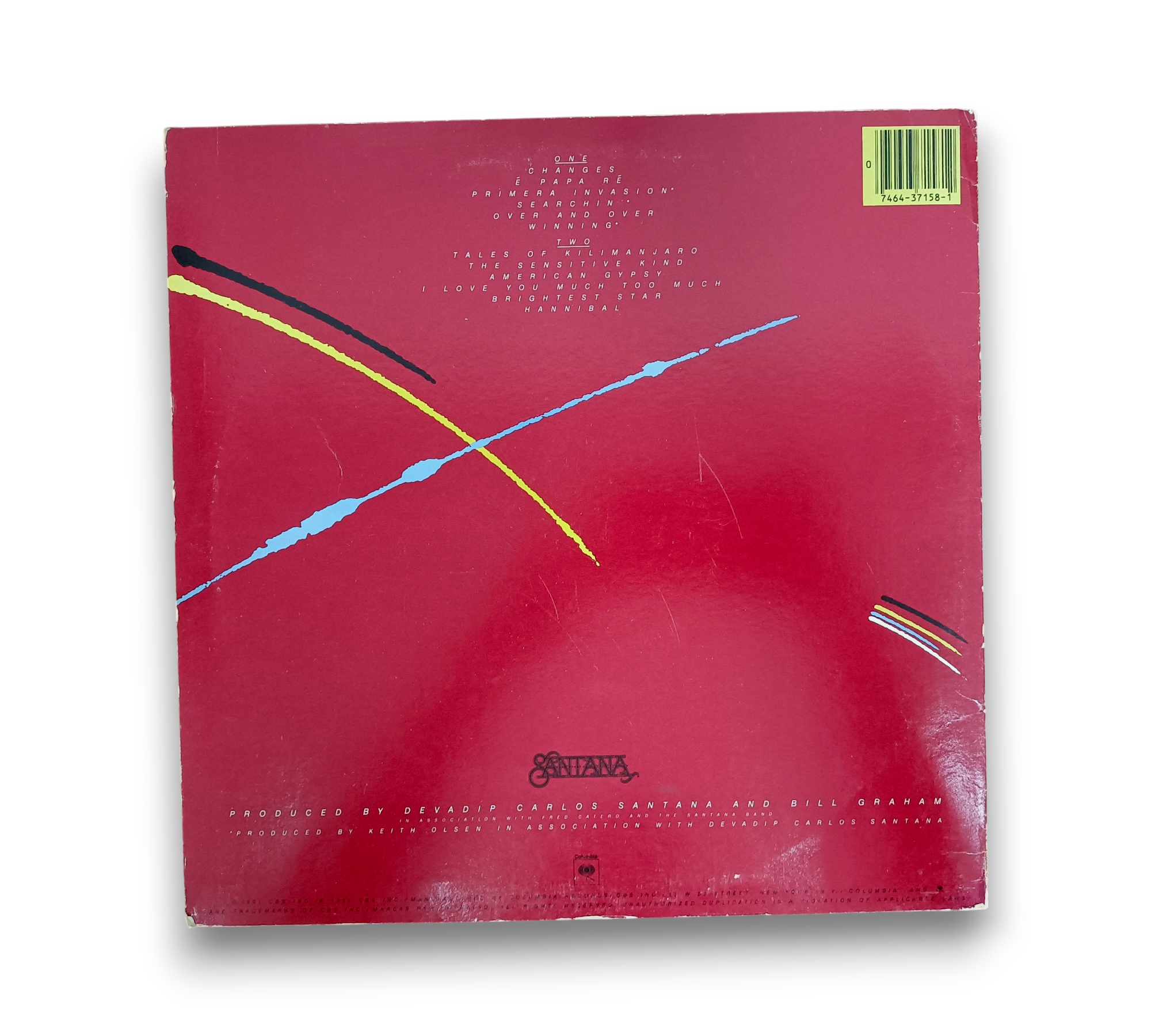 Produced by Devadip Carlos Santana and Bill Graham in association with Gred Catero and The Santana Band, this album features tracks that showcase a blend of musical styles. Notably, tracks A3, A4, and A6 were produced by Keith Olsen in collaboration with Santana. The record includes a printed sleeve, and the runouts are etched, with some elements stamped. For further details regarding the packaging and inserts, please refer to the accompanying photos.