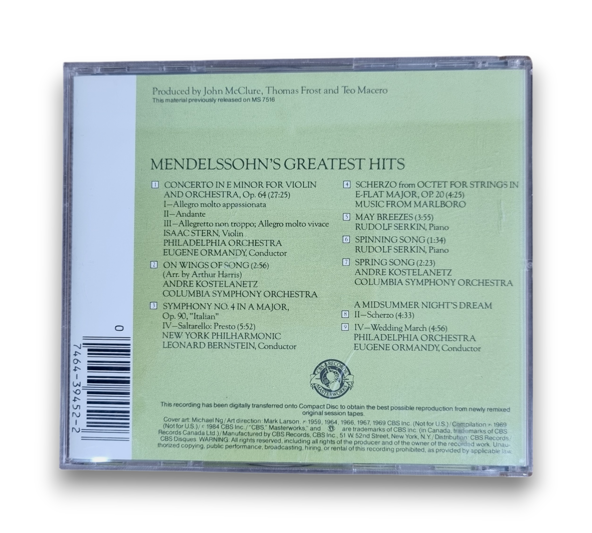 Label/Cat No: CBS Masterworks ON.CD.846
