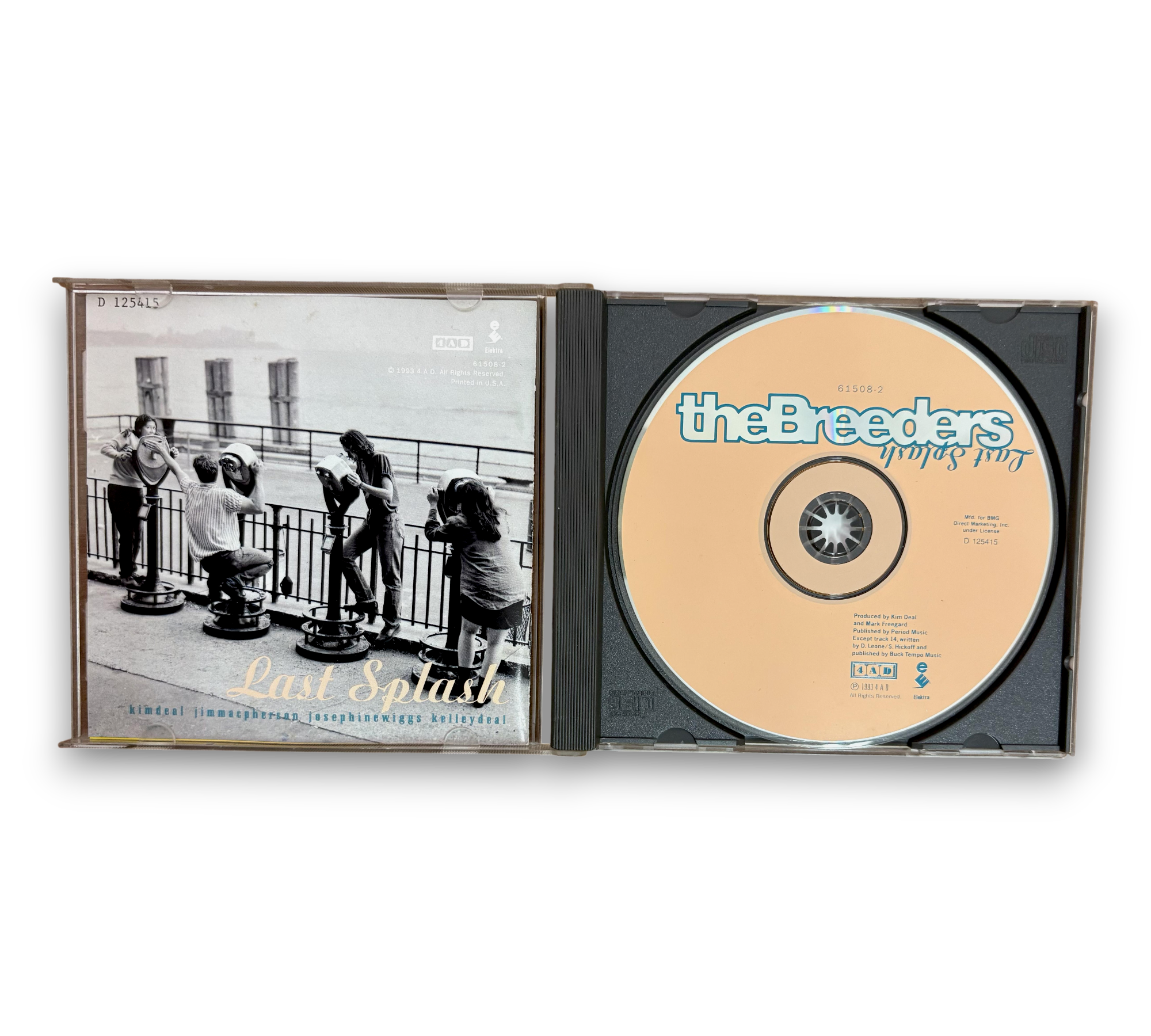 Issued in a standard jewel case, this CD features the album "Last Splash" by The Breeders. It includes a 16-page booklet containing lyrics, photos, and credits. The album was recorded at Coast Recorders in San Francisco, with additional sessions at Brilliant Studios and Refraze. The mixing took place at The Plant in Sausalito. For further details regarding the packaging and inserts, please refer to the accompanying photos.