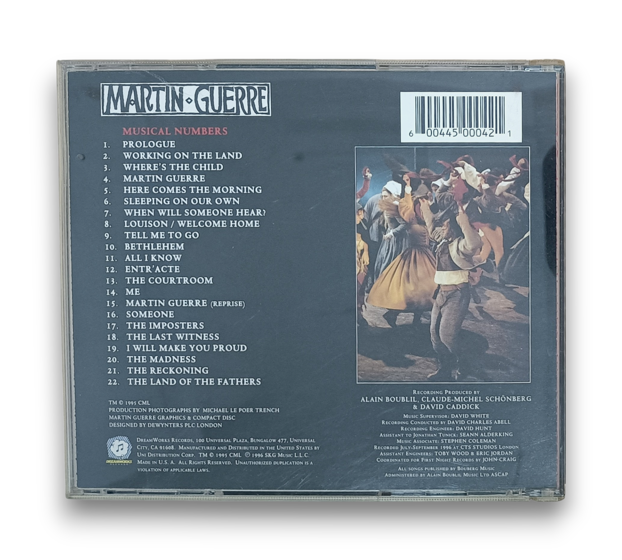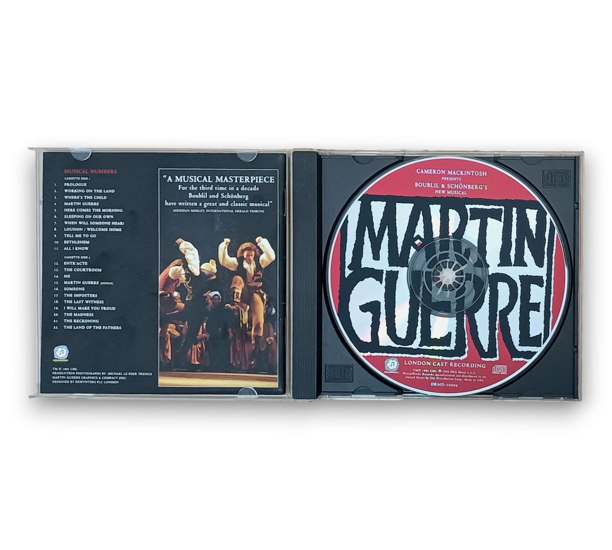 Experience the captivating storytelling of "Martin Guerre" with this London Cast Recording CD, released in 1996. Featuring the creative talents of Cameron Mackintosh, Alain Boublil, and Claude-Michel Schönberg, this musical brings to life the poignant tale of love and identity through a rich tracklist, including "Martin Guerre," "The Courtroom," and "I Will Make You Proud." A must-have for fans of stage and screen, this recording captures the essence of a powerful theatrical experience.