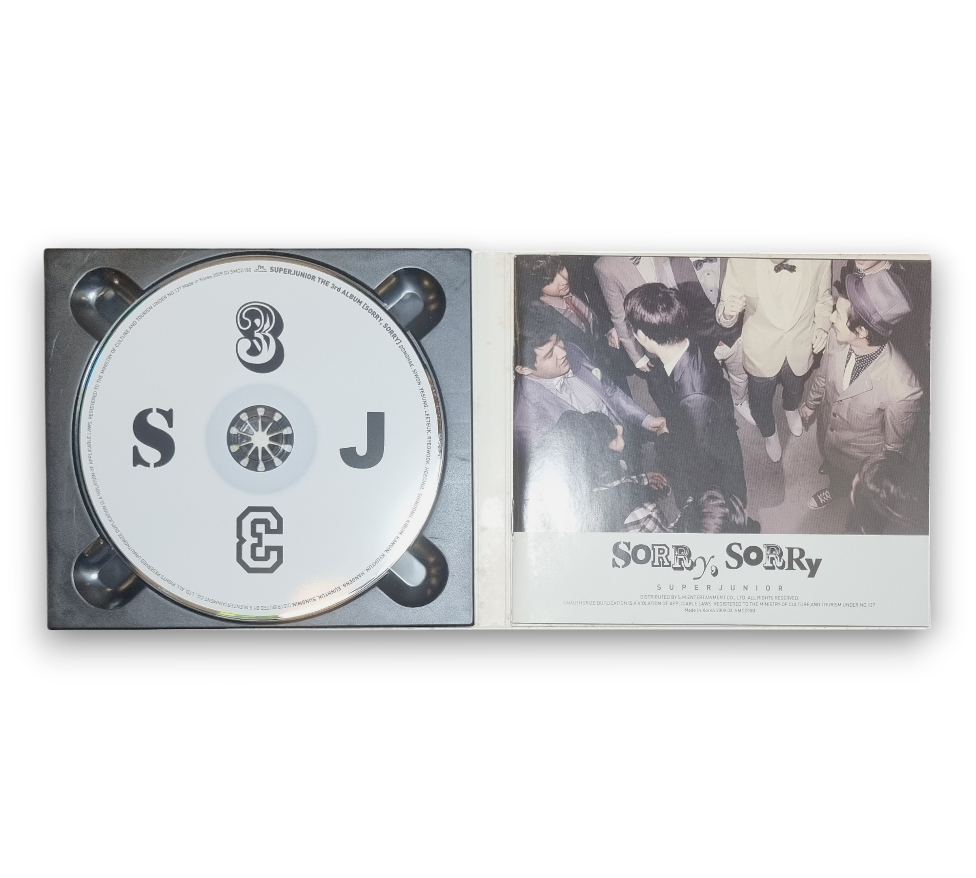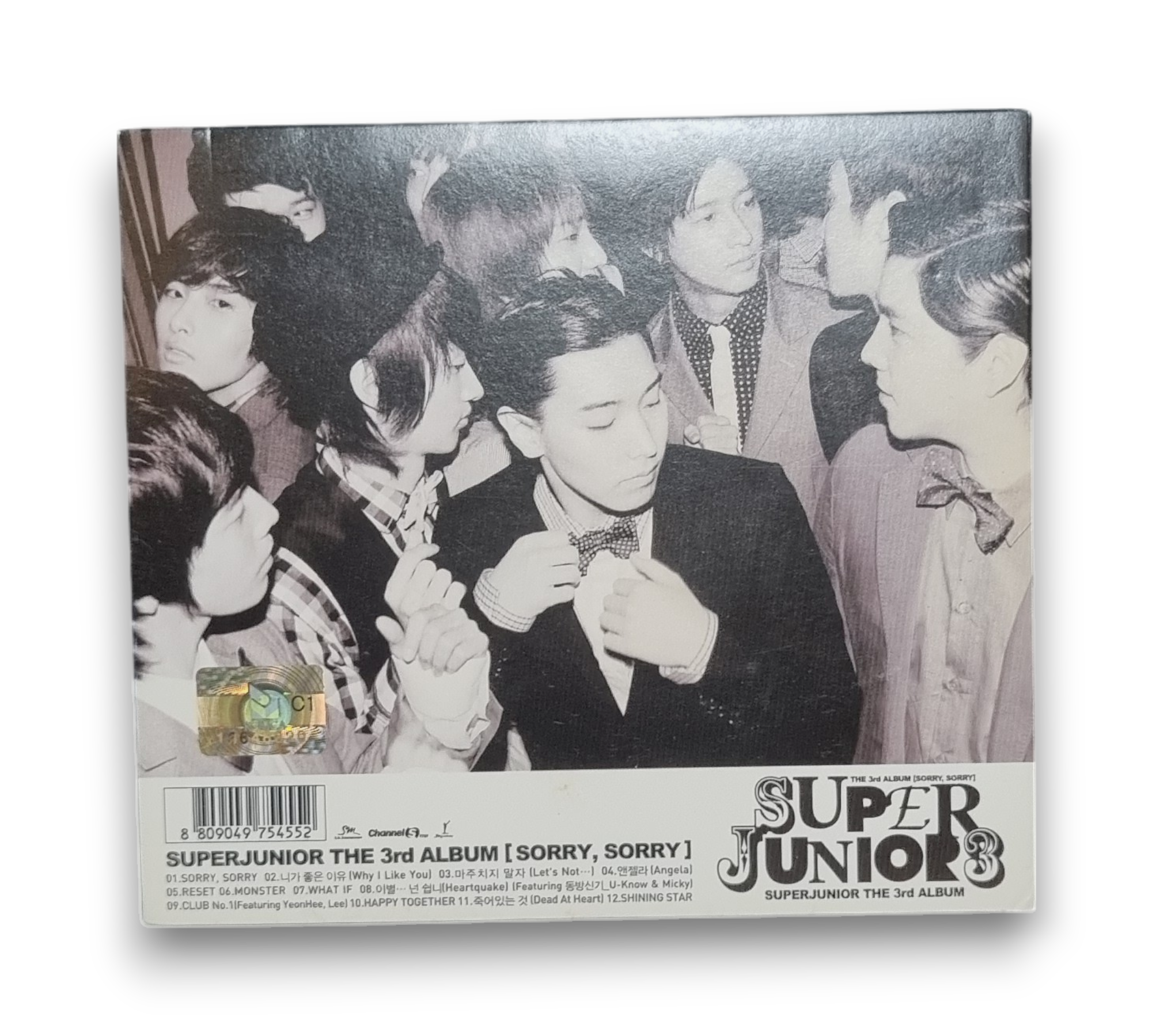 The 3rd Album [Sorry, Sorry] by Super Junior features a collection of tracks showcasing the group's dynamic sound. The album includes popular songs such as "Sorry, Sorry," "Why I Like You," and "Heartquake," all recorded and mixed at various S.M. Entertainment studios. The album is presented in a visually striking format, with a unique design that captures the essence of the group's energetic style. It is important to note that while the listing mentions an insert, please refer to the accompanying photos for confirmation of included materials. This album was released in March 2009 and is a must-have for fans of K-pop.