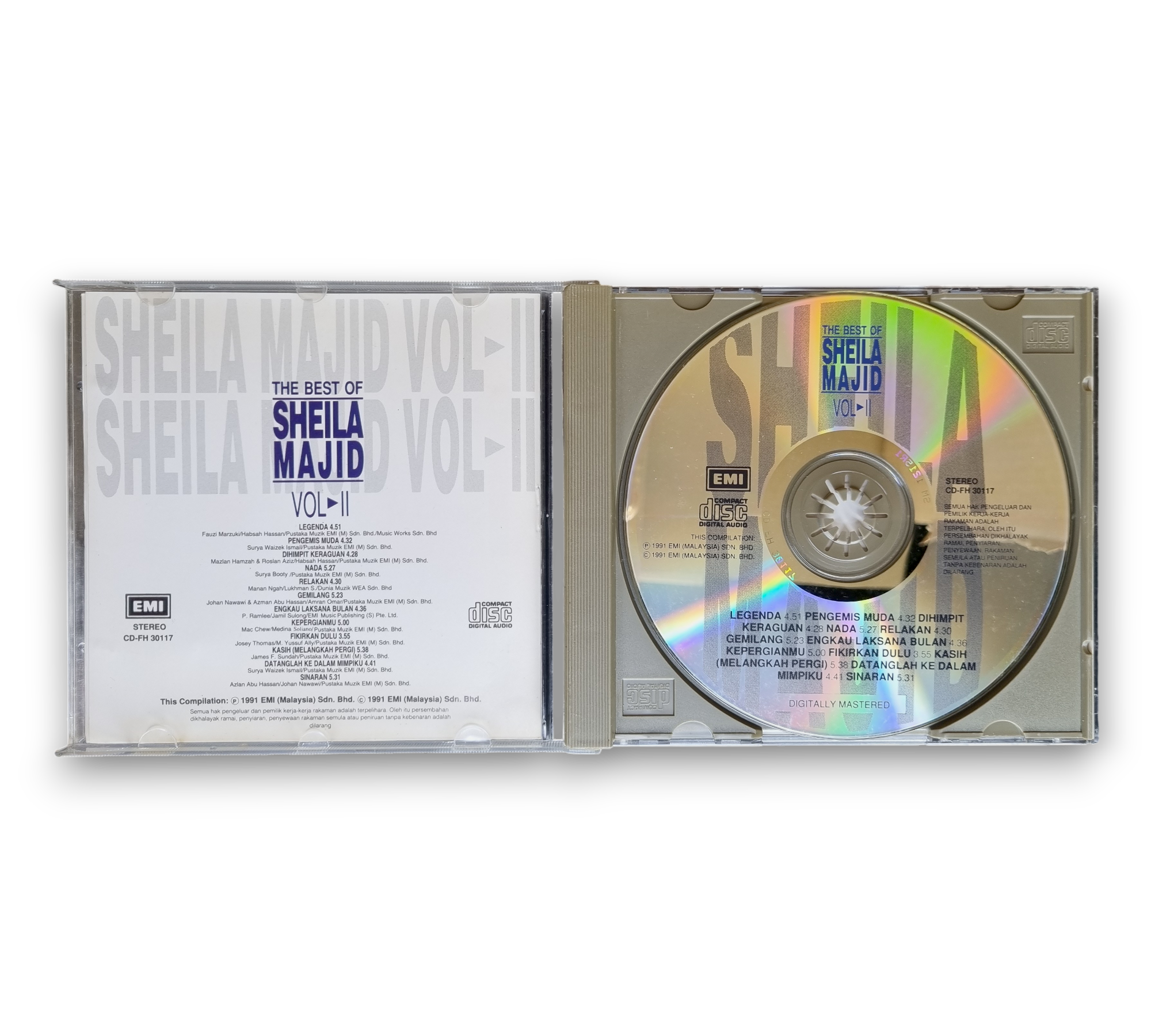 Many of the defects found in a VG+ CD will be more pronounced, with possibly more wear, marks and indentations. May be marred by slight fading, a small tear/rip, writing, or have tape or stickers (or their residue) attached.