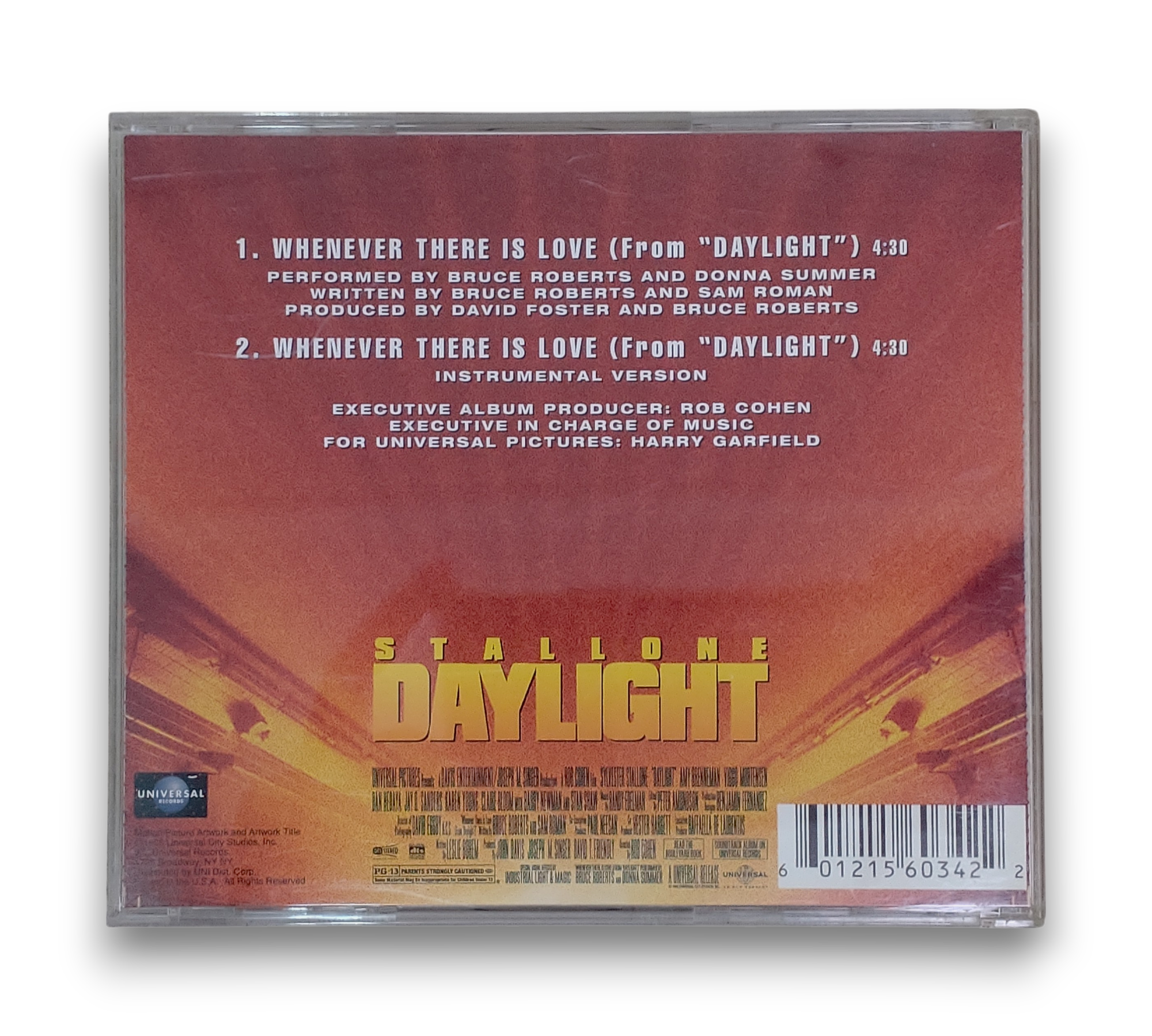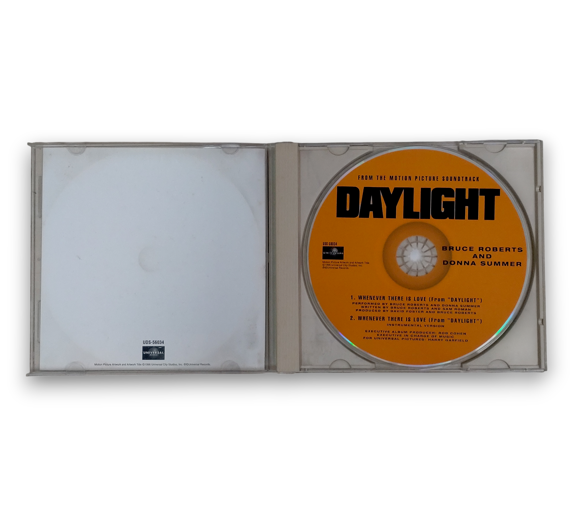 Discover the heartfelt duet "Whenever There Is Love," performed by Bruce Roberts and Donna Summer, from the 1996 motion picture soundtrack of "Daylight." This CD features both the main single version and an instrumental version, showcasing the lush production by David Foster and Bruce Roberts. With its blend of pop and synth-ballad styles, this release is a must-have for fans of cinematic music and the artists alike. For details on packaging and inserts, please refer to the accompanying photos.