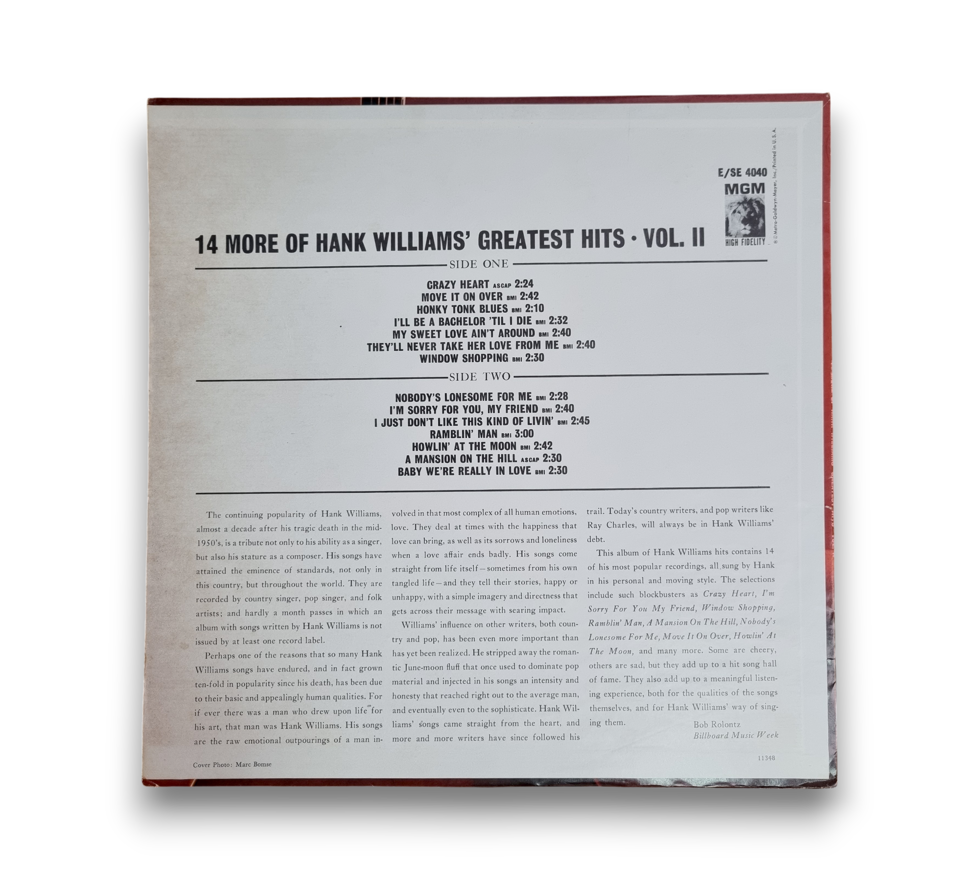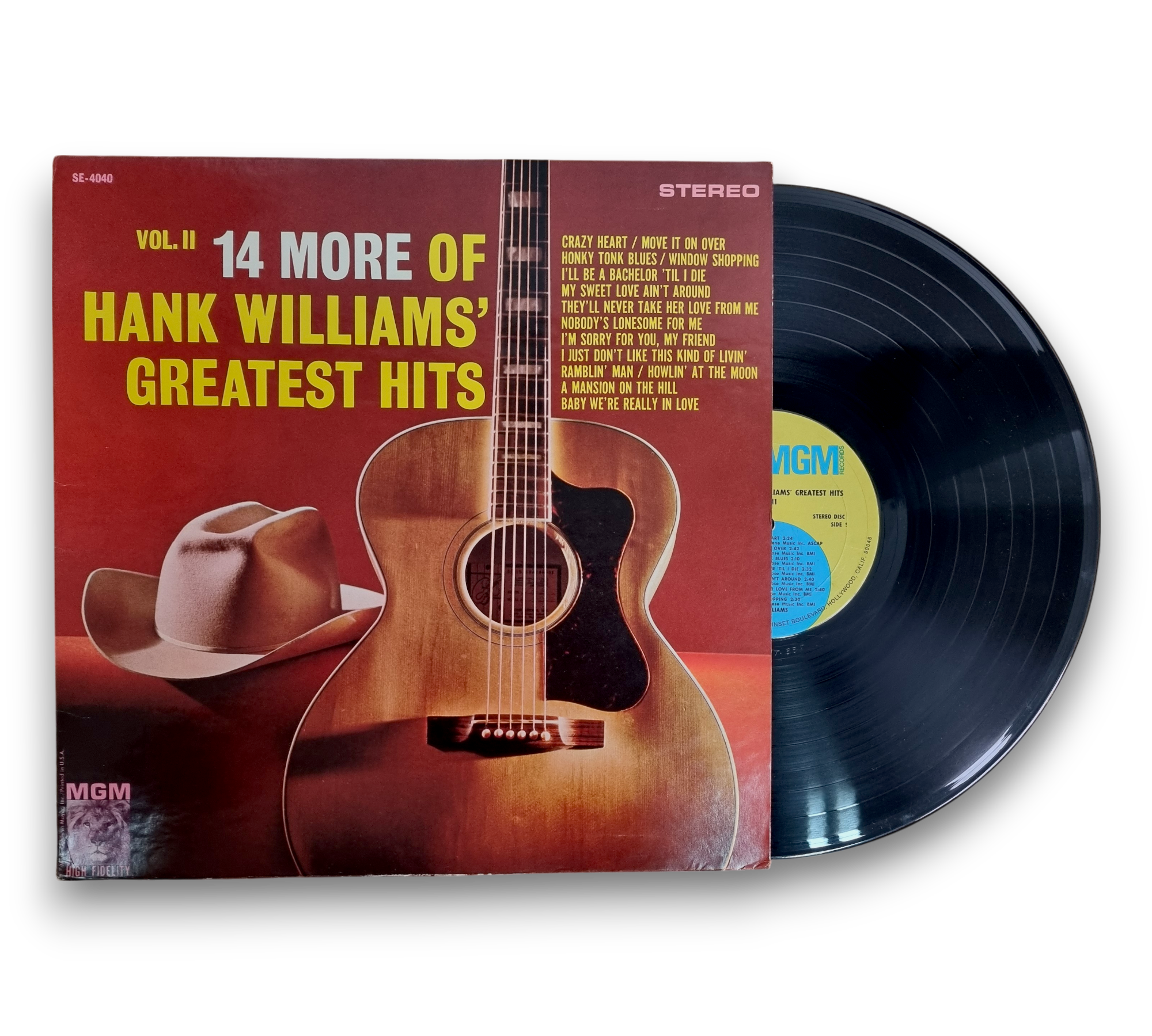 Printed in the U.S.A., this record features different catalog numbers on the front cover, spine, back cover, and labels. The album, titled "14 More of Hank Williams' Greatest Hits - Vol. II," showcases a collection of classic tracks. For a closer look at the packaging and any included inserts, please refer to the accompanying photos.