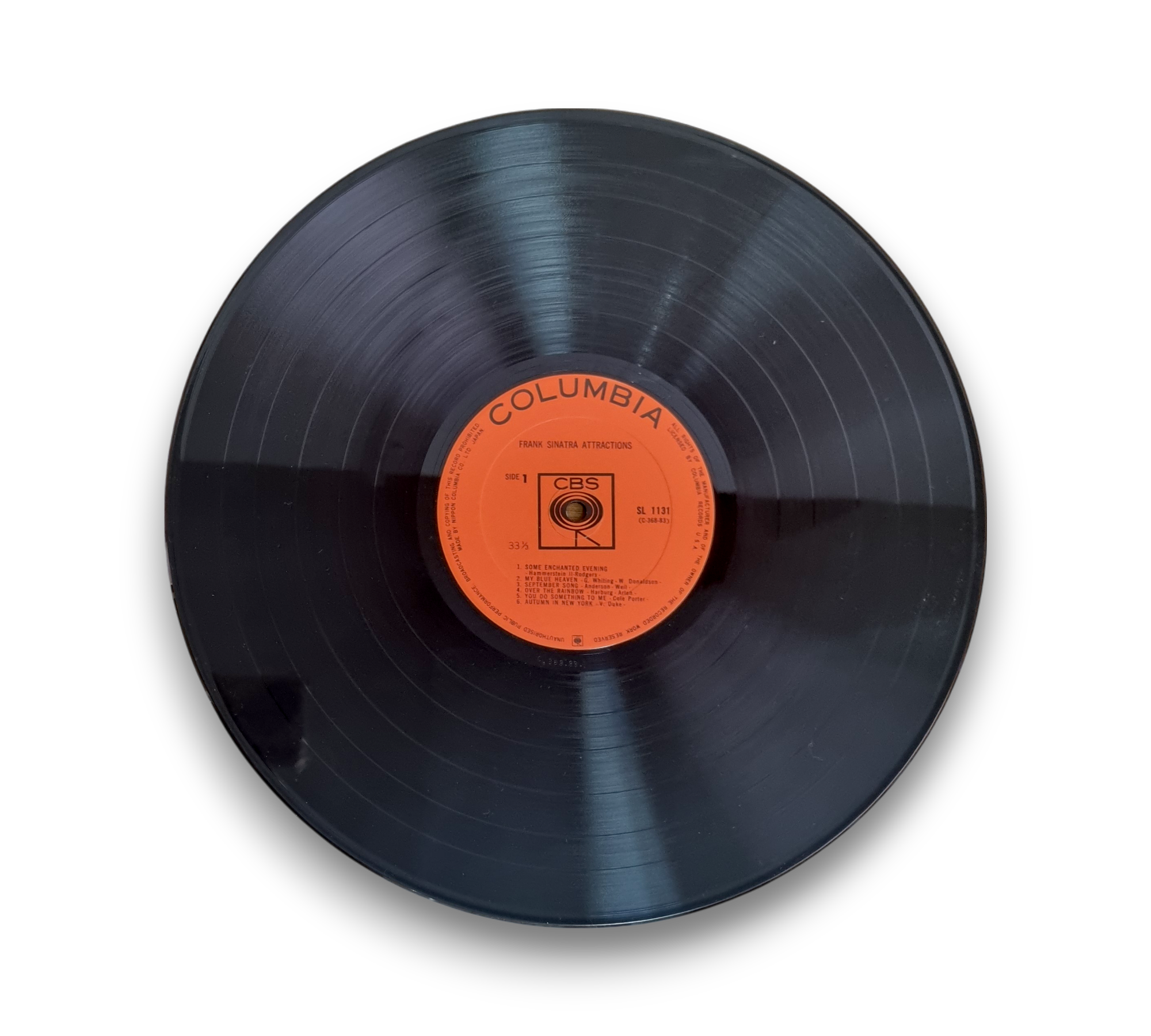 Released in a fully laminated flip-back sleeve, this record features the iconic Frank Sinatra in "Attractions." The album includes a selection of timeless tracks, showcasing Sinatra's unparalleled vocal talent. For a closer look at the packaging and condition, please refer to the accompanying photos.