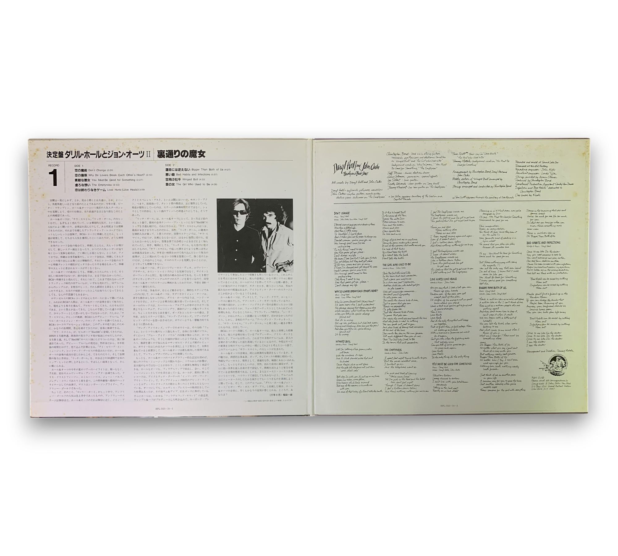 Discover the dynamic sounds of Daryl Hall & John Oates with this vinyl release featuring "Beauty On A Back Street" and "Along The Red Ledge," originally released in Japan in 1983. This collection showcases the duo's signature blend of rock, funk, and soul, with standout tracks like "Don't Change," "It's A Laugh," and "Love Hurts (Love Heals)." A must-have for fans of pop rock, this record captures the essence of Hall & Oates' musical genius.
