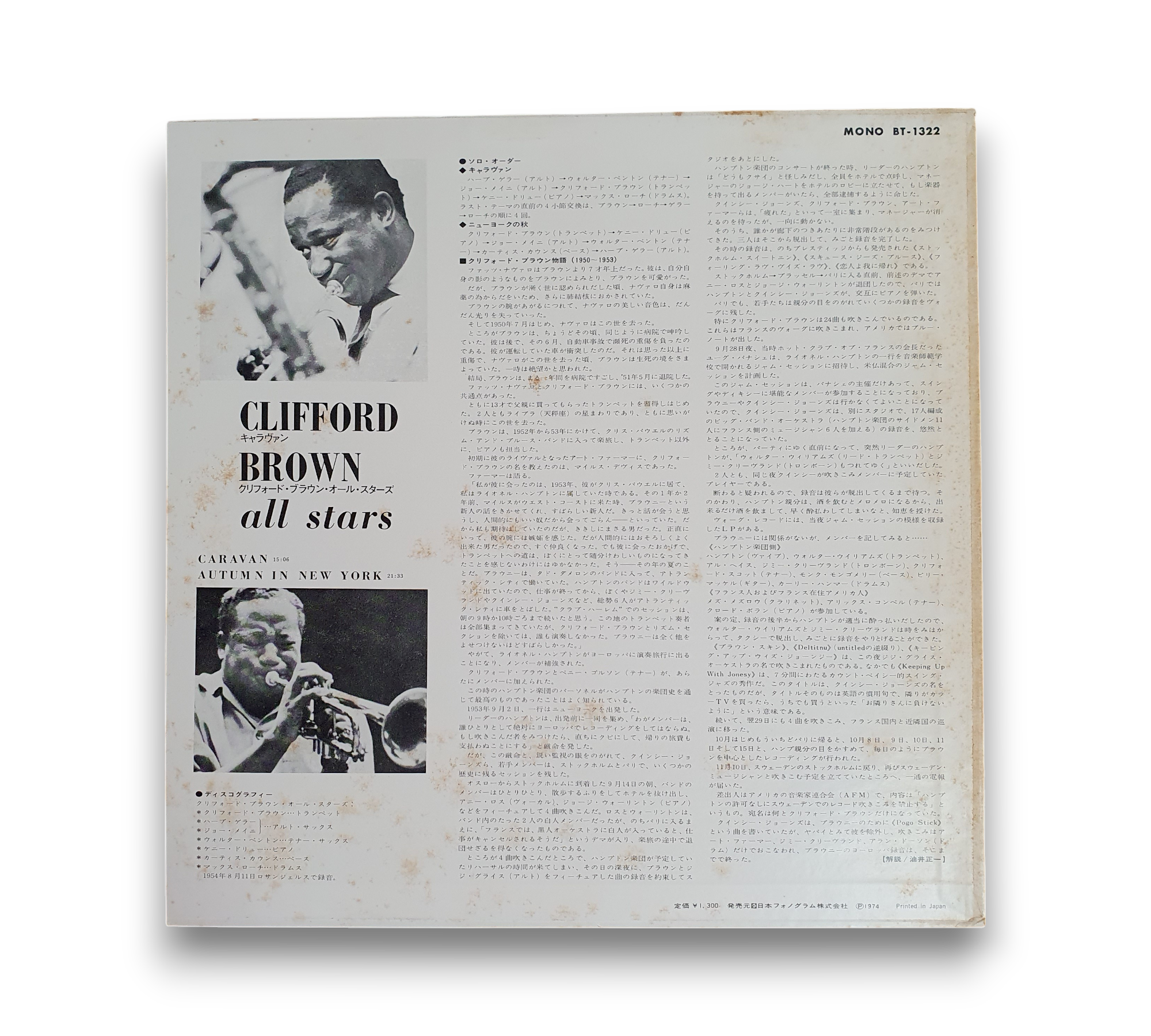 This record features the legendary Clifford Brown and his All Stars, recorded on August 11, 1954, at Capitol Studios in Los Angeles, CA. It is a Japan reissue, with all matrix runouts stamped in the dead wax. For further details regarding the packaging and inserts, please refer to the accompanying photos.