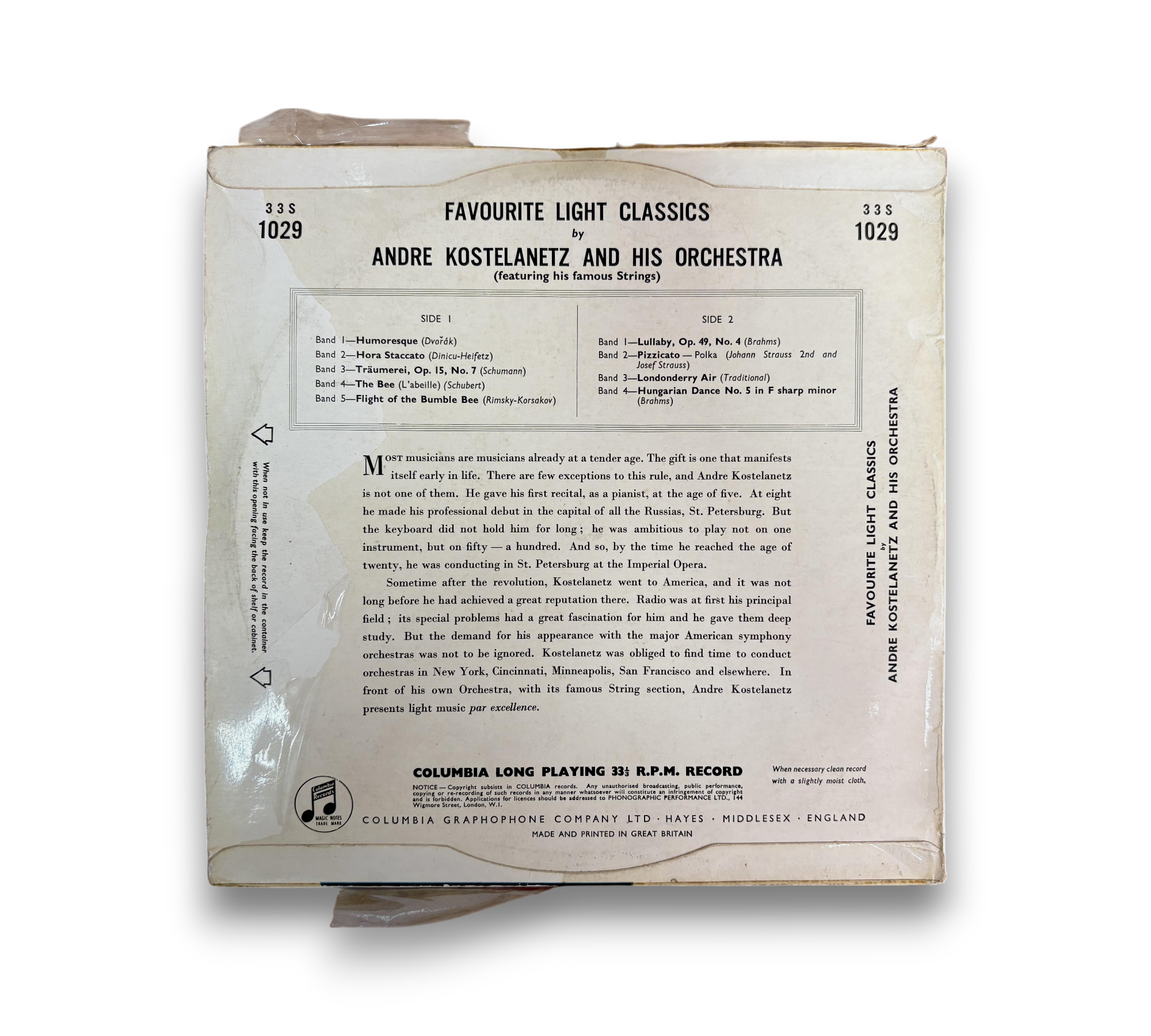 Delight in the soothing melodies of "Favourite Light Classics," featuring André Kostelanetz and His Orchestra. This vinyl record showcases a charming collection of neo-classical and easy listening tracks, including beloved pieces like "Humoresque," "Träumerei," and "Flight Of The Bumble Bee." Perfect for jazz and classical enthusiasts, this UK release offers a serene auditory experience that transports listeners to a world of elegance and tranquility.