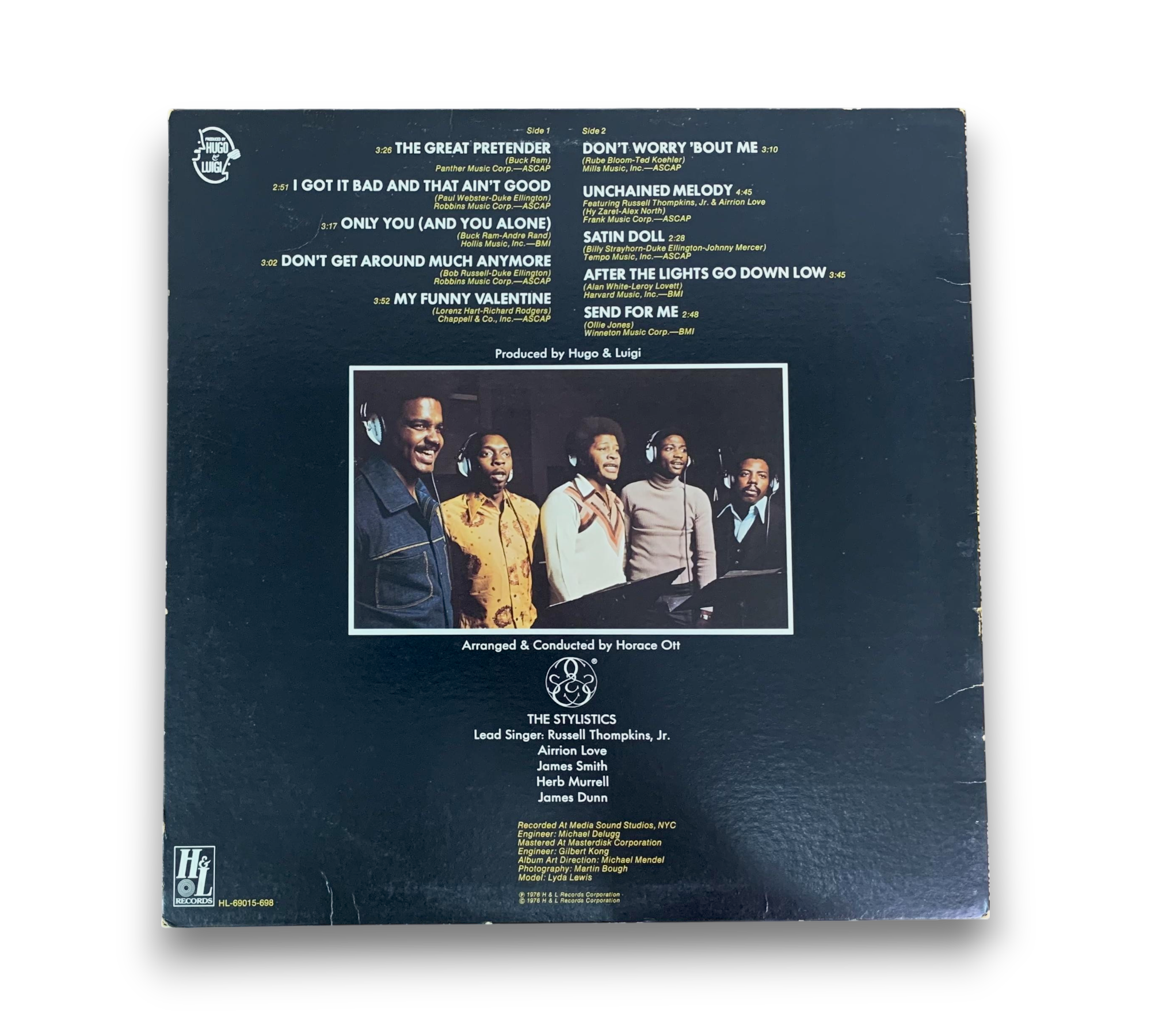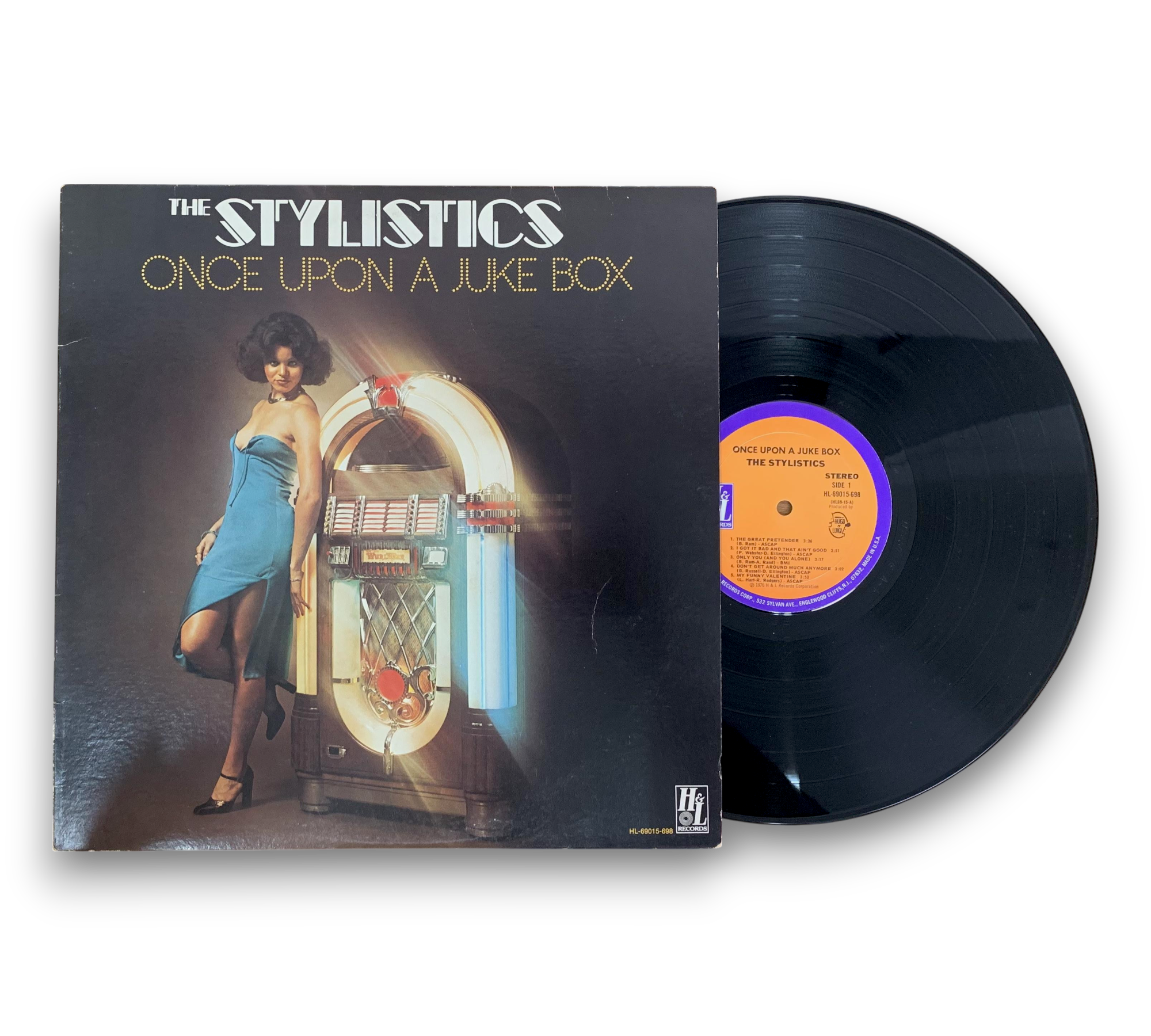 Experience the smooth vocal harmonies of The Stylistics with their 1976 album "Once Upon A Juke Box," recorded at Media Sound Studios in New York City. This vinyl release under H & L Records features timeless tracks like "The Great Pretender," "Unchained Melody," and "My Funny Valentine," showcasing the group's signature blend of funk, soul, and rhythm & blues. The beautifully designed cover art by Lyda Lewis complements the classic sound, making this a must-have for any vinyl collector.