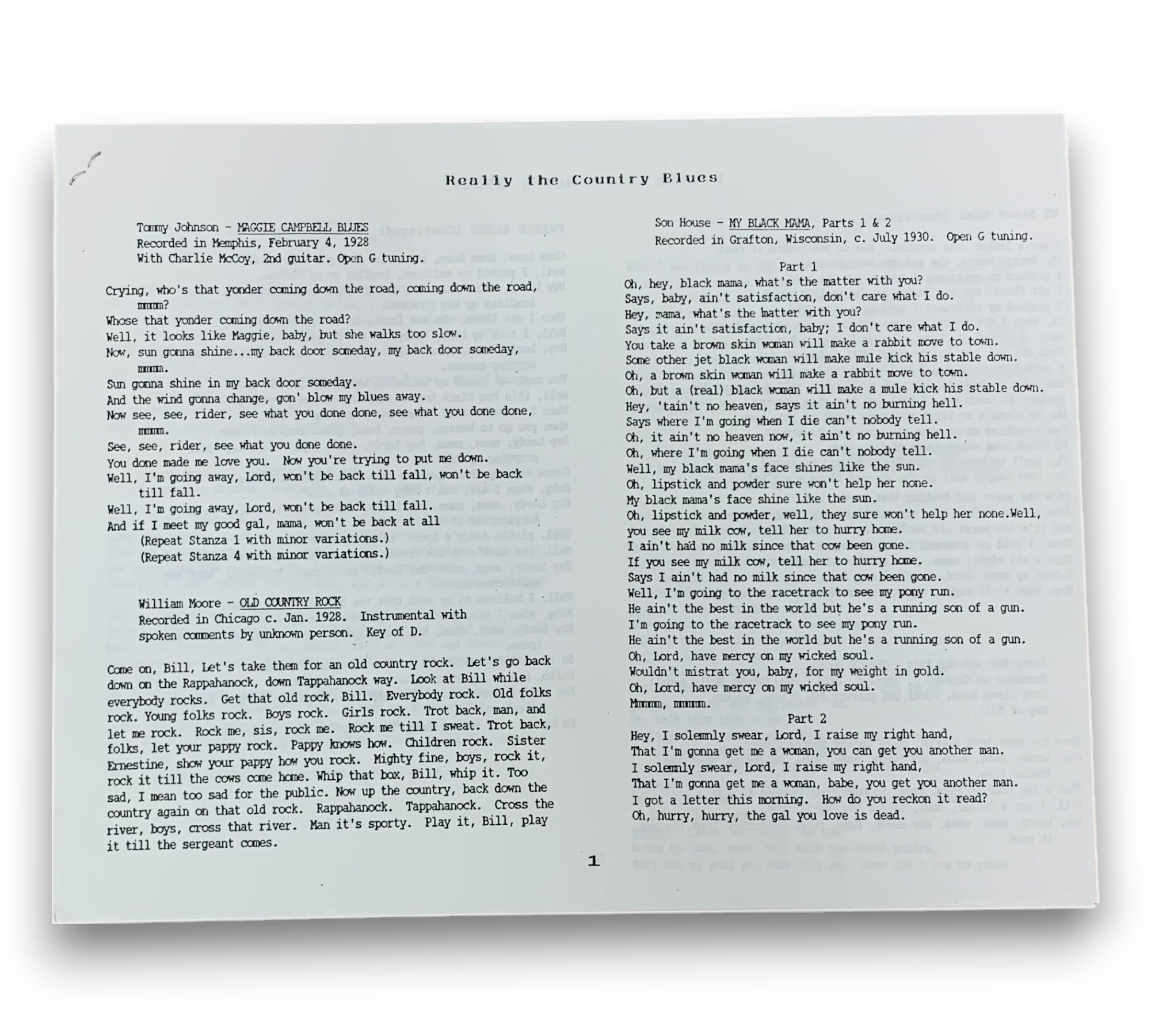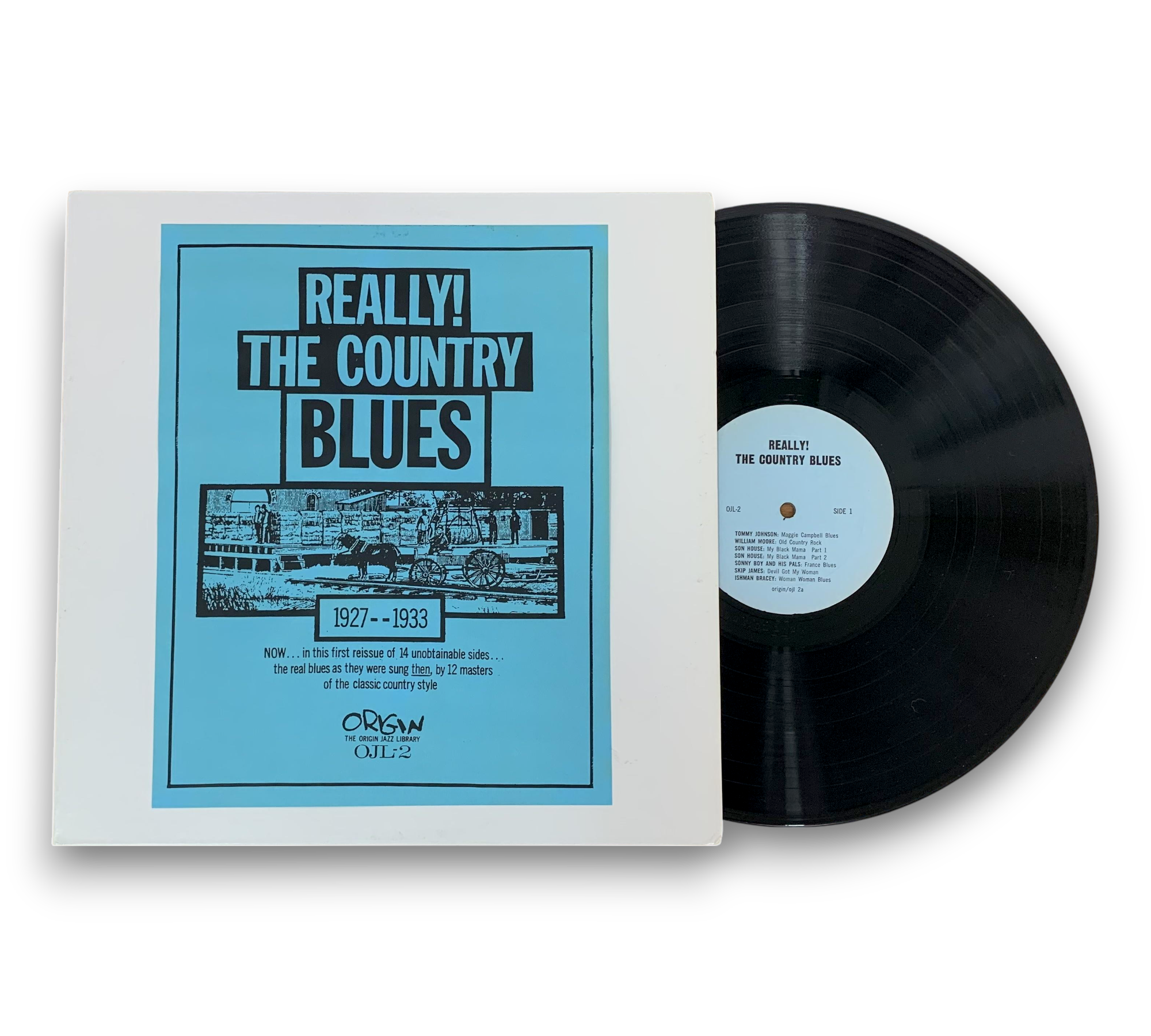 Discover the rich sounds of early American music with "Really! The Country Blues 1927-1933," a reissue vinyl compilation featuring iconic tracks from the country blues genre. This collection showcases the raw talent of various artists, with memorable songs like "Devil Got My Woman" and "Cottonfield Blues." The plain white sleeve, adorned with a blue Xerox copy sheet, adds a unique touch, while the included liner notes provide valuable context for each track. A must-have for blues enthusiasts and collectors alike.