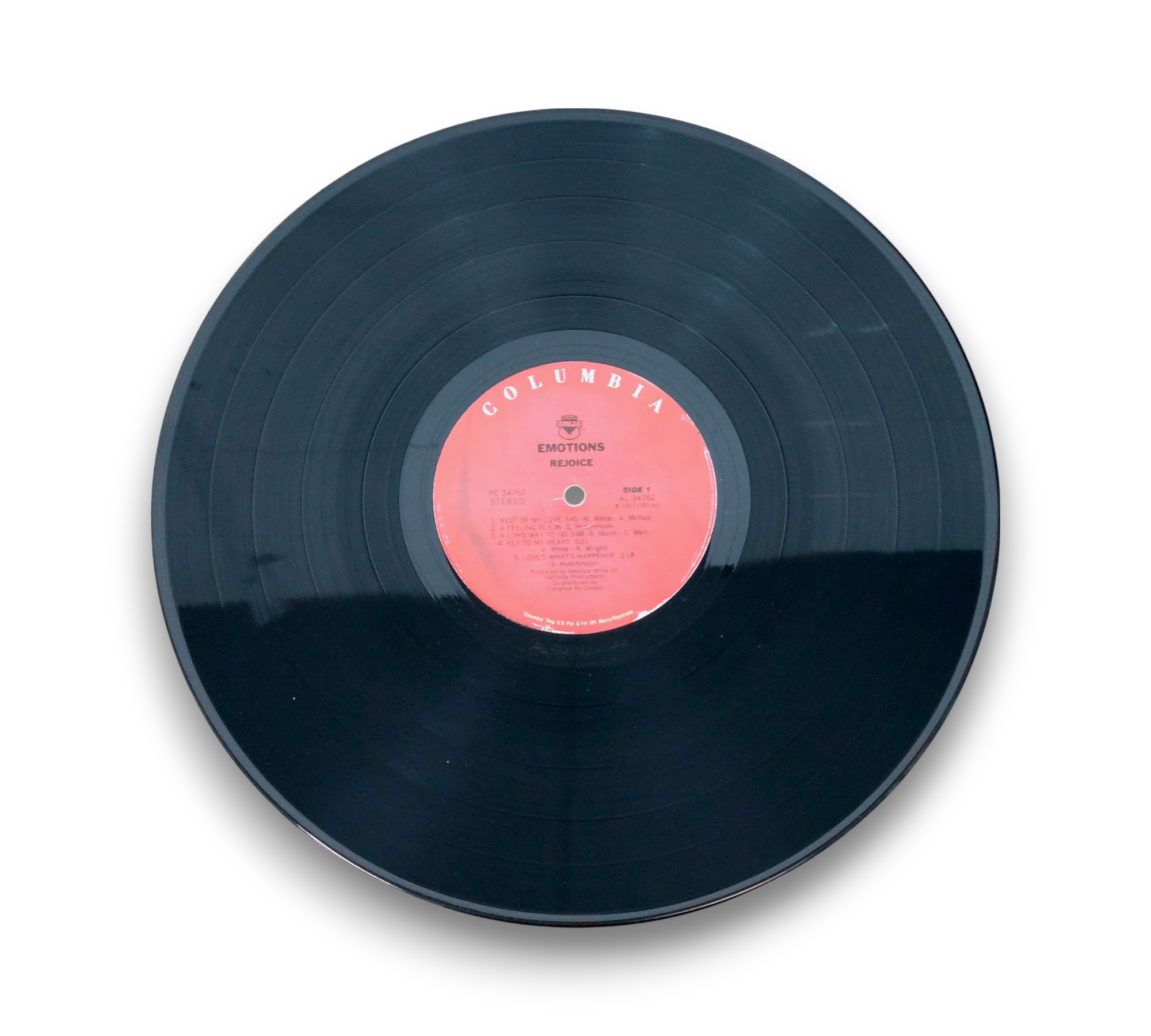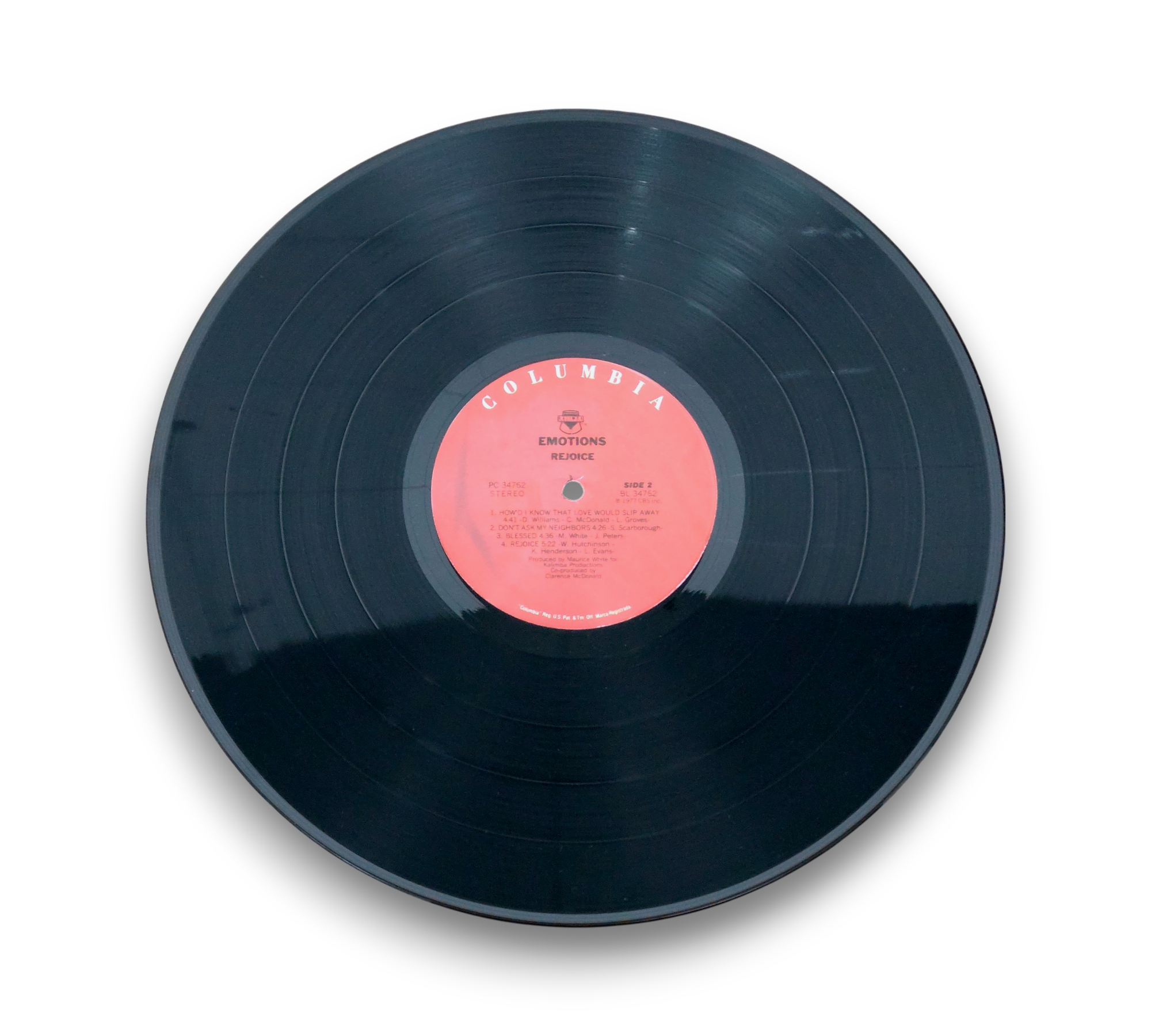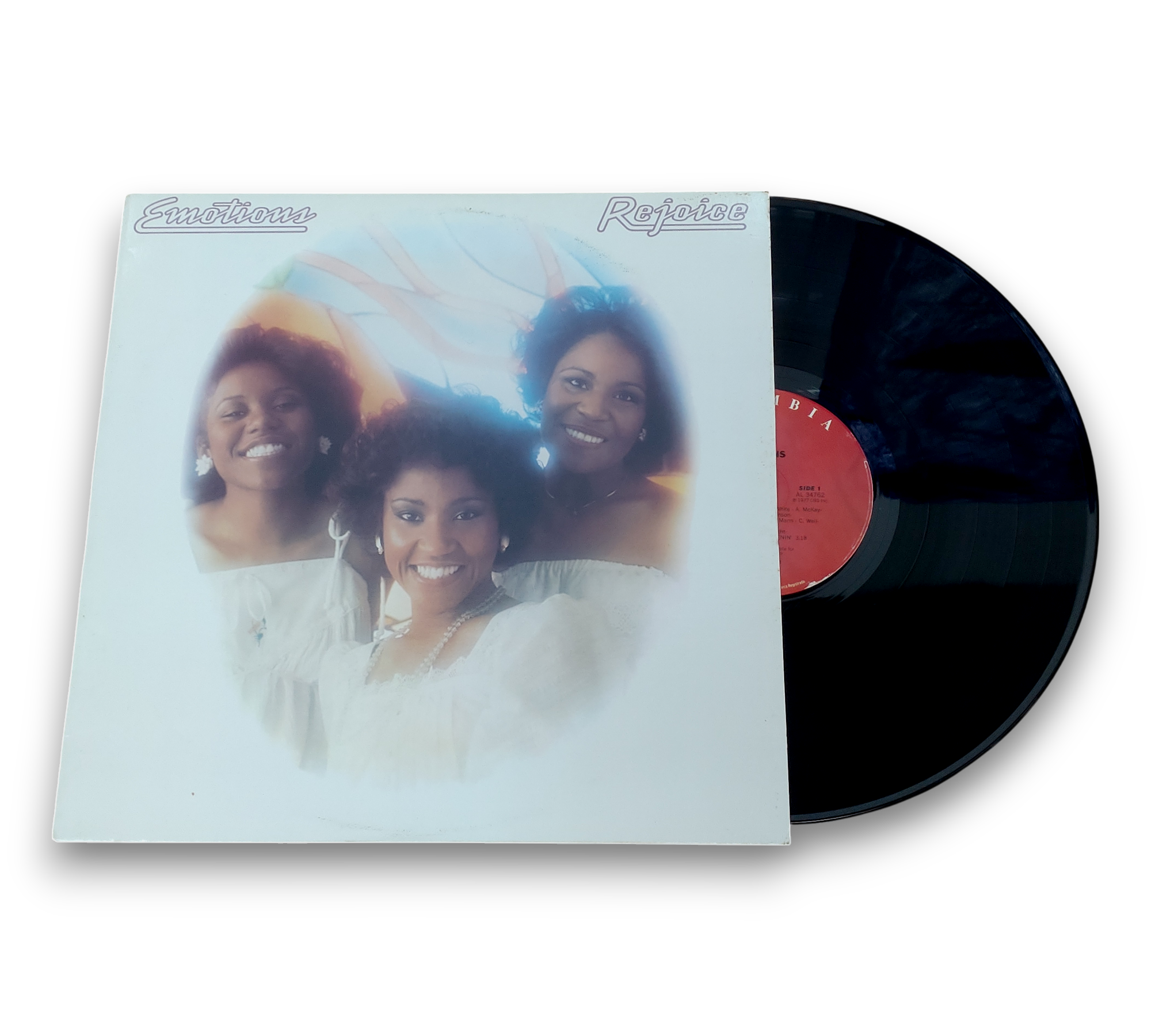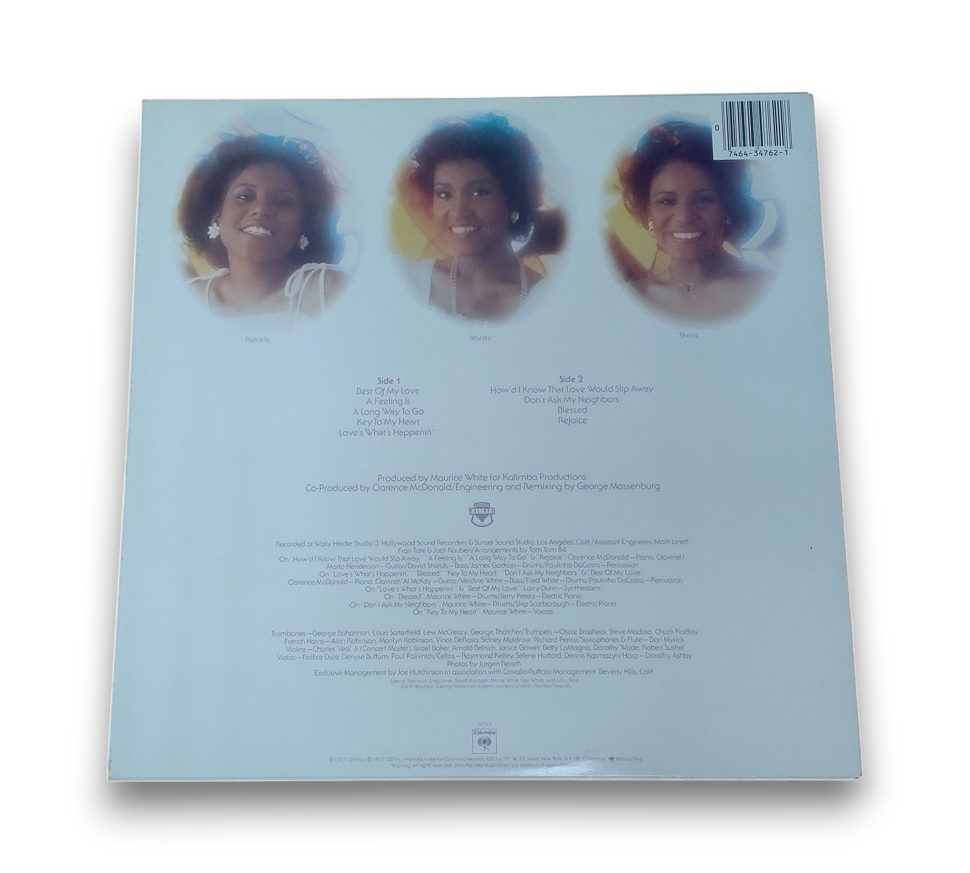 Produced for Kalimba Productions, this album was recorded at Wally Heider Studio 3, Hollywood Sound Recorders, and Sunset Sound Studio in Los Angeles, California. The release, titled "Rejoice" by Emotions, is a product of CBS Inc., with copyright and manufacturing details indicating a 1977 release. For further details regarding the packaging and inserts, please refer to the accompanying photos.