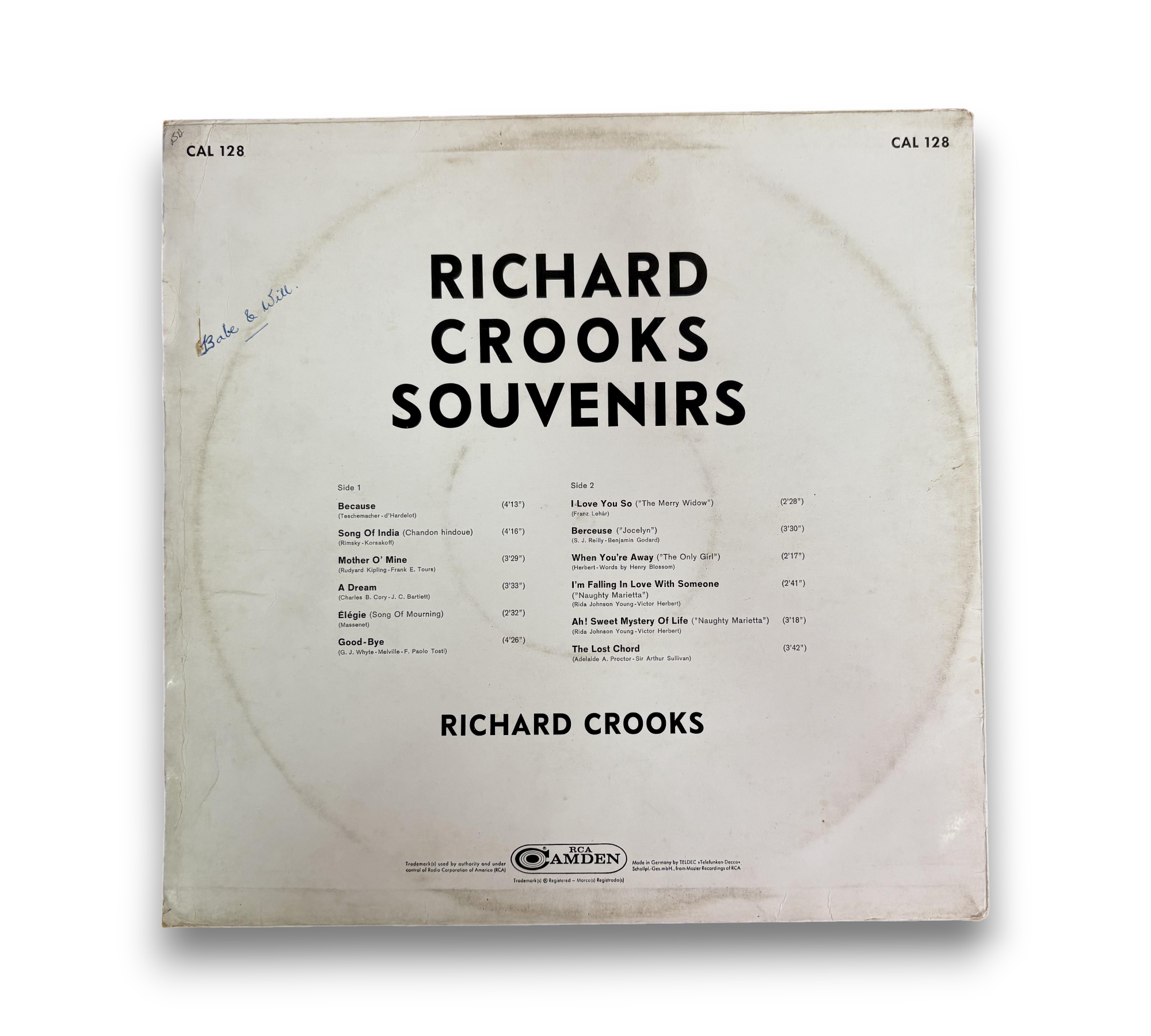 Made in Germany, this record features Richard Crooks in "Souvenirs." The listing includes additional details or inserts, but please refer to the accompanying photos for accurate information regarding packaging and inserts, as this may vary. The album showcases a collection of classic tracks, making it a valuable addition for collectors and fans alike.