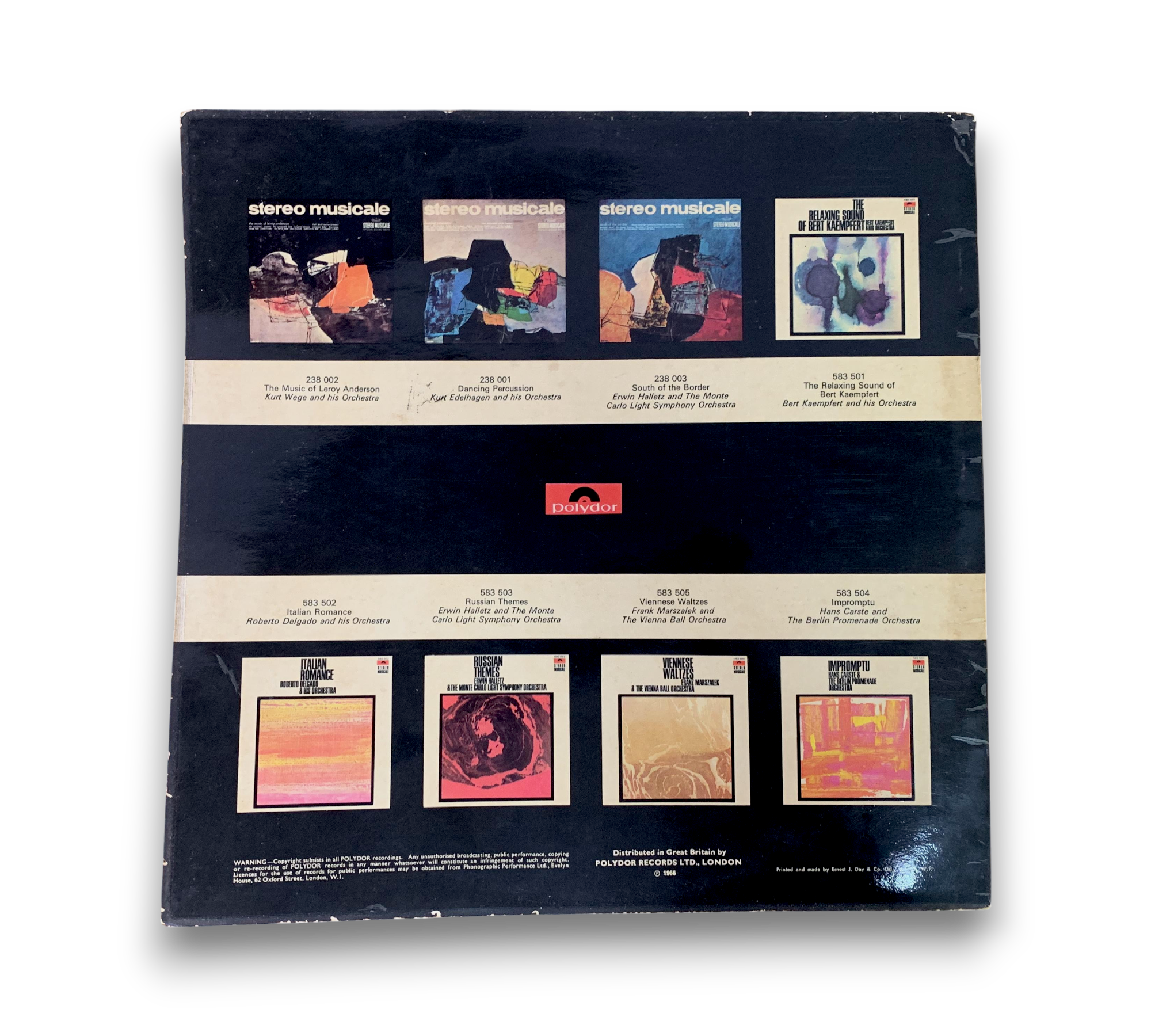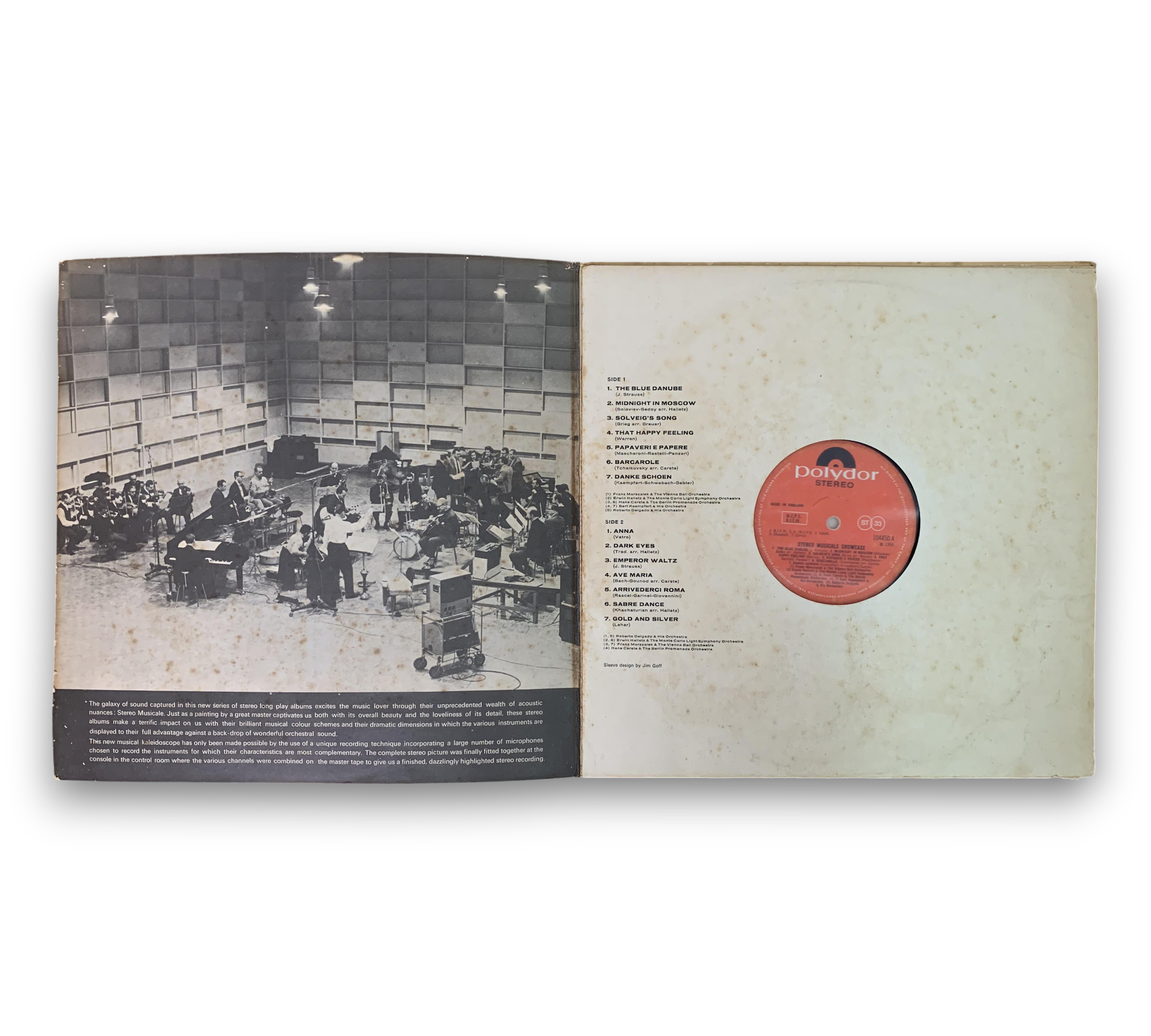 Discover the enchanting sounds of "Stereo Musicale Showcase," a captivating 1966 vinyl release from the UK that beautifully blends jazz and classical influences. This album features a collection of timeless tracks, including "The Blue Danube," "Midnight In Moscow," and "Ave Maria," showcasing the artistry of various big band musicians. Housed in a gatefold sleeve with a paper white inner sleeve, this record is a delightful addition for any music lover. For detailed visuals and condition specifics, please refer to the accompanying photos.