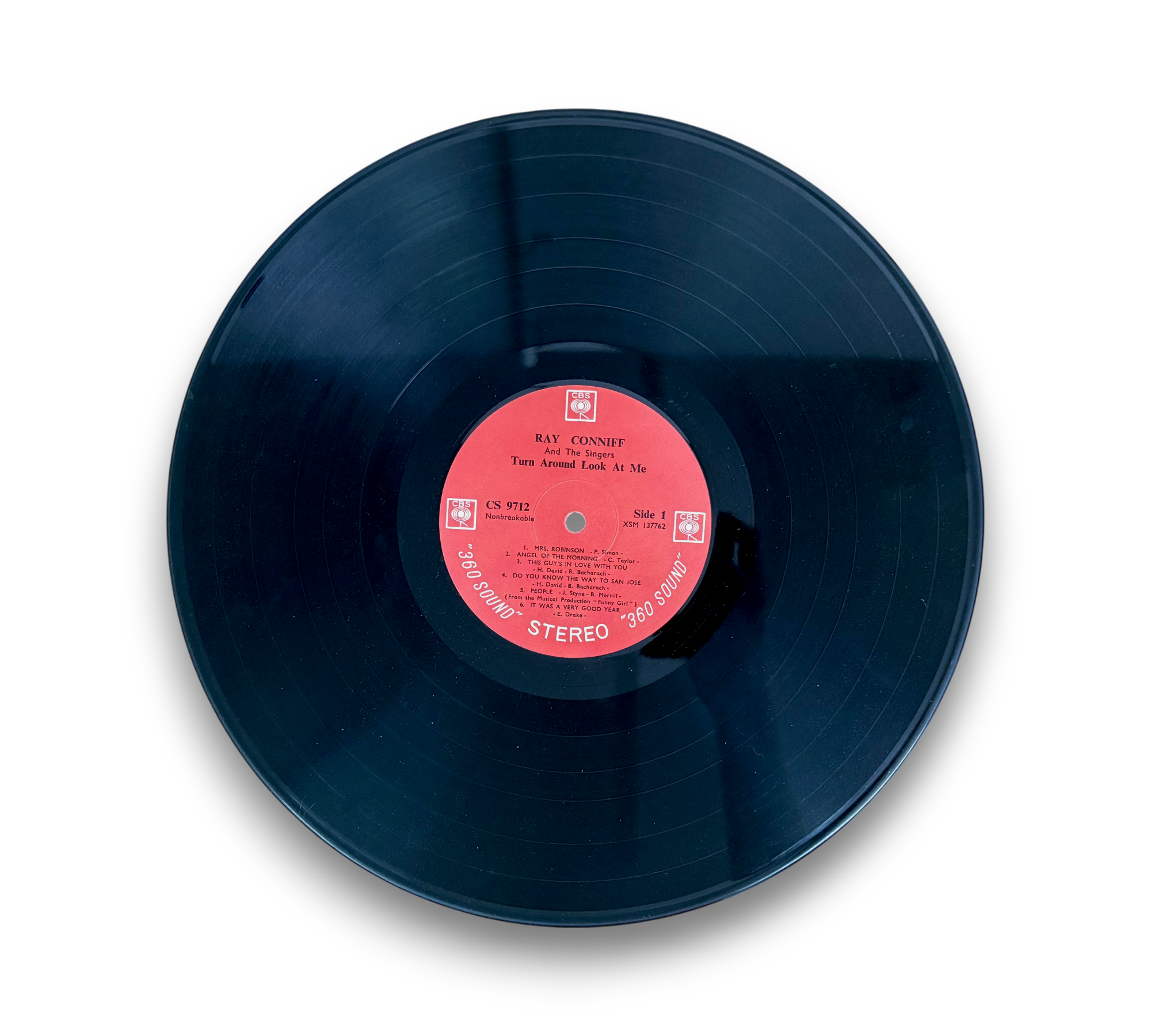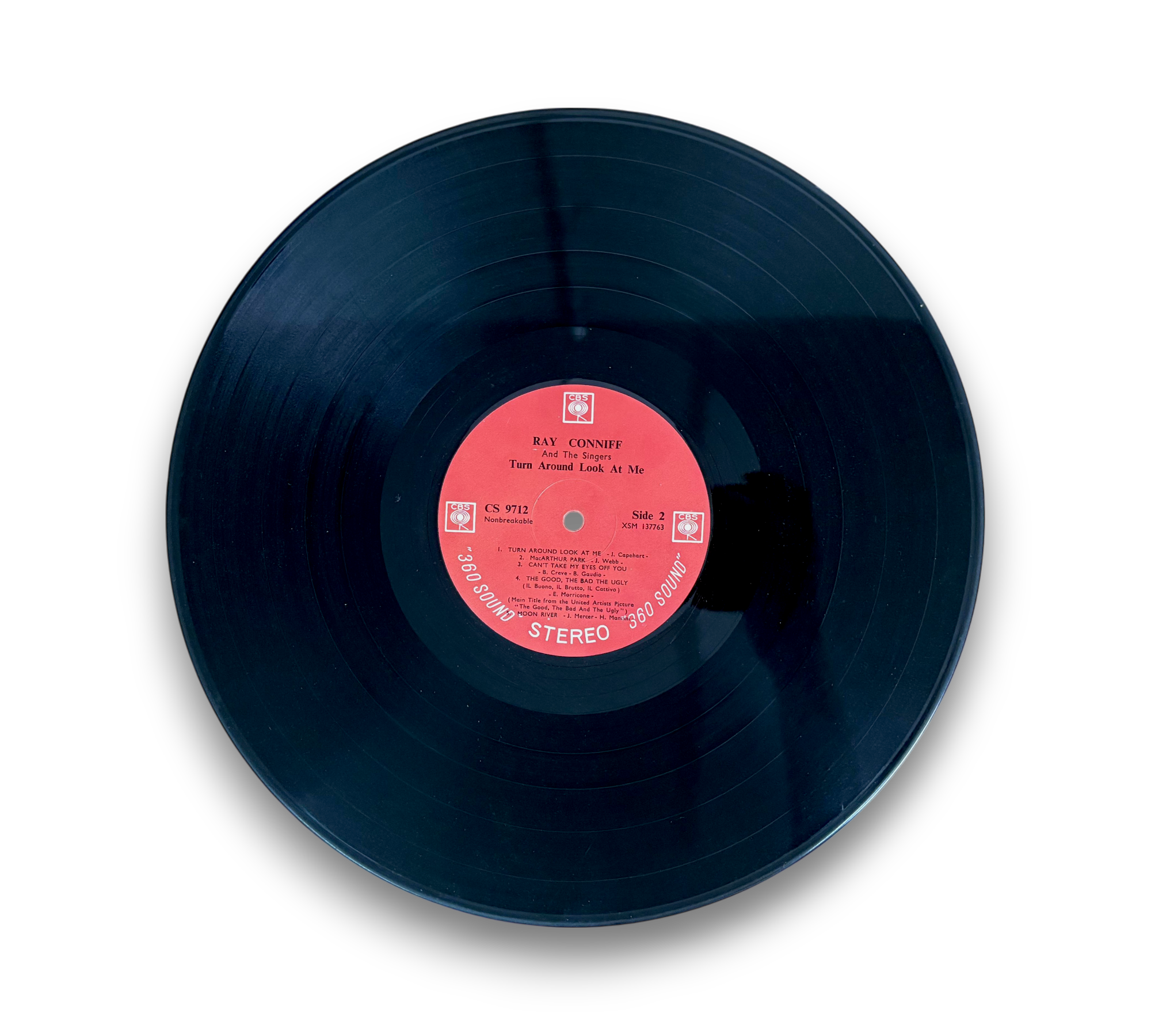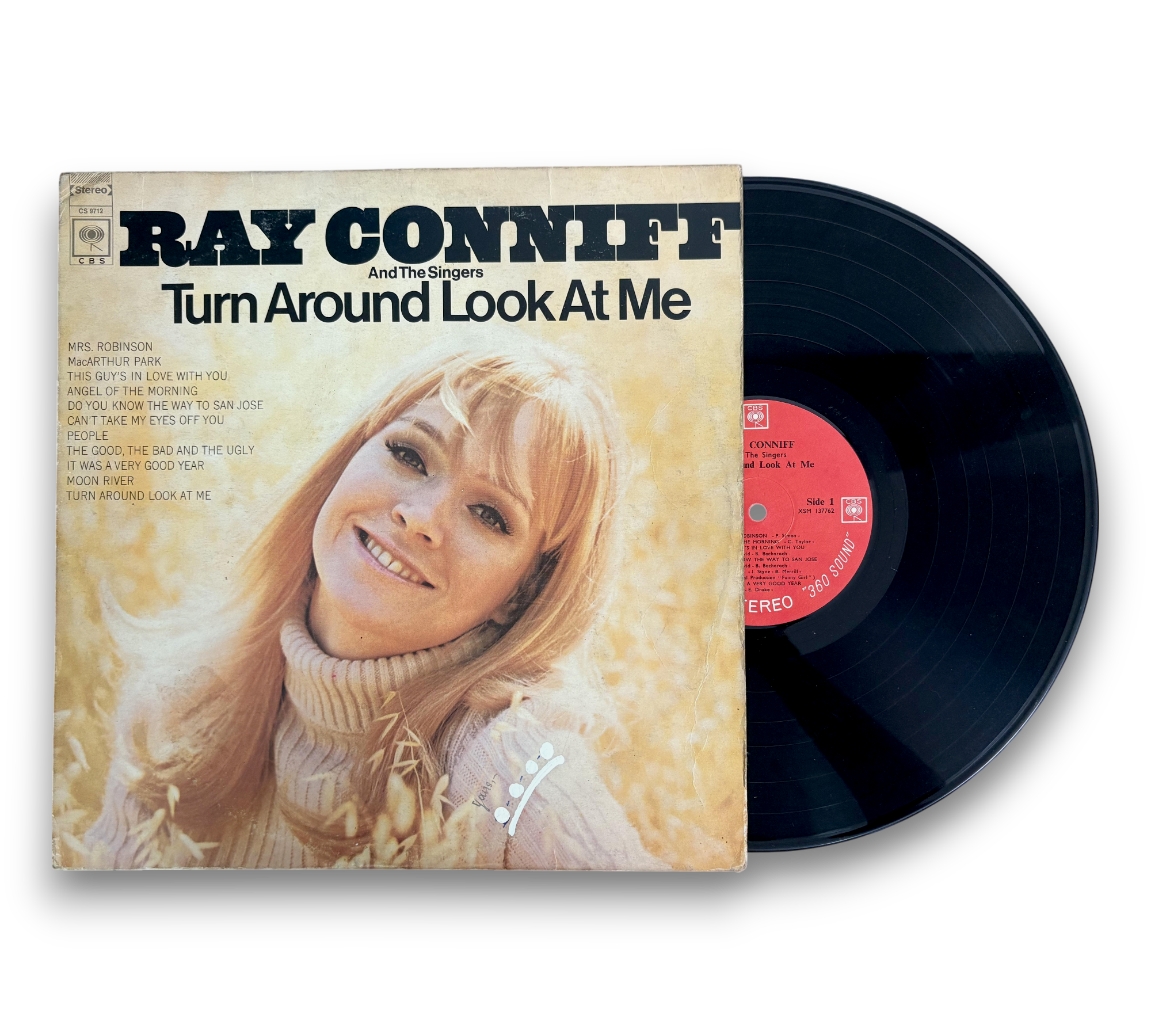 This record features Ray Conniff and The Singers in "Turn Around Look At Me," showcasing a collection of popular tracks. The album is printed in the U.S.A. and is presented in "360 sound" stereo. For further details regarding the condition and any included packaging, please refer to the accompanying photos.
