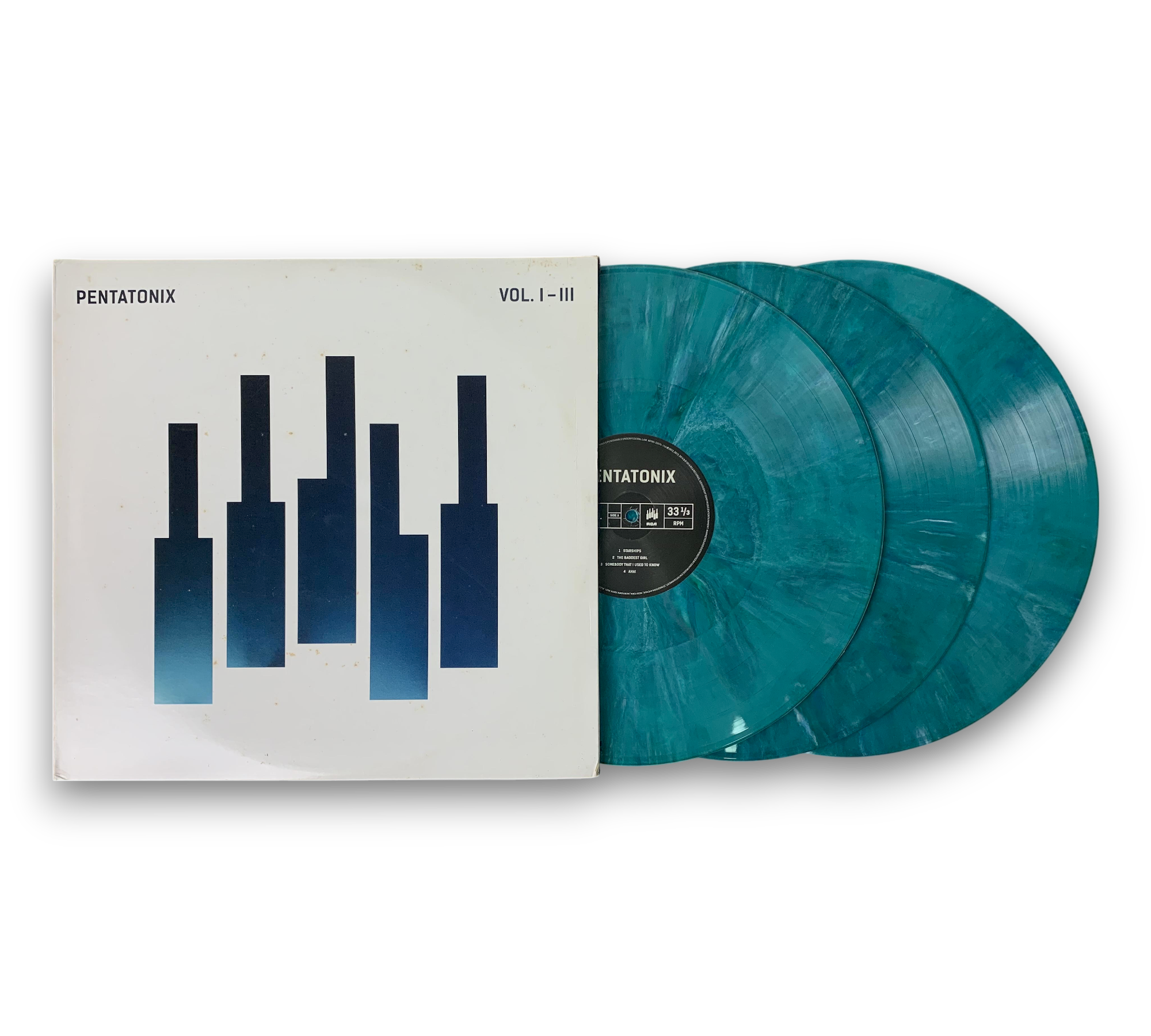 Celebrate the harmonious sounds of Pentatonix with this exclusive Barnes & Noble Vinyl Day release of "Vol. I-III," presented on striking teal vinyl. Released in 2016, this collection features three records packed with popular tracks, including "Starships," "Can't Hold Us," and "Problem." The modern album cover and detailed back cover listing the songs across the three volumes make this a visually appealing addition to any vinyl collection. Enjoy the vibrant pop arrangements that showcase Pentatonix's unique vocal talent and creativity.