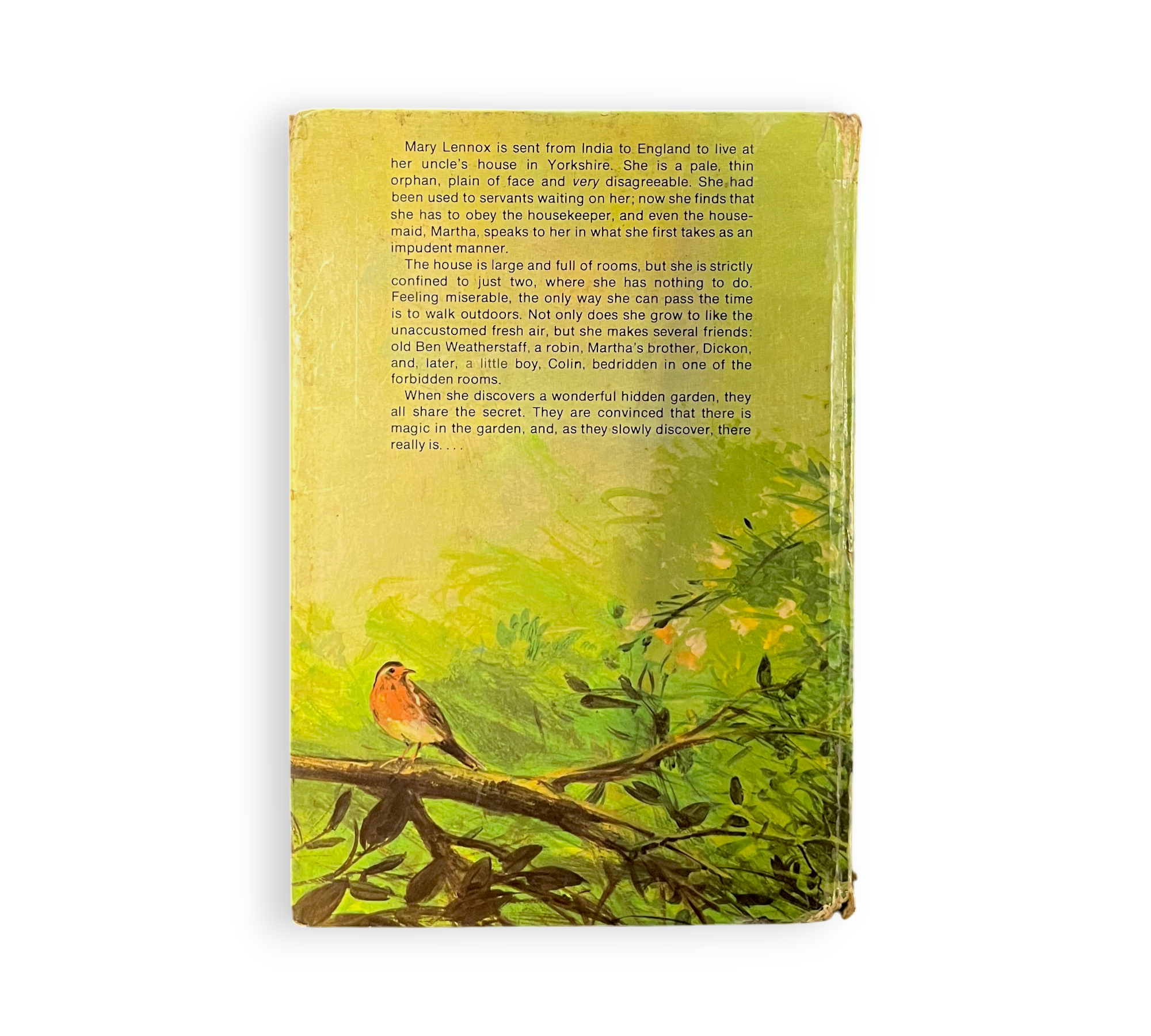 Mary Lennox, a young girl sent to live with her uncle in Yorkshire after the death of her parents, discovers a hidden, neglected garden on the estate. As she begins to tend to the garden, she undergoes a transformation, finding friendship and healing. The story explores themes of rejuvenation, the power of nature, and the importance of nurturing relationships. Through her journey, Mary helps to bring life back to the garden and to those around her, including her sickly cousin Colin and the reclusive uncle, Mr. Craven.