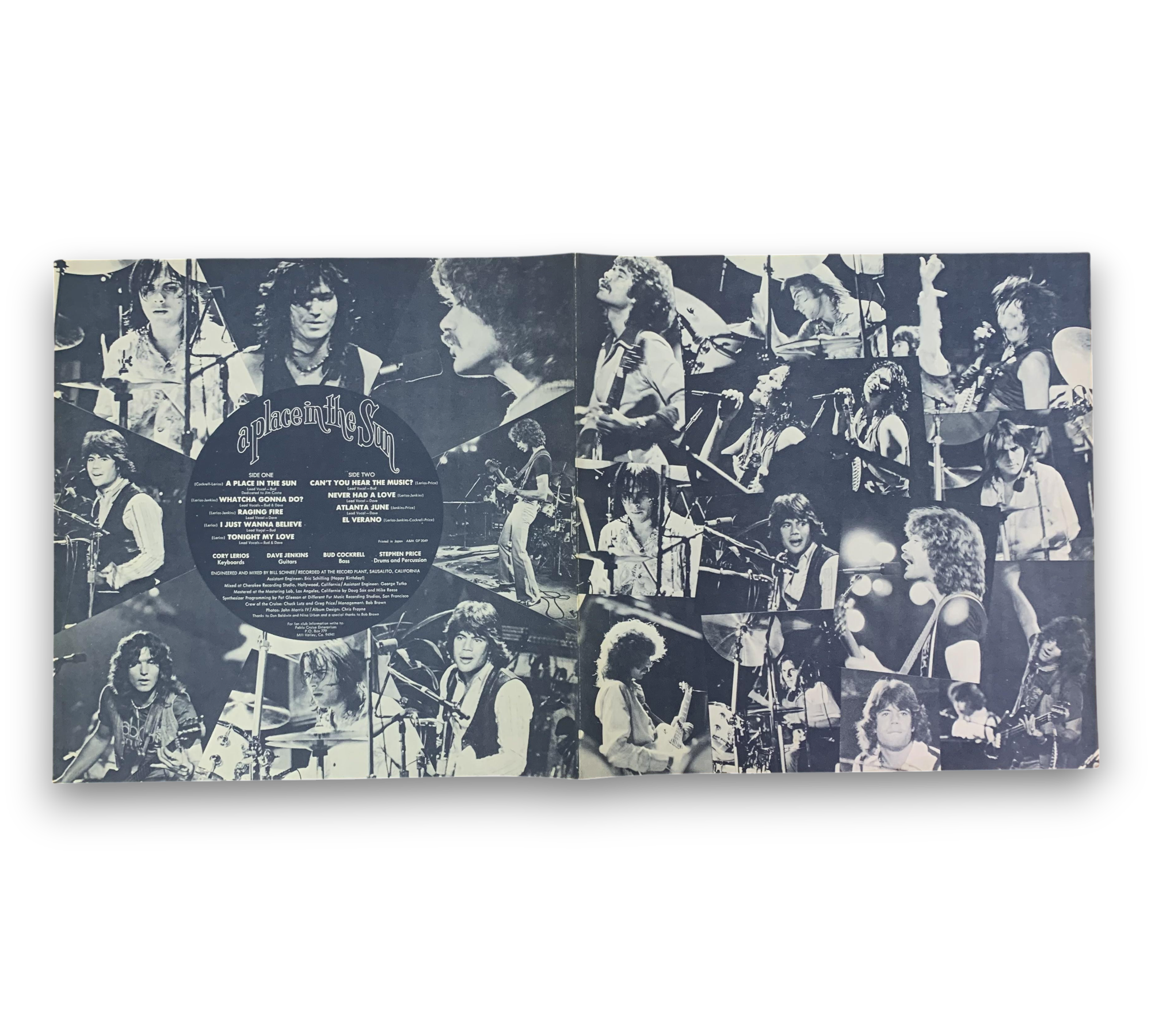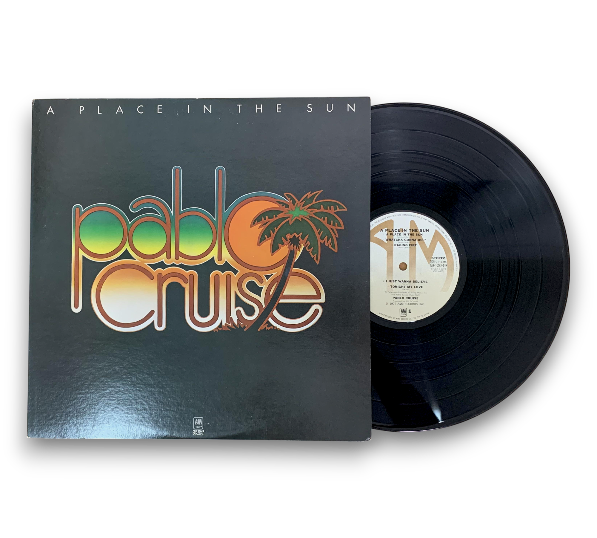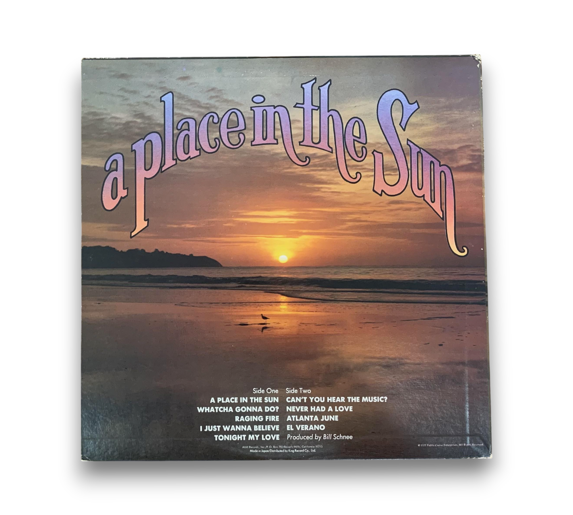 ℗&© 1977 A&M Records, Inc. This listing features the album "A Place in the Sun" by Pablo Cruise. The record includes a lyric sheet, as confirmed by the images provided. For further details regarding the condition and specifics of the packaging, please refer to the accompanying photos.