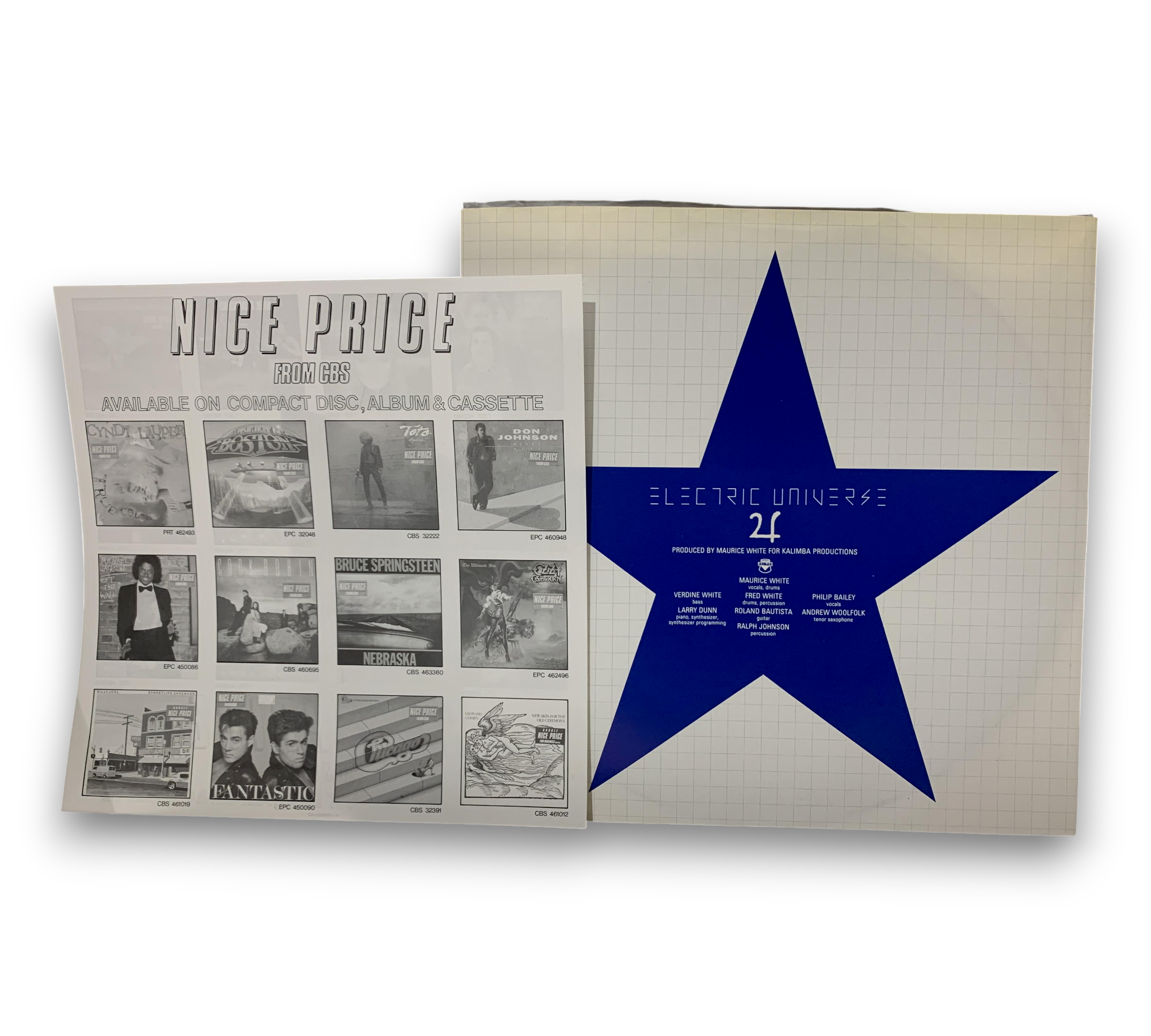 This record features "Electric Universe" by Earth, Wind & Fire, and is noted as being made in Holland, as indicated on the labels. The back cover also confirms that it was printed in Holland. The listing includes a "Nice Price" sticker from CBS, suggesting a special pricing promotion. For further details regarding the packaging and inserts, please refer to the accompanying photos, as they provide a visual representation of the item.