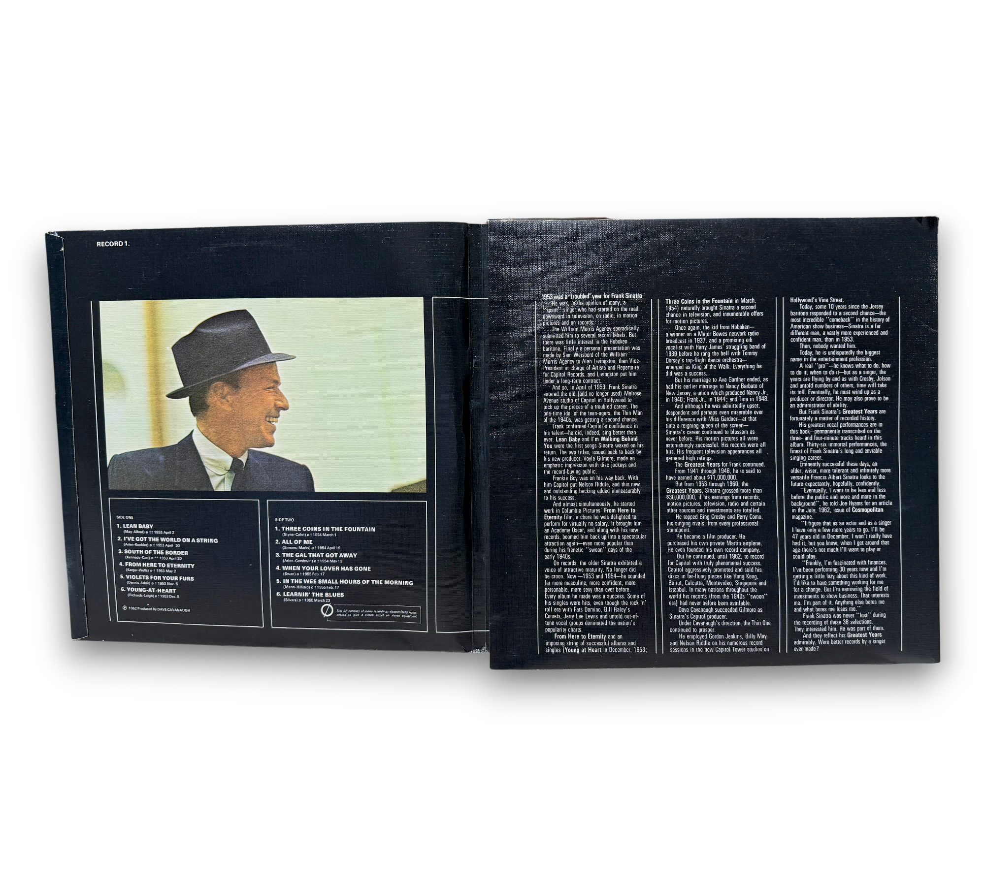 Discover the timeless charm of Frank Sinatra with "His Greatest Years," a beautifully reimagined collection of his classic hits. This special edition features three LPs housed in a stunning six-sided fold-out cover with a textured finish, showcasing tracks like "I've Got The World On A String" and "Come Fly With Me." Made by The Gramophone Company Limited in Great Britain, this vinyl set is a must-have for any jazz and pop enthusiast, capturing the essence of Sinatra's legendary career.