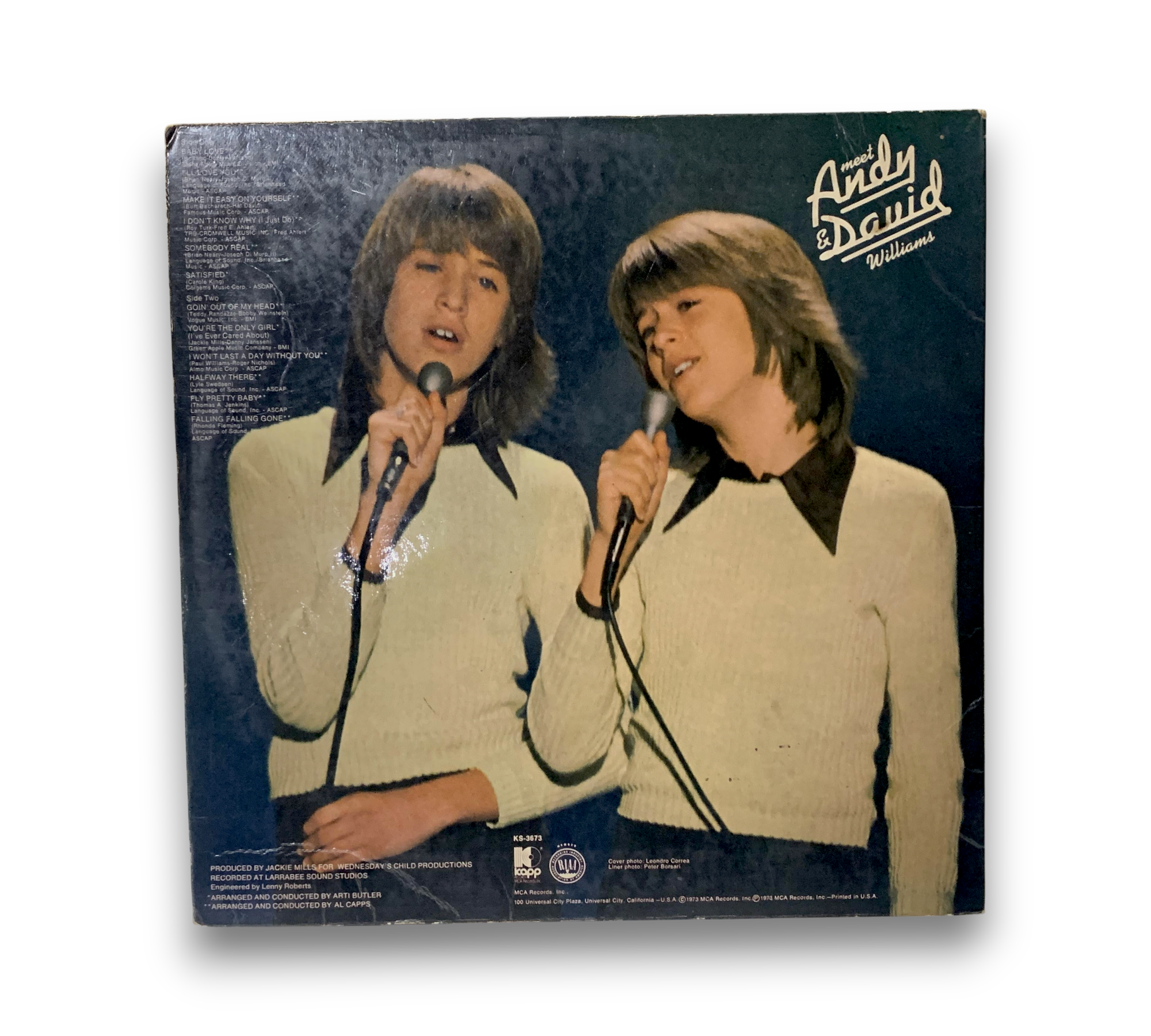 This record features the album "Meet Andy & David Williams," showcasing the talents of the Williams brothers. The original inner sleeve is included, displaying a picture of Andy Williams on one side and David Williams on the reverse. For a closer look at the packaging and any additional details, please refer to the accompanying photos.