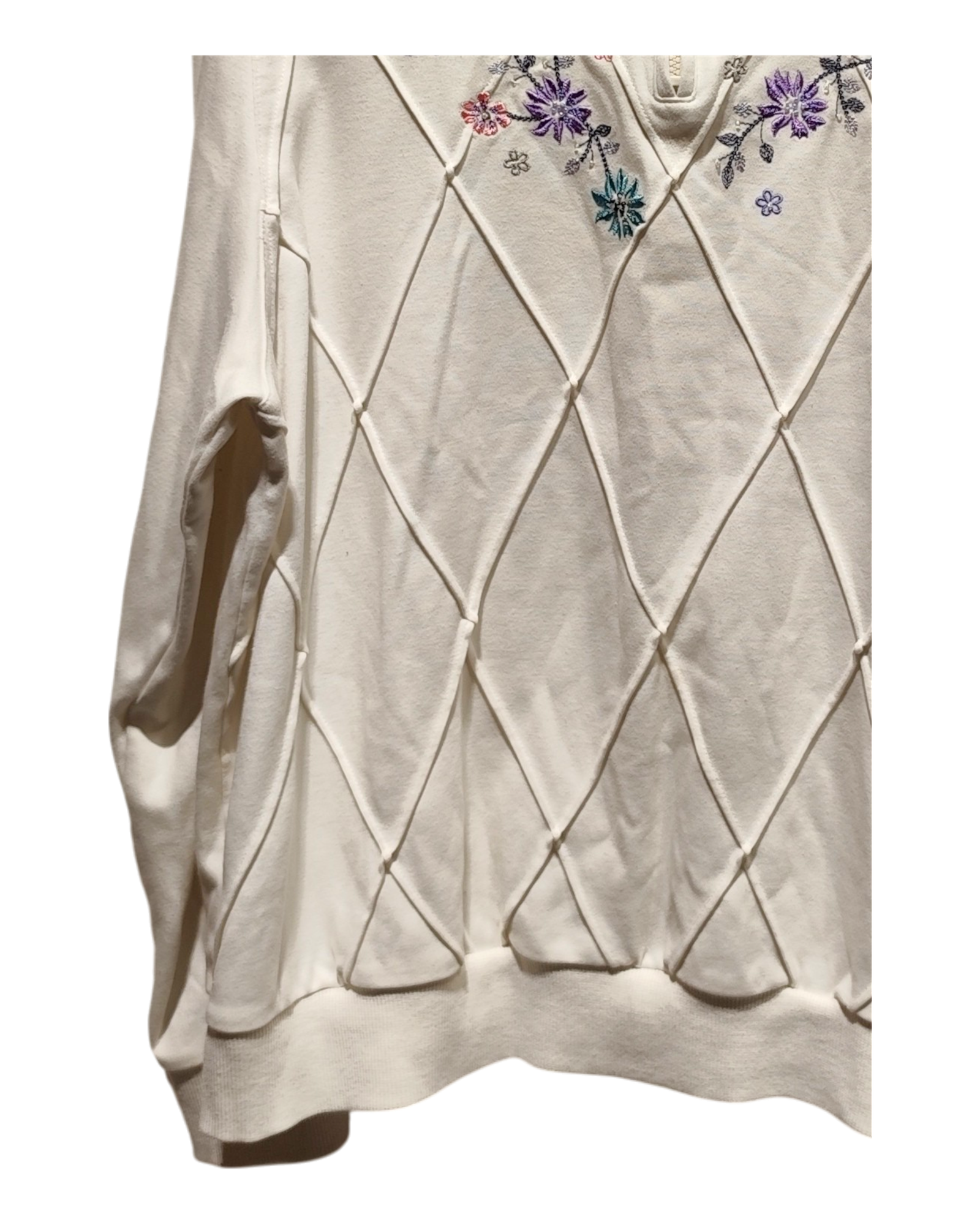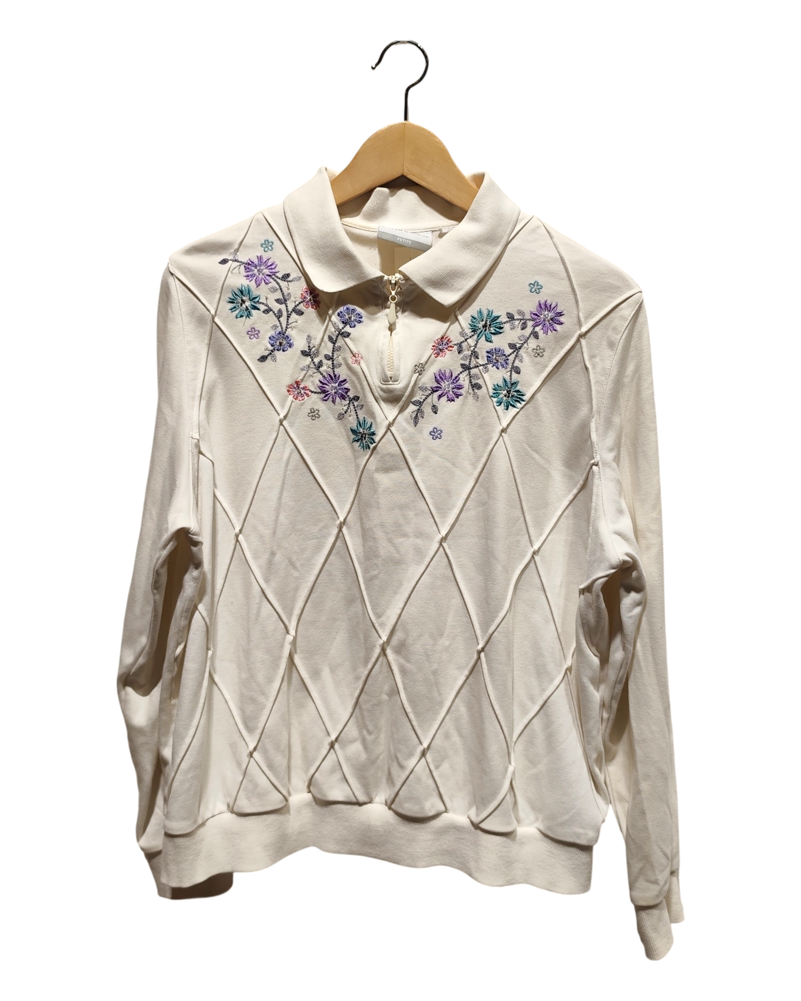 This item is relatively new without tags in place. It resembles a piece of clothing that have been worn once or twice, with no visible signs of wear!