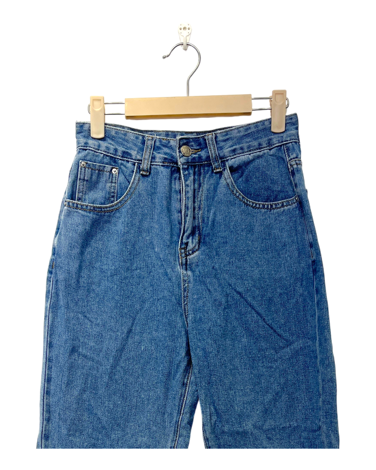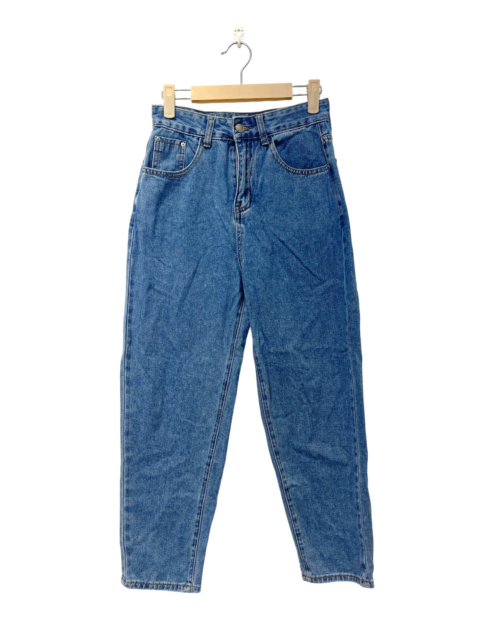 The item is in decent condition with no major flaws. There may be slight visible signs of wear, such as light fading or pilling in areas such as the knees, seams, and hems due to being worn or washed.