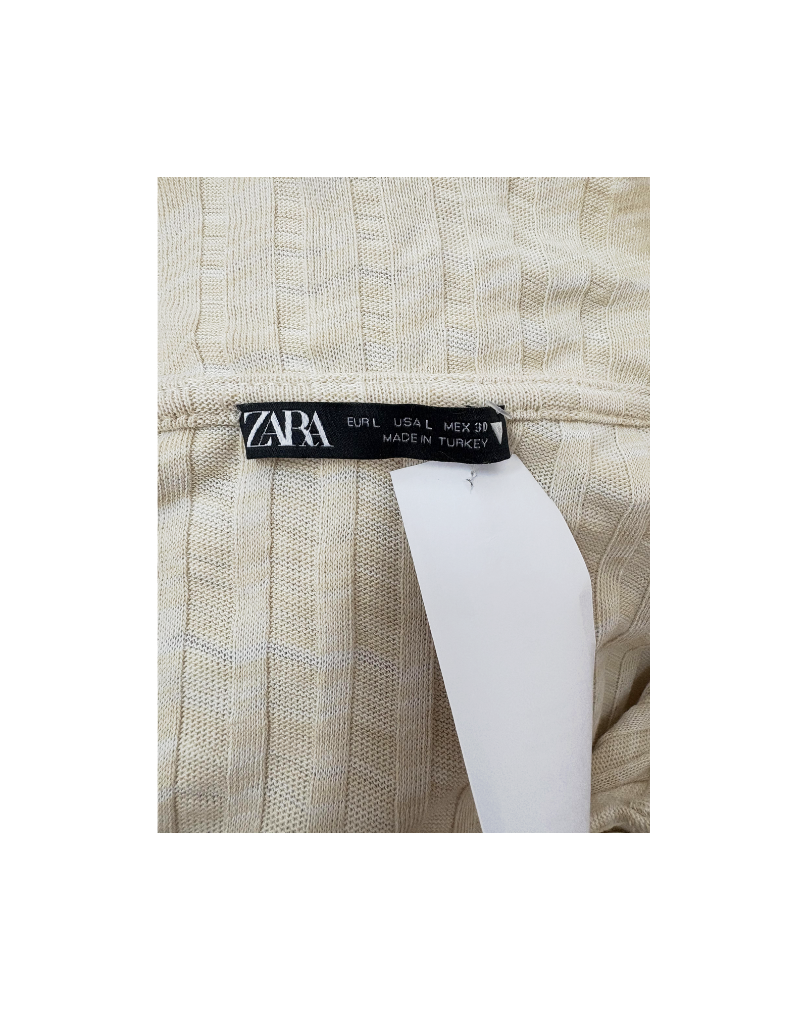 This item is relatively new without tags in place. It resembles a piece of clothing that have been worn once or twice, with no visible signs of wear!