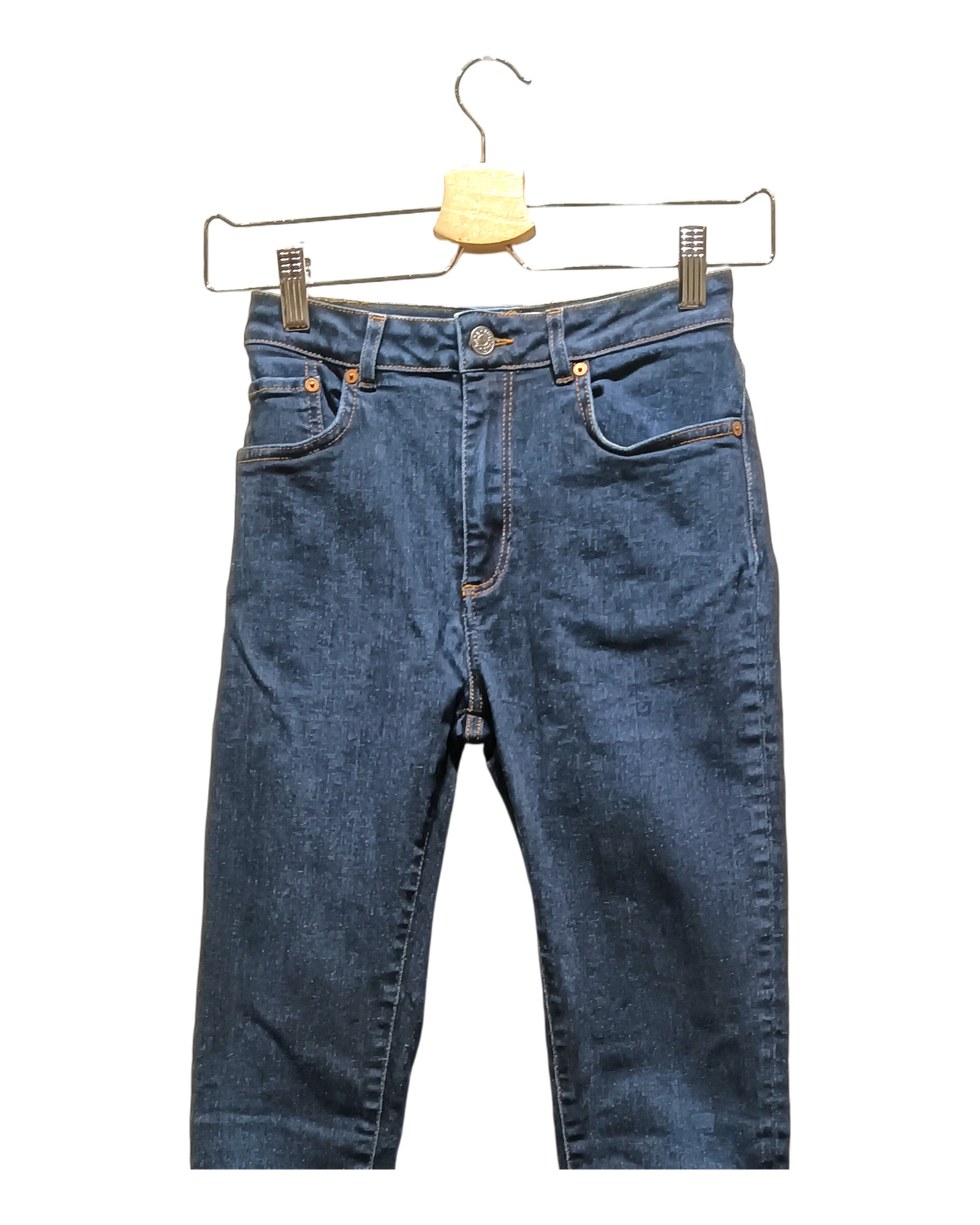 The item is in decent condition with no major flaws. There may be slight visible signs of wear, such as light fading or pilling in areas such as the knees, seams, and hems due to being worn or washed.