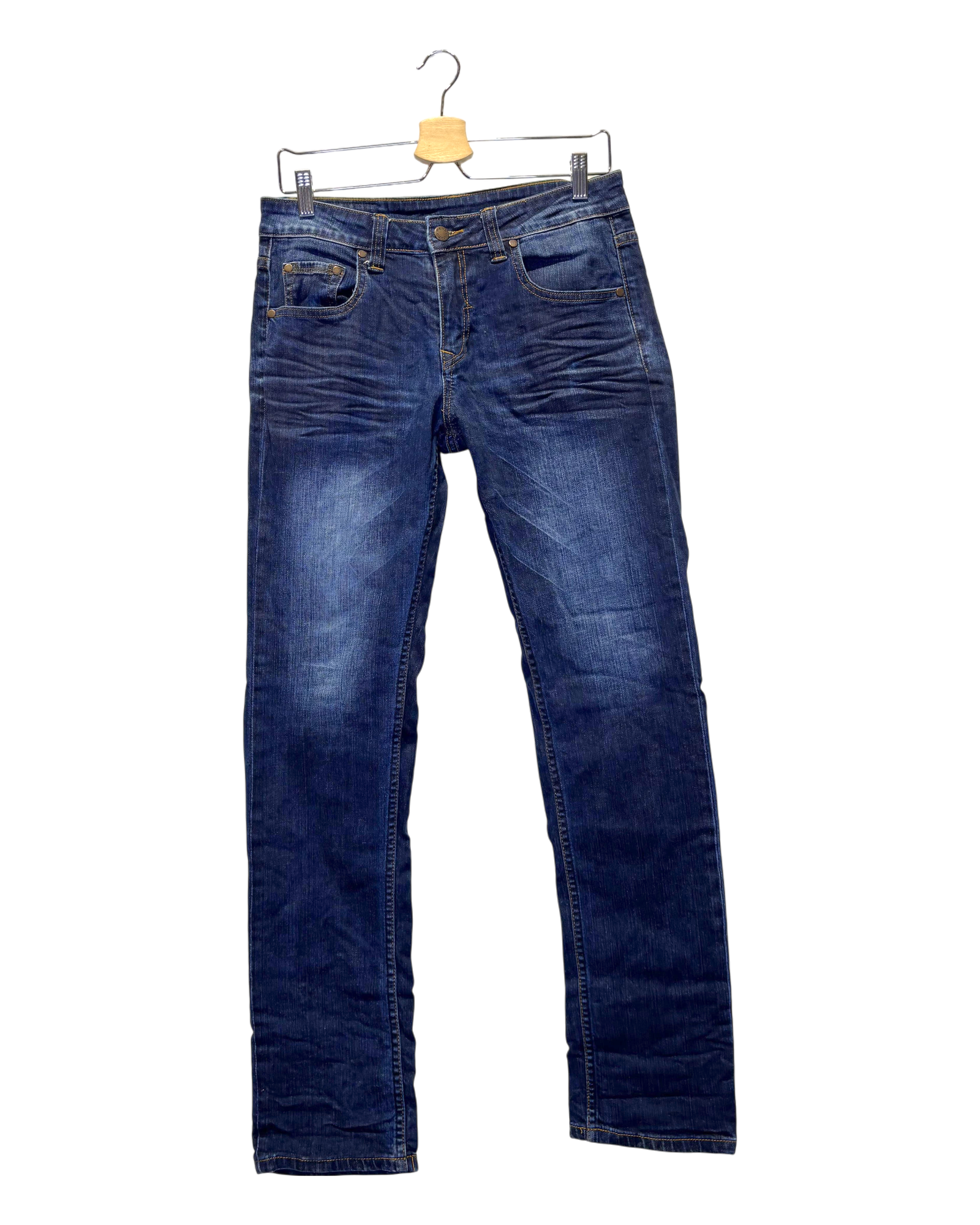 The item is in decent condition with no major flaws. There may be slight visible signs of wear, such as light fading or pilling in areas such as the knees, seams, and hems due to being worn or washed.