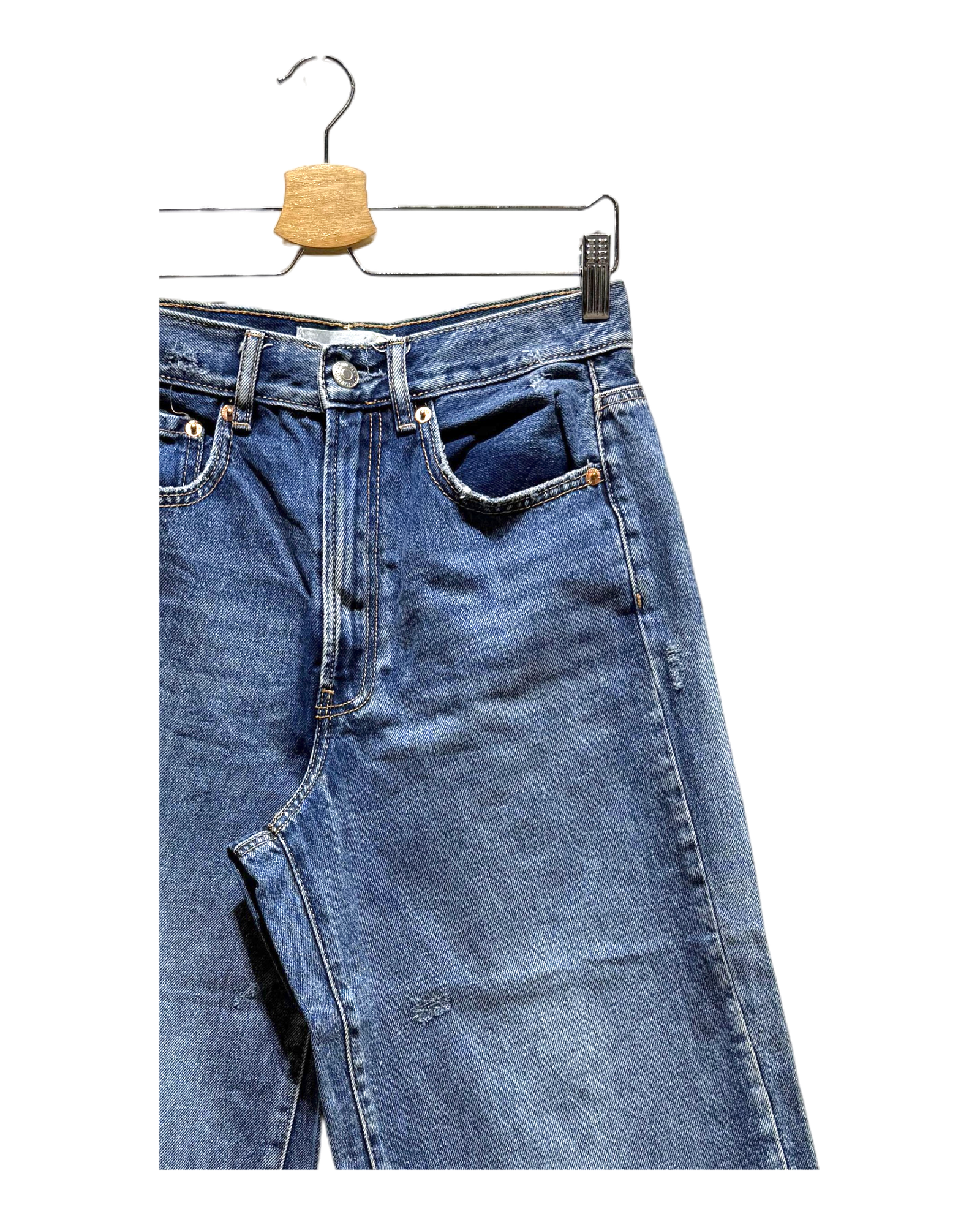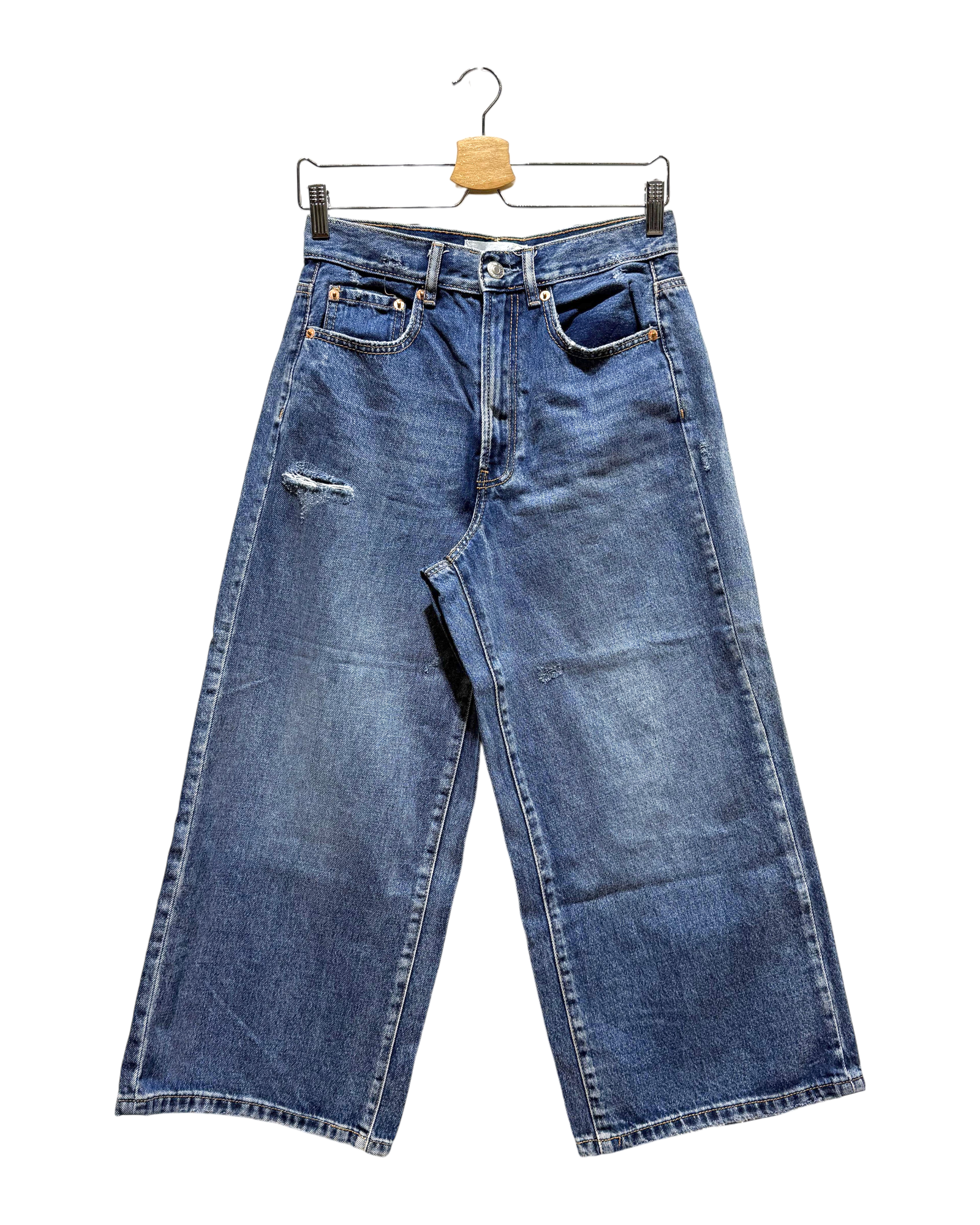 The item is in decent condition with no major flaws. There may be slight visible signs of wear, such as light fading or pilling in areas such as the knees, seams, and hems due to being worn or washed.