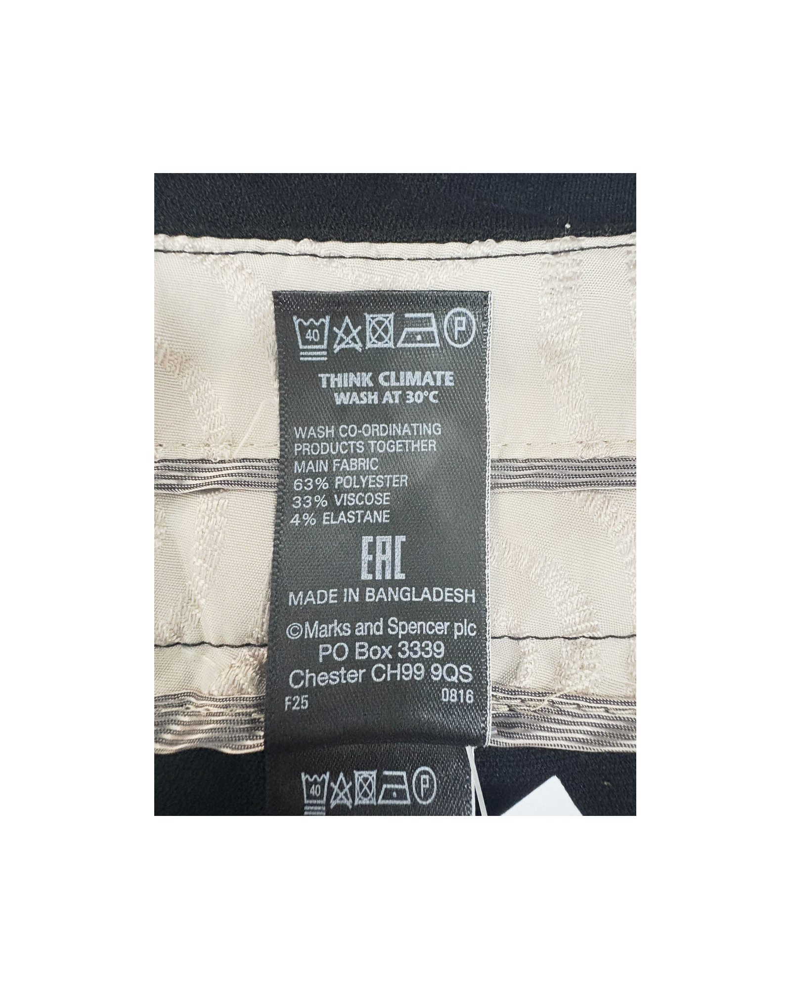 63% Polyester, 33% Viscose, 4% Elastane