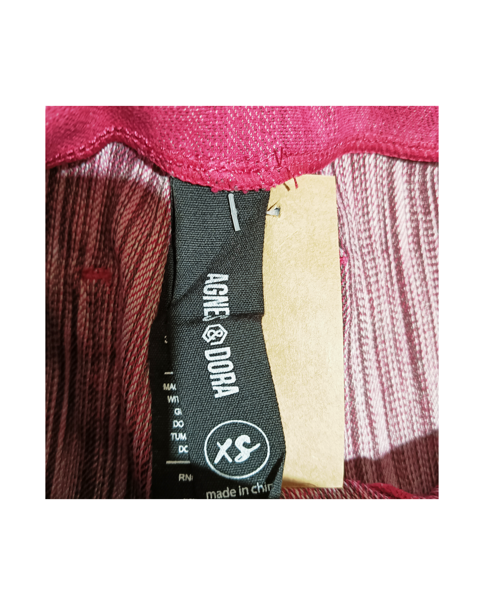This item is relatively new without tags in place. It resembles a piece of clothing that have been worn once or twice, with no visible signs of wear!