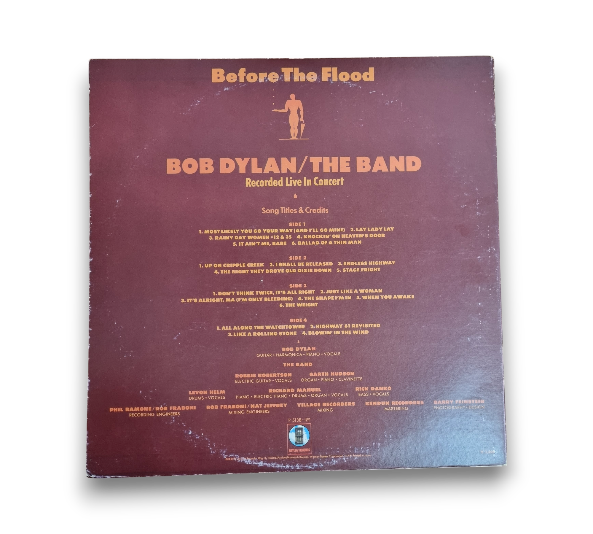 Experience the magic of live music with "Before The Flood," featuring the legendary Bob Dylan and The Band, originally released in 1974. This vinyl captures the essence of their iconic concert, showcasing timeless tracks like "Knockin' On Heaven's Door" and "Like A Rolling Stone." Released in Japan, this edition includes unique label details and may come with an Obi strip and foldout insert. A must-have for any rock enthusiast!