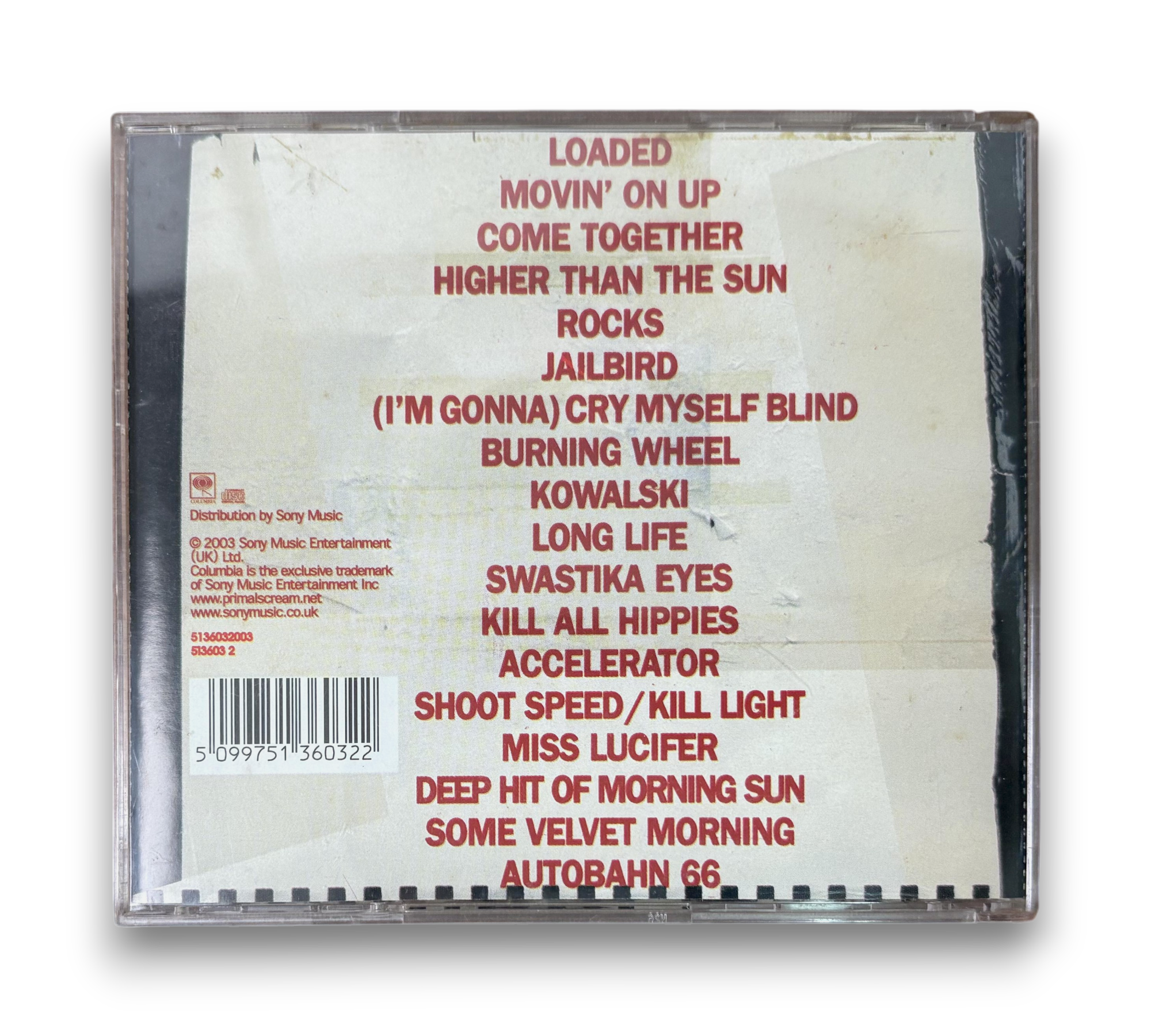 Discover the electrifying sounds of Primal Scream with "Dirty Hits," a compilation CD released in 2003. This collection features 18 standout tracks, including fan favorites like "Loaded," "Movin' On Up," and "Rocks," showcasing the band's unique blend of electronic and rock influences. Housed in a standard clear tray jewel case, it includes a 12-page booklet and notable samples, such as Linda Manz's voice from the film "Out Of The Blue." A must-have for fans of leftfield and indie rock!