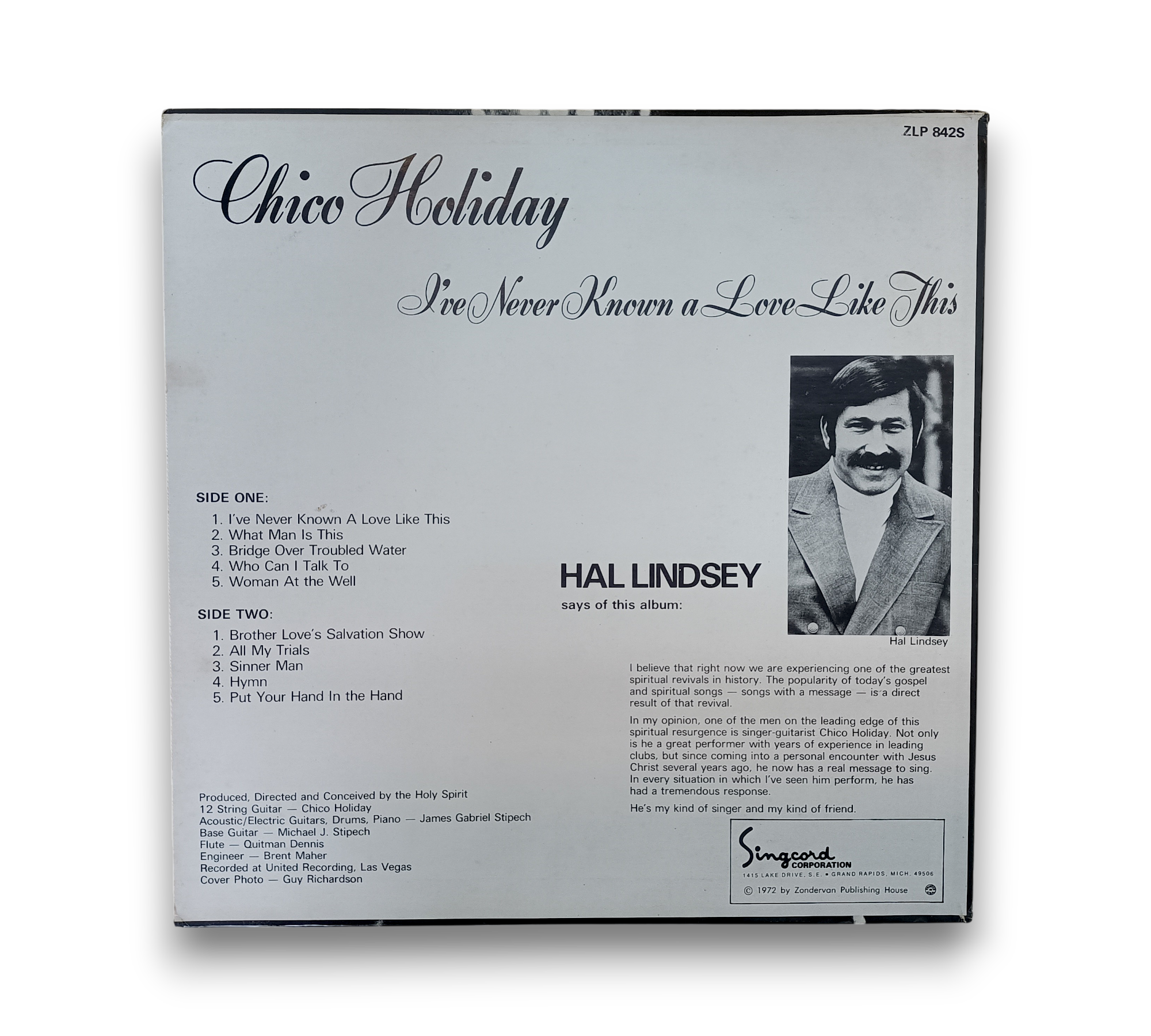 Chico Holiday's 1972 album, "I've Never Known A Love Like This," is a heartfelt exploration of gospel and spiritual music, capturing the essence of a significant spiritual revival. Produced under the Pilgrim KING Record label, this vinyl features powerful tracks like "Bridge Over Troubled Water" and "Sinner Man," showcasing Holiday's impactful message and engaging performances. Recorded at United Recording in Las Vegas, this album is a must-have for fans of gospel and folk rock, reflecting a deep connection to faith and community.