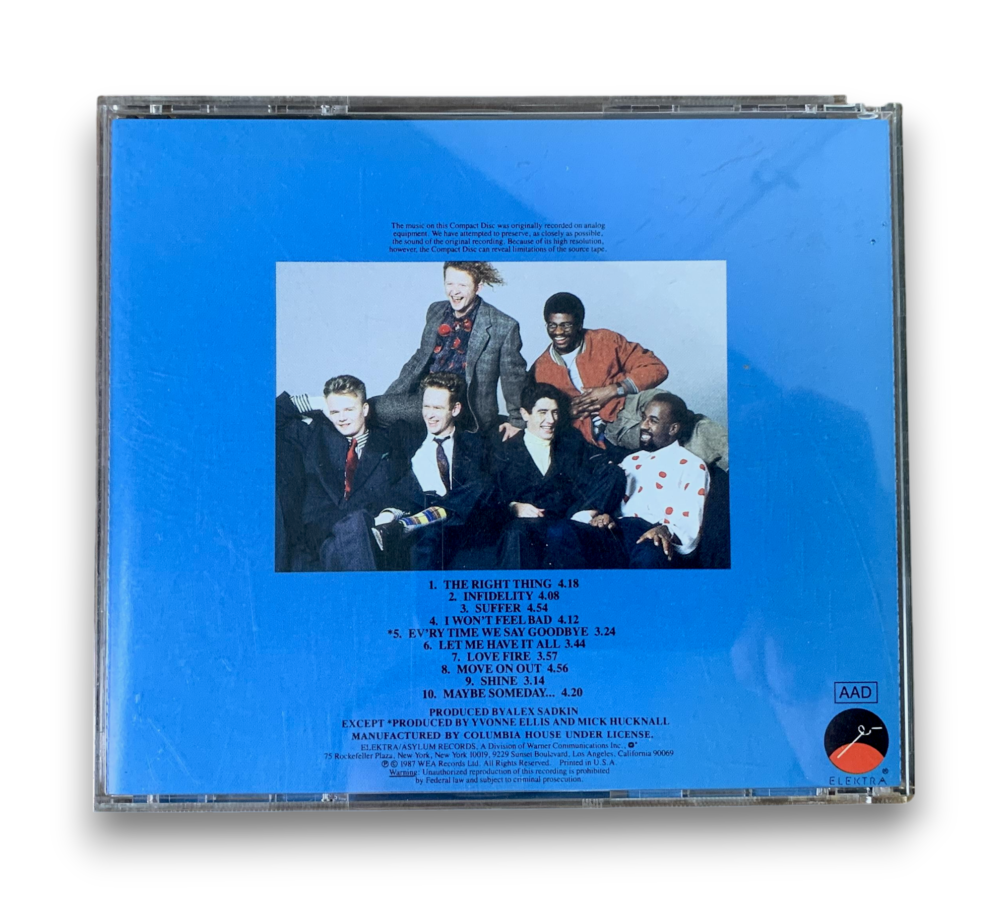 ℗ © 1987 WEA Records Ltd. This listing features the album "Men and Women" by Simply Red, showcasing a vibrant cover and a collection of engaging tracks. The CD includes notable songs such as "The Right Thing," "Infidelity," and "Every Time We Say Goodbye." For a closer look at the packaging and any included inserts, please refer to the accompanying photos.