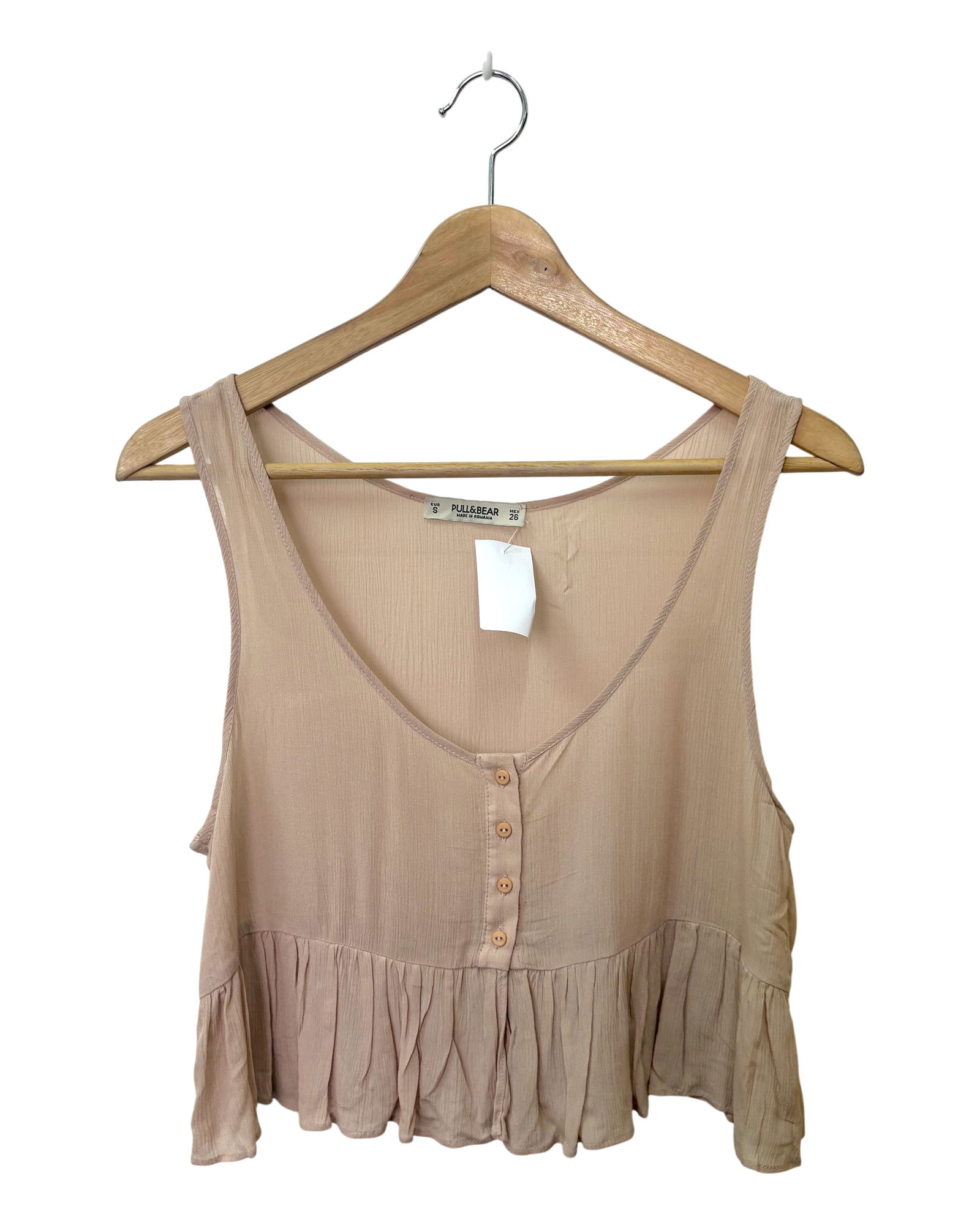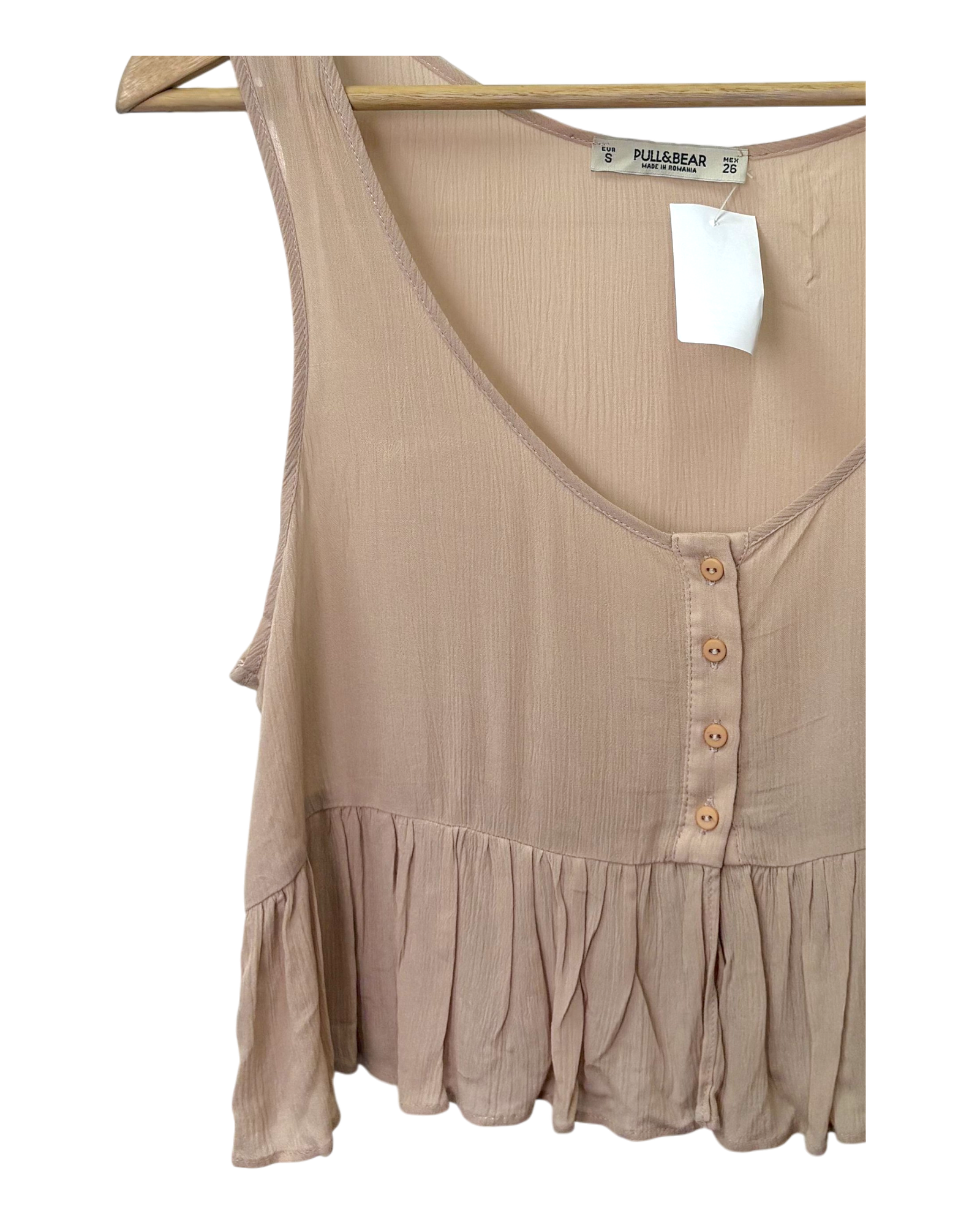 This item is relatively new without tags in place. It resembles a piece of clothing that have been worn once or twice, with no visible signs of wear!
