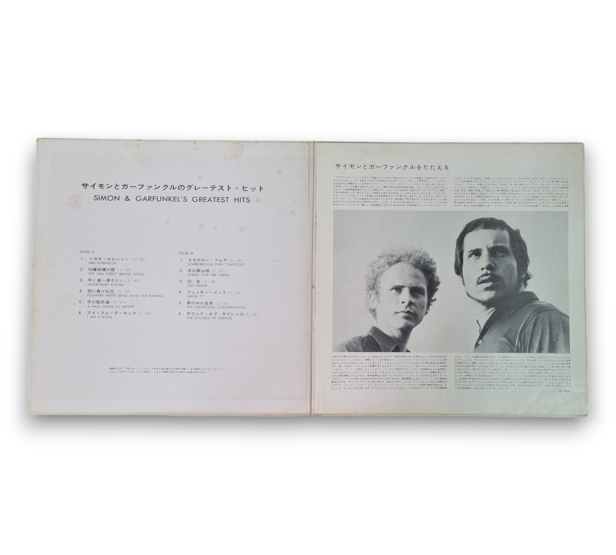 Celebrate the timeless harmonies of Simon & Garfunkel with their 1969 compilation, "Simon And Garfunkel's Greatest Hits." This vinyl LP features iconic tracks such as "Mrs. Robinson," "The Sound of Silence," and "Scarborough Fair," showcasing the duo's masterful blend of folk rock and pop. Released in Japan, this collection is a must-have for fans and collectors alike, capturing the essence of their influential sound and lyrical brilliance.
