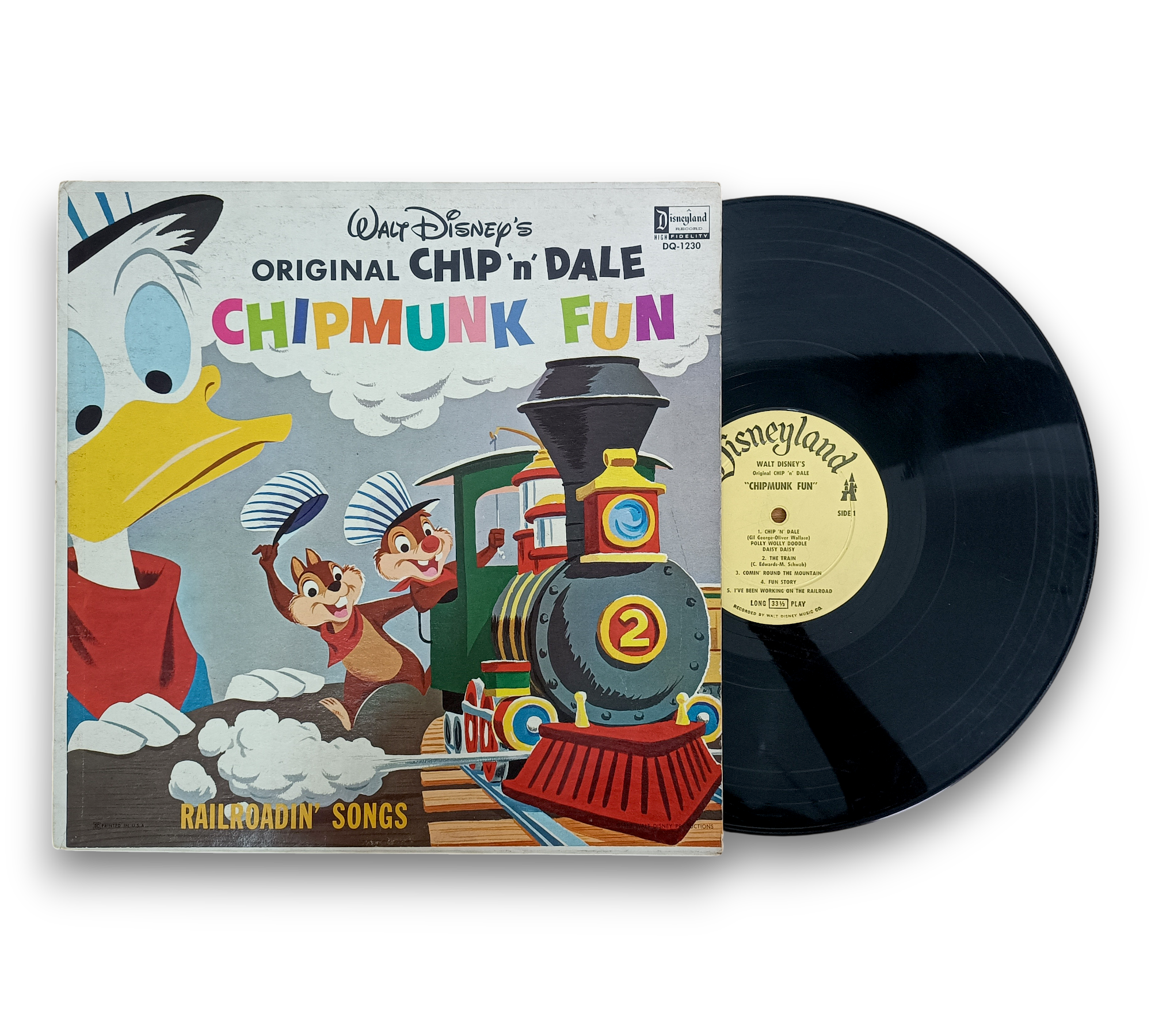 This listing features the record "Chipmunk Fun" by Walt Disney's Chip 'n' Dale, identified by its label variation. The label includes quotation marks around the title and displays a larger pressing ring, with Roman numerals indicating side I and side II. For further details regarding the condition and specifics of the packaging, please refer to the accompanying photos.
