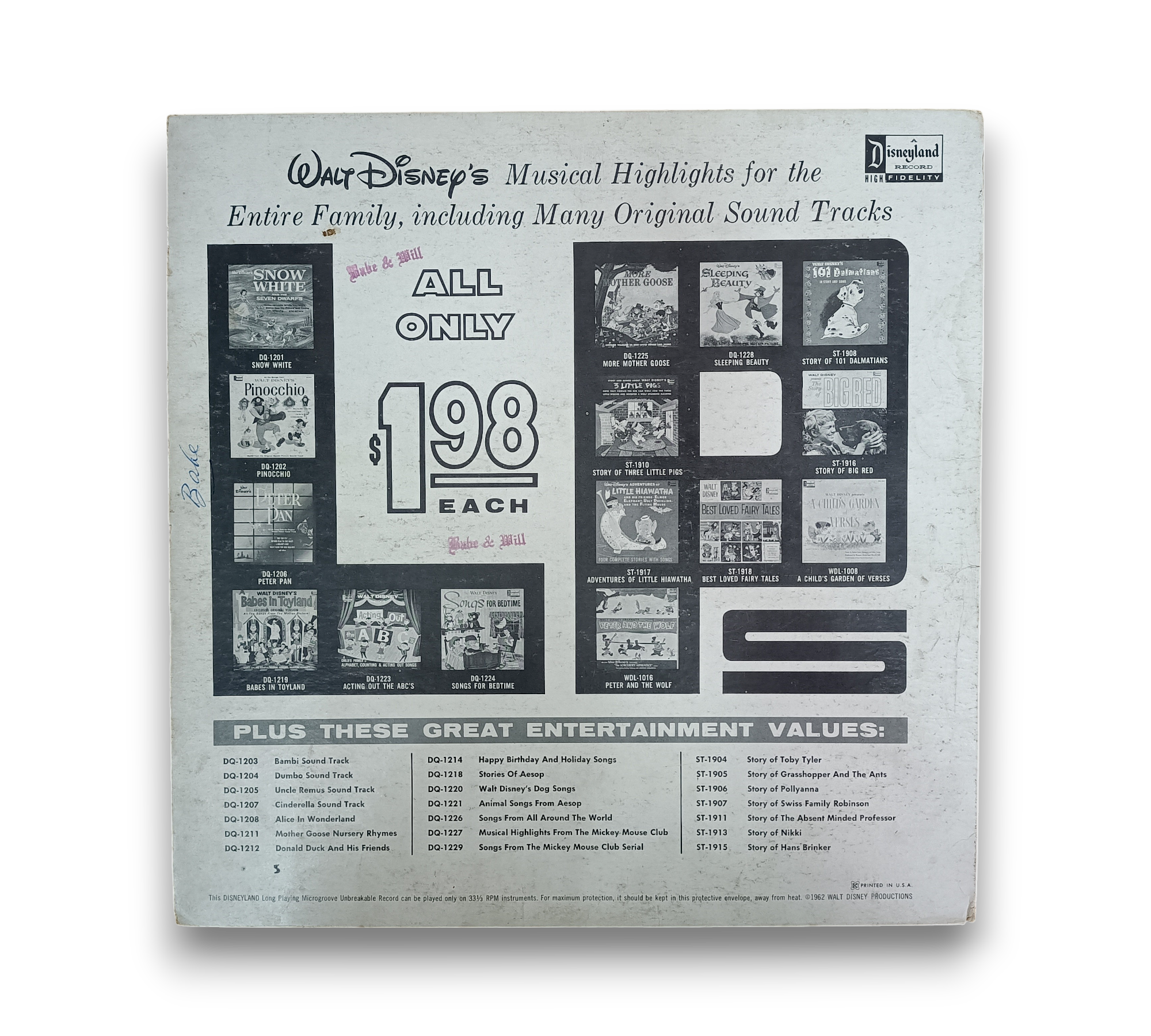 A VG+ record will show some signs that it was played and otherwise handled by a previous owner who took good care of it. These signs of wear include visible scuffs or scratches, or may have slight warp.