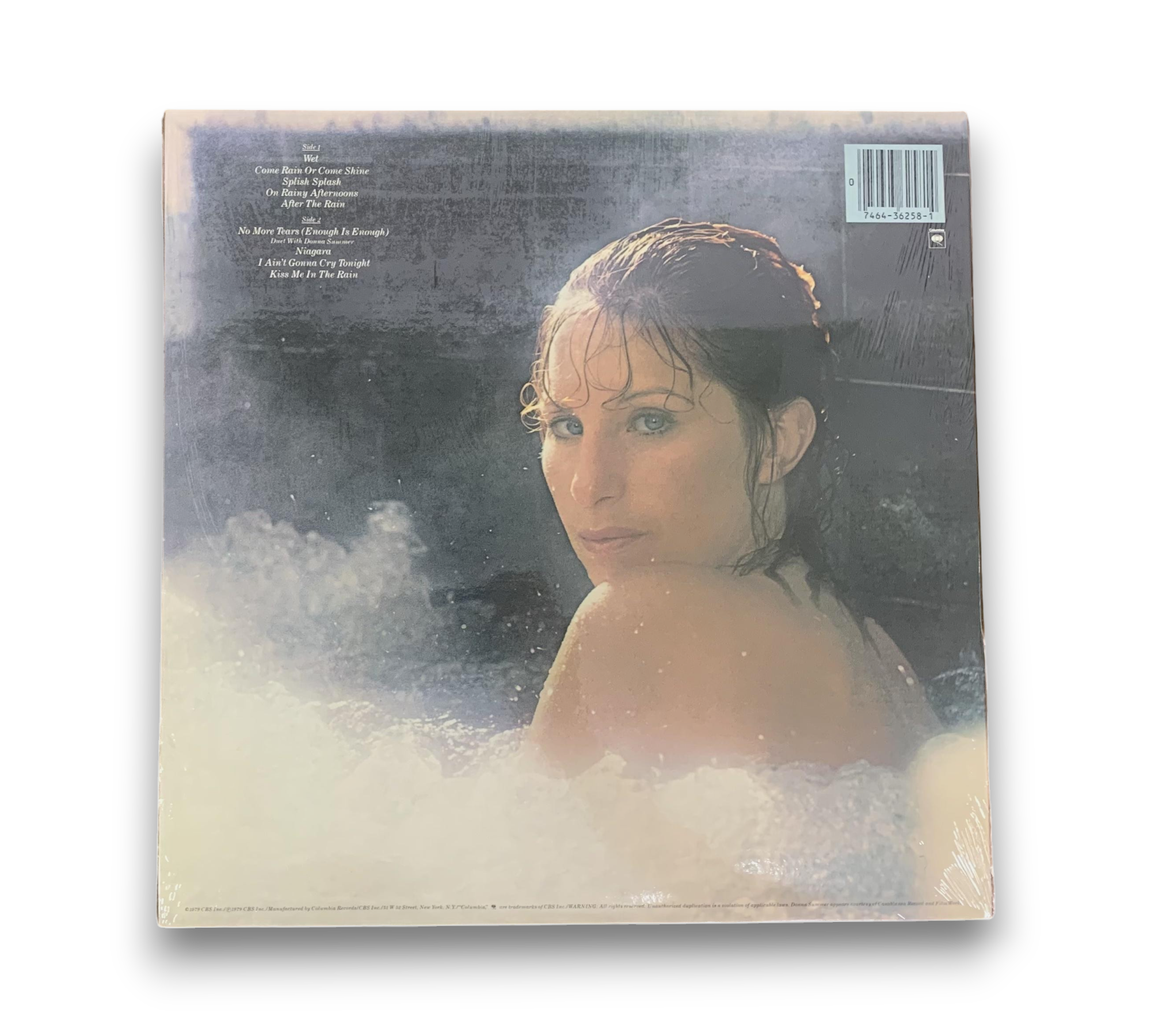 Experience the soulful sounds of Barbra Streisand with her 1979 album "Wet," a captivating blend of funk, soul, and pop. This vinyl pressing features a printed sleeve with lyrics and showcases standout tracks like "No More Tears (Enough Is Enough)" and "Come Rain Or Come Shine." Perfect for collectors, this record is a testament to Streisand's vocal prowess and artistic versatility. Please refer to the photos for a detailed view of the packaging and condition.